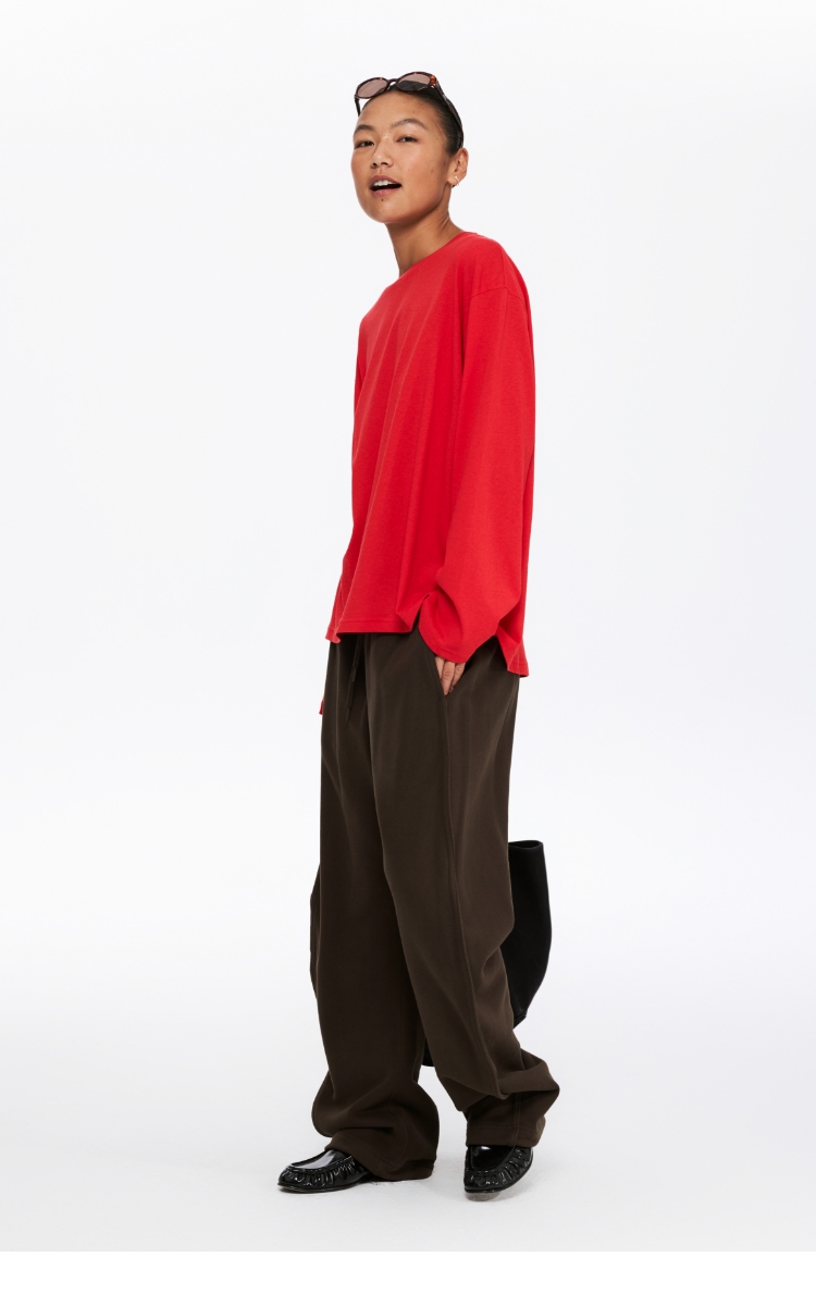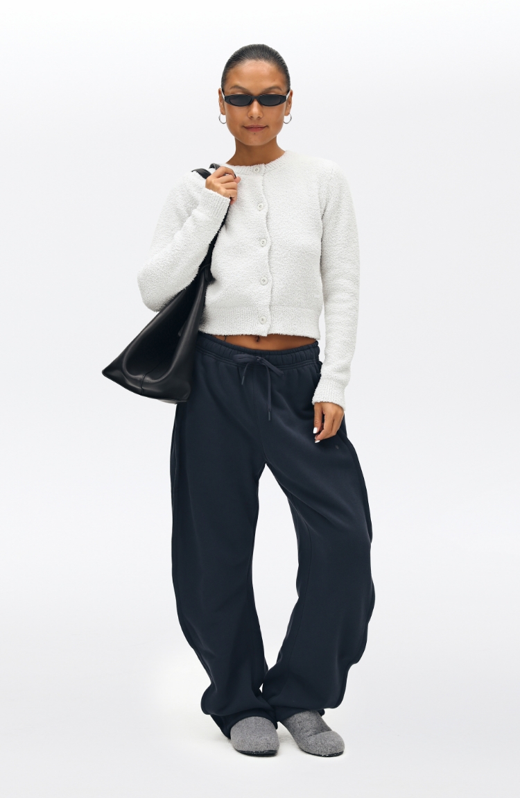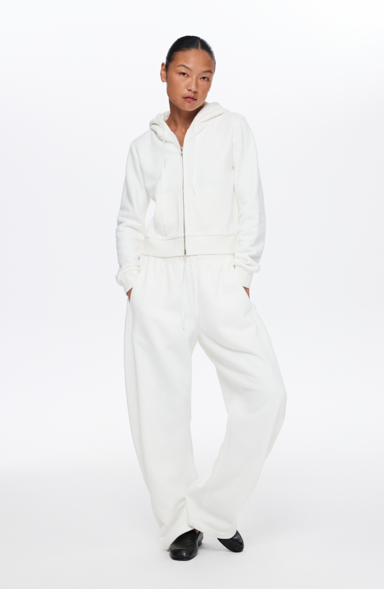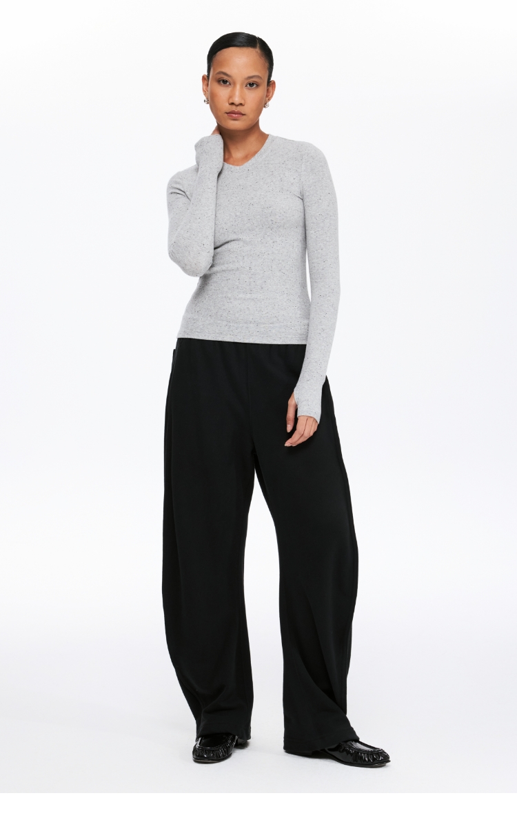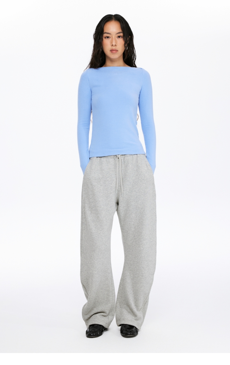 Oneup Curved Knife-Style Gray Sweatpants, Autumn and Winter Heavy Fleece-Lined Loose Casual Pants, Straight Wide-Leg Long Pants for Women