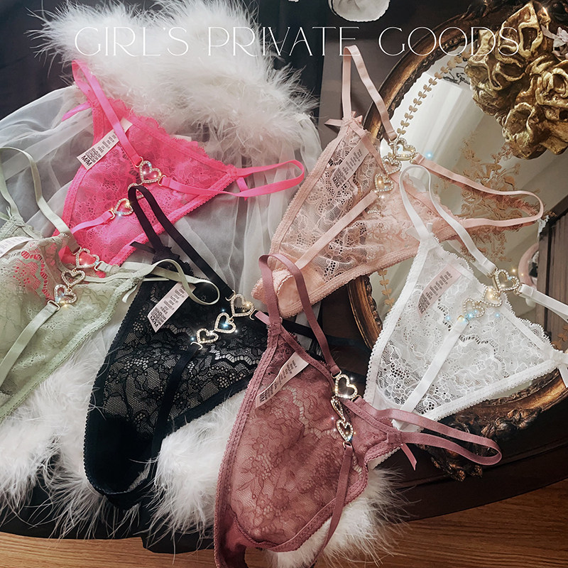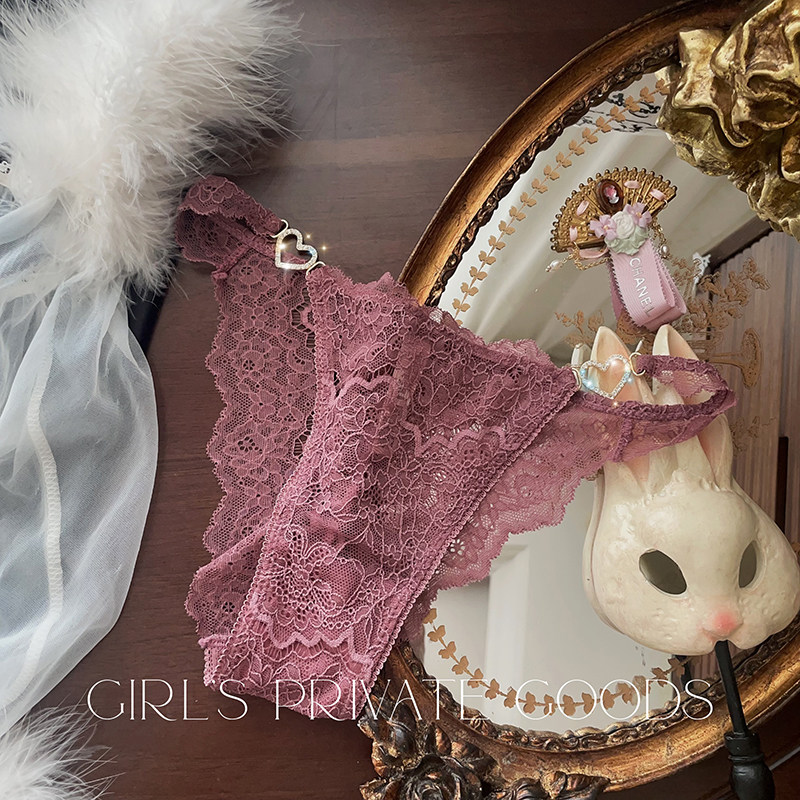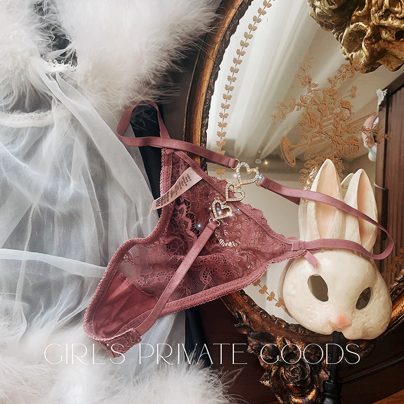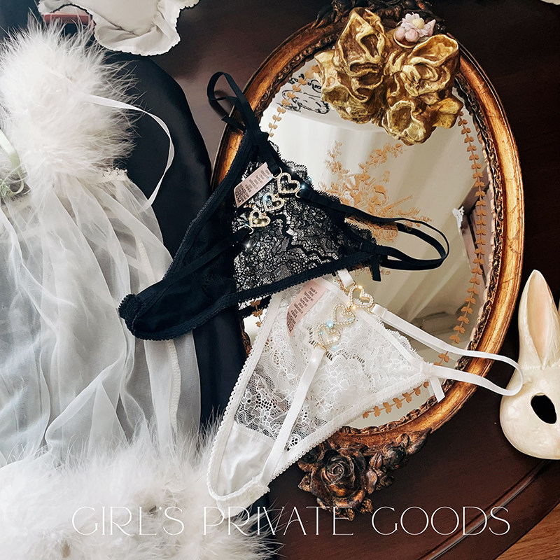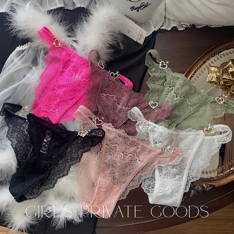 Heart-Shaped Rhinestone Sexy Lace Panties for Women, Pure Desire Temptation, Low-Waist Pure Cotton Crotch Thong T-Pants