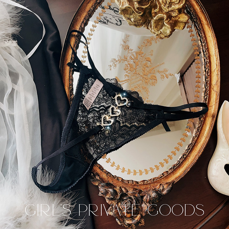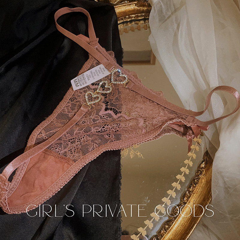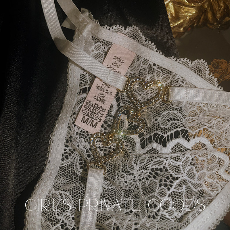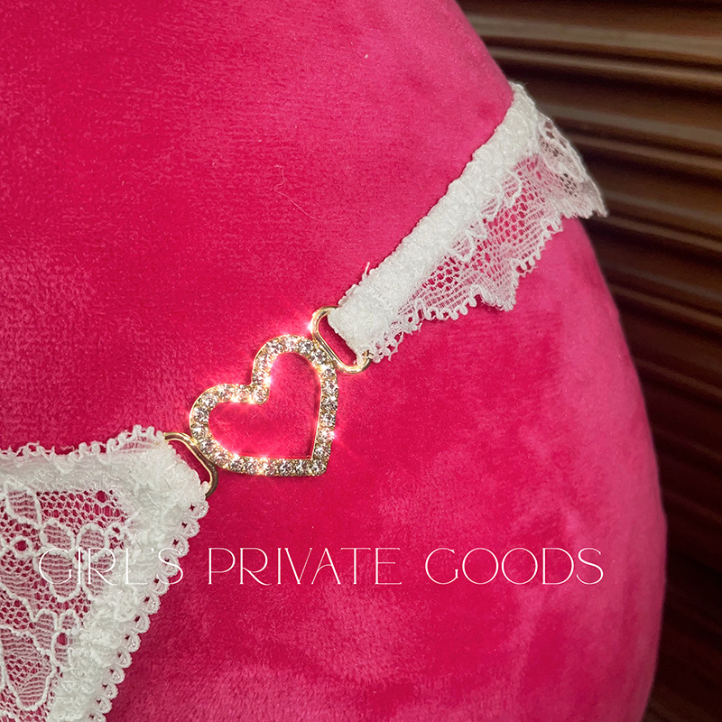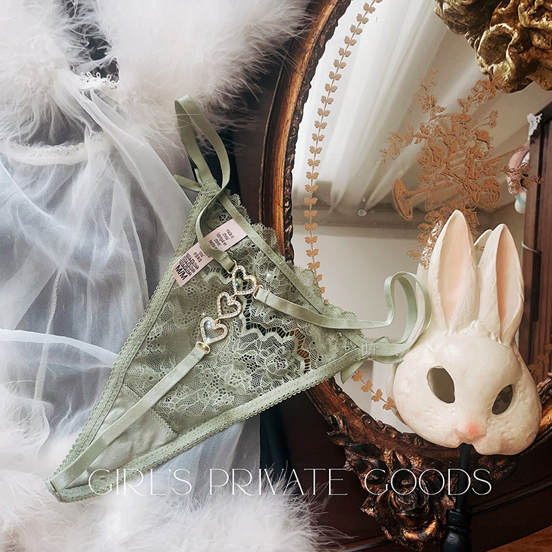 Heart-Shaped Rhinestone Sexy Lace Panties for Women, Pure Desire Temptation, Low-Waist Pure Cotton Crotch Thong T-Pants