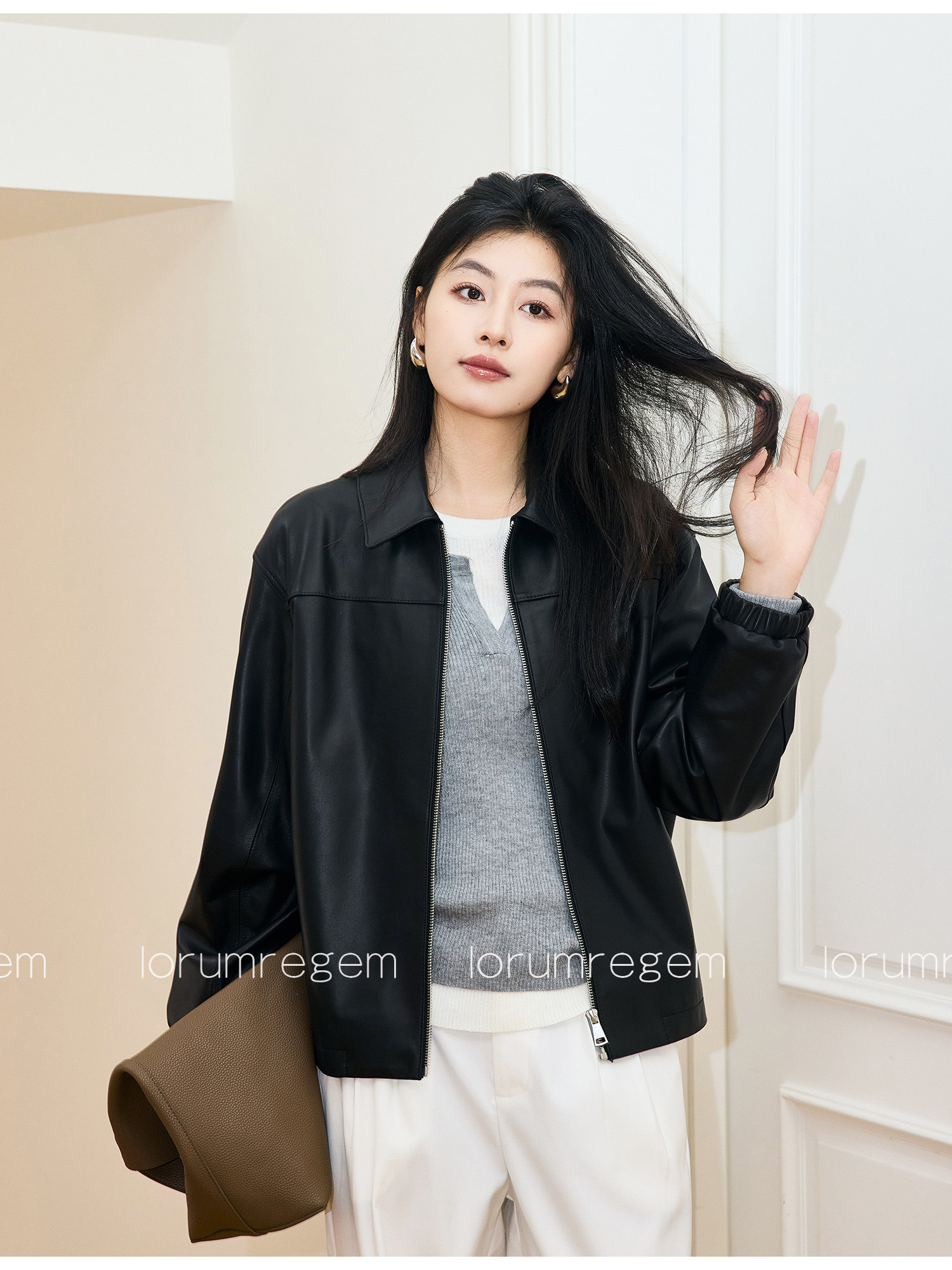Lr Black Genuine Leather Jacket for Women 2026 New Style Short Vintage Loose Pure Natural Lambskin Jacket
