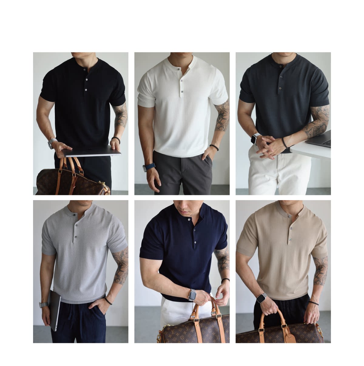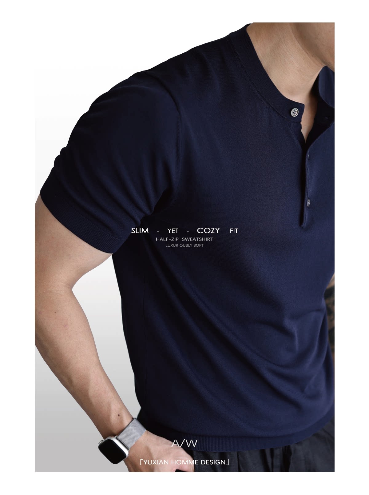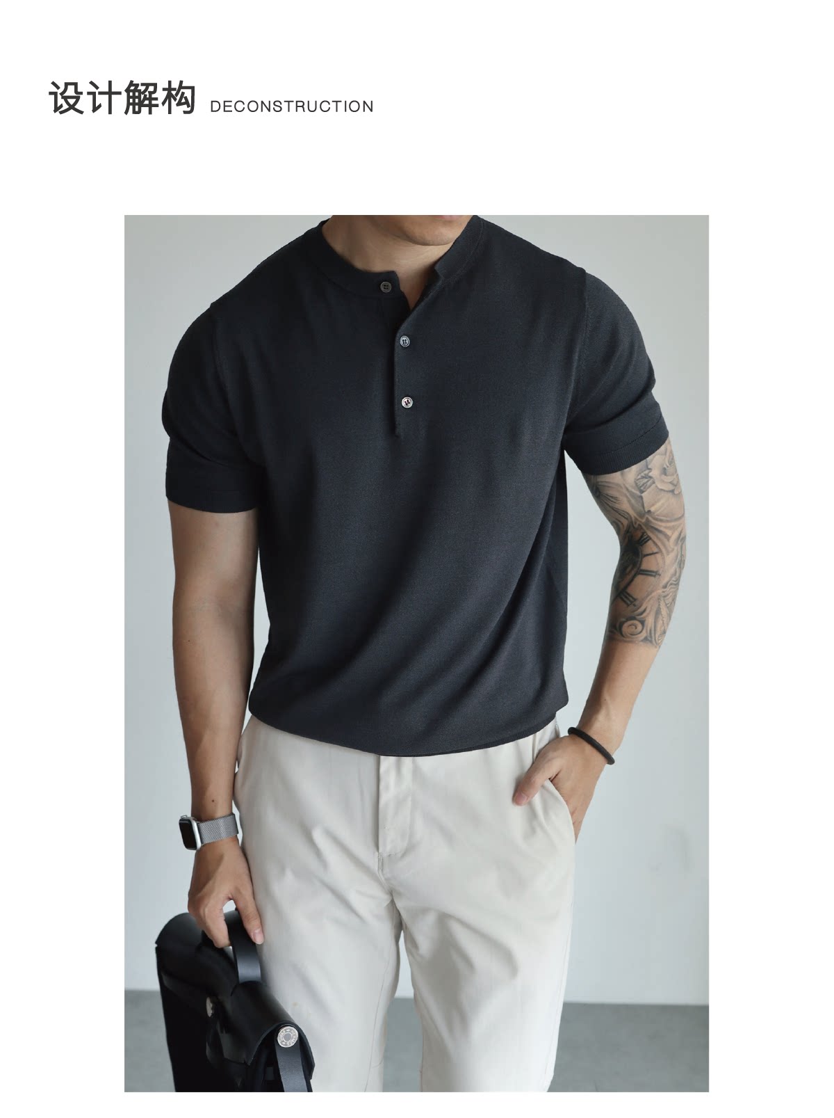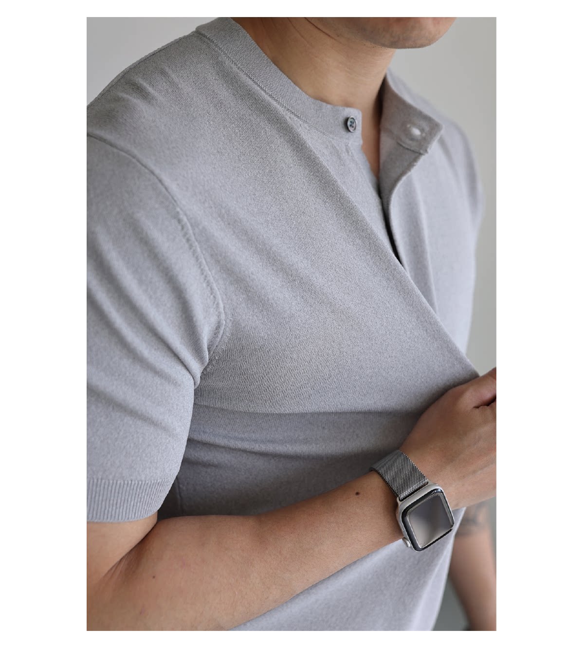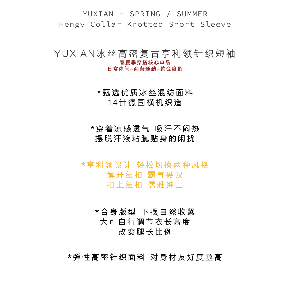 Yuxian American-Style Henry Collar Solid Color Cool Retro Knitted Short-Sleeve T-Shirt Spring and Summer Ice Silk High-Density Stretch Men's