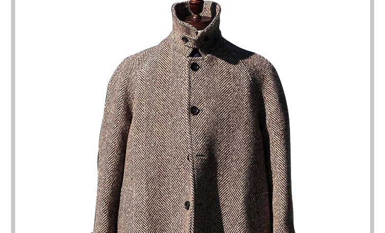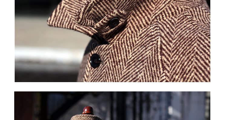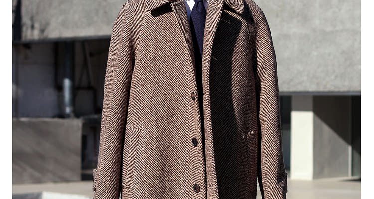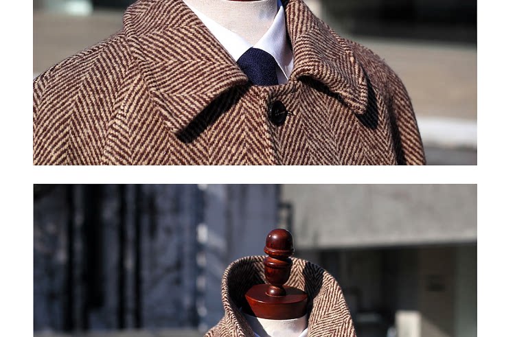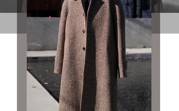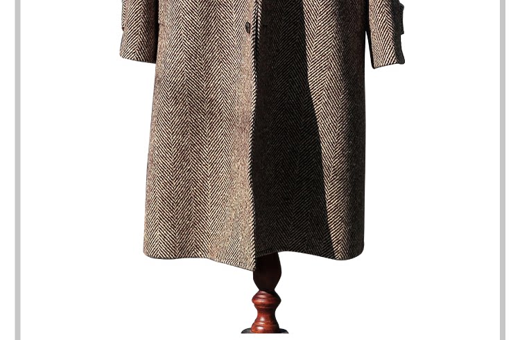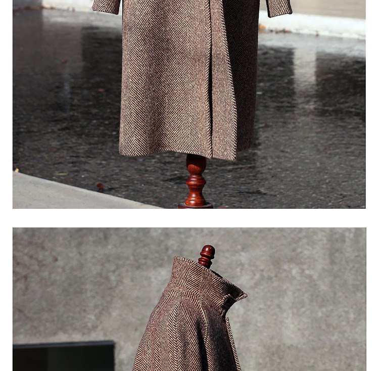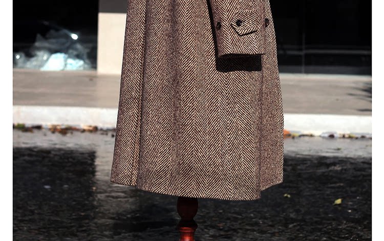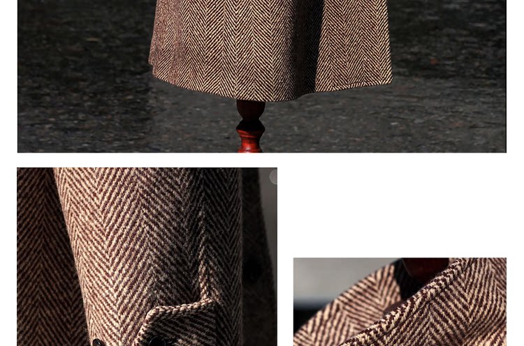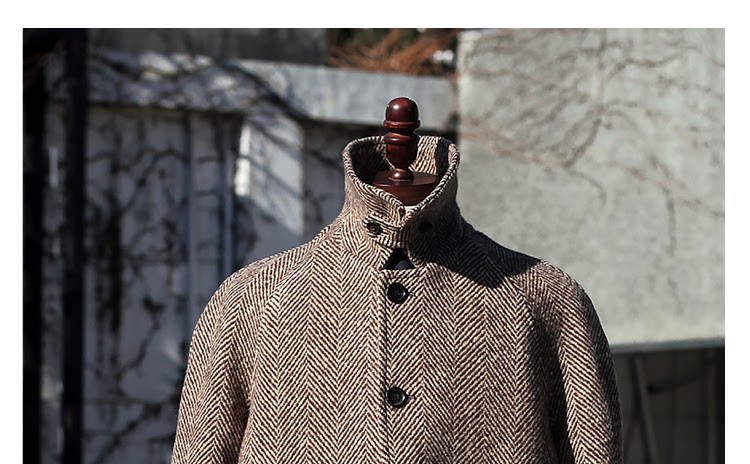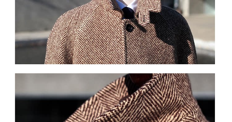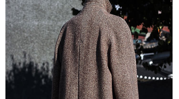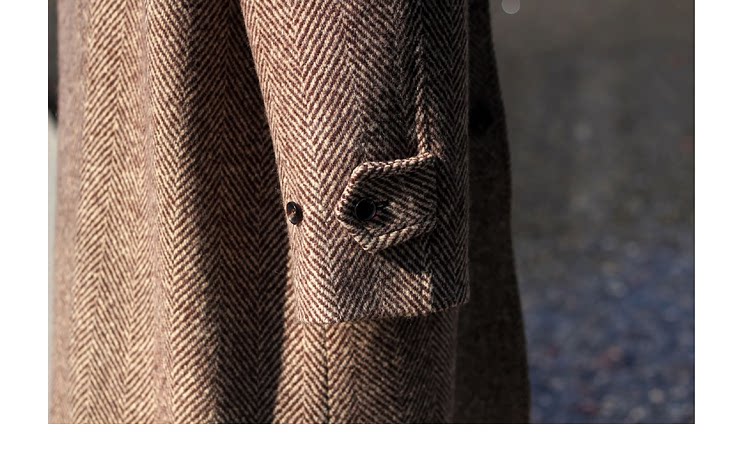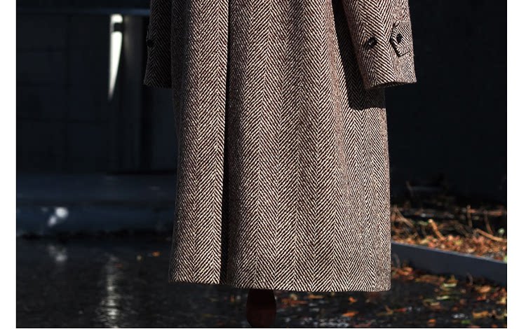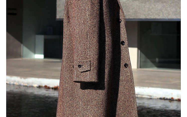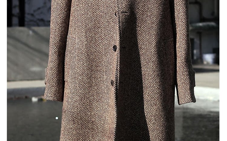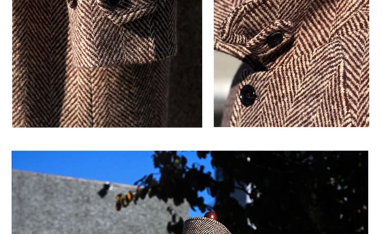 Pure Wool Fabric Tweed Coat Brown Herringbone Raglan Sleeve Coat Fashionable Retro Casual High-End Craftsmanship