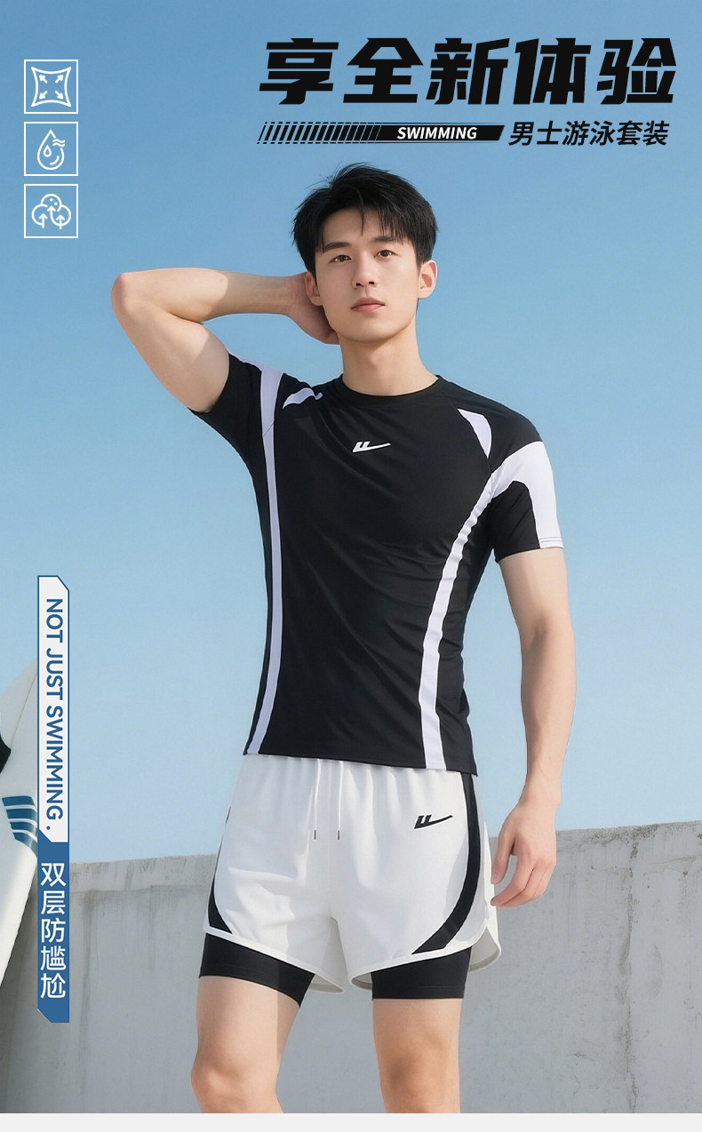 Pull-Back Men's Swimsuit and Swim Trunks Set 2026 New Style Boys' Youth Large Size Adult Quick-Drying Swimwear Top