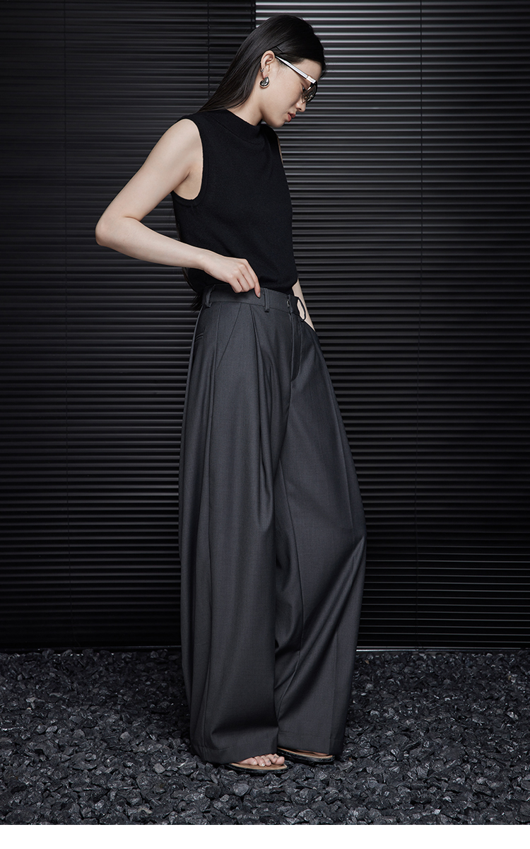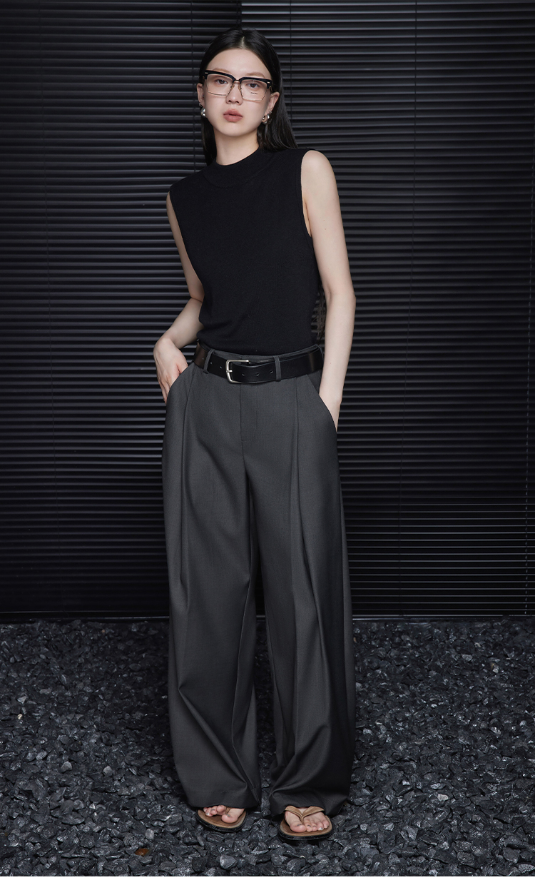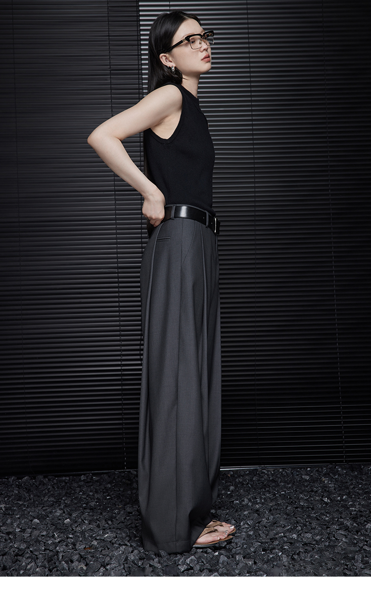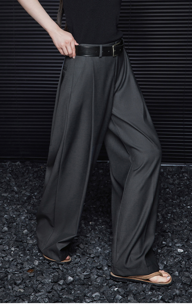 Moment Gray High-Waisted Loose Straight-Leg Trousers for Women 2025 Spring and Autumn New Style Drapey Lazy Style Wide-Leg Pants