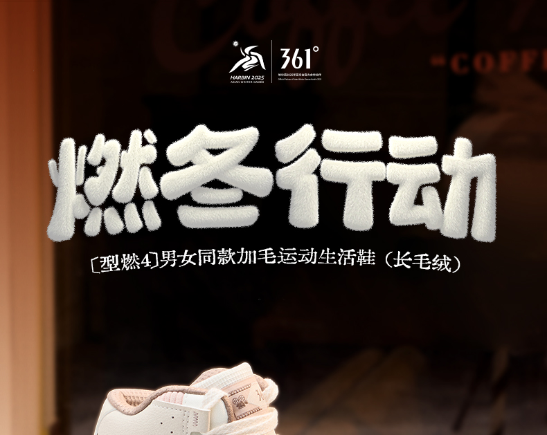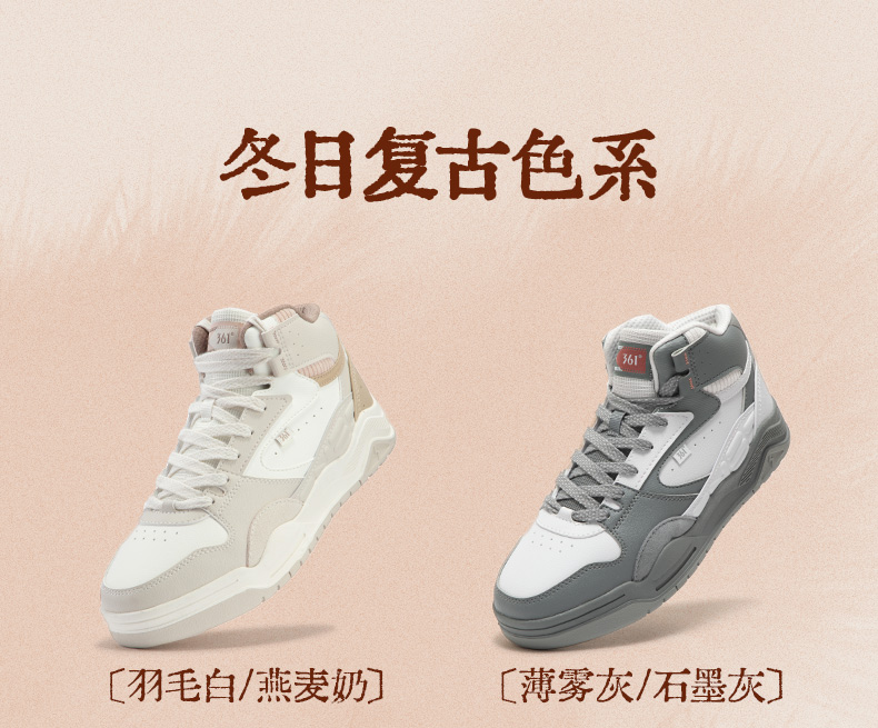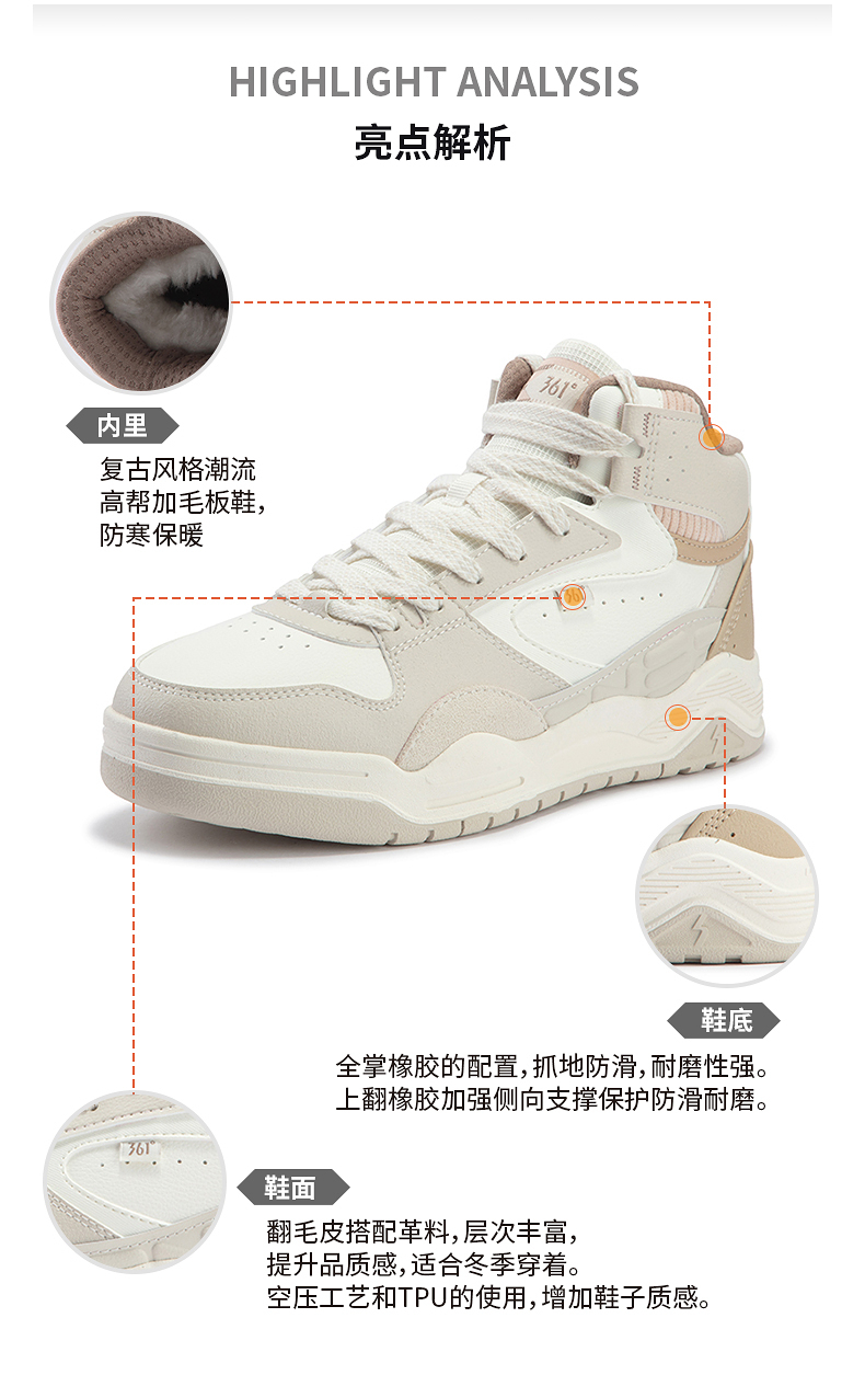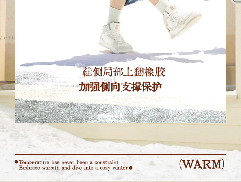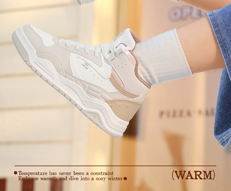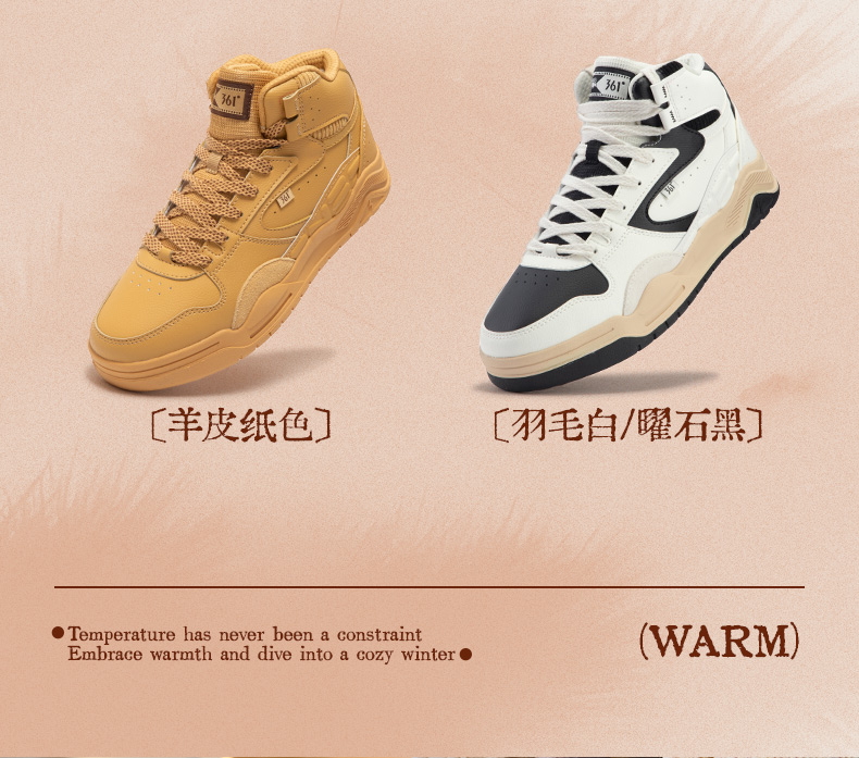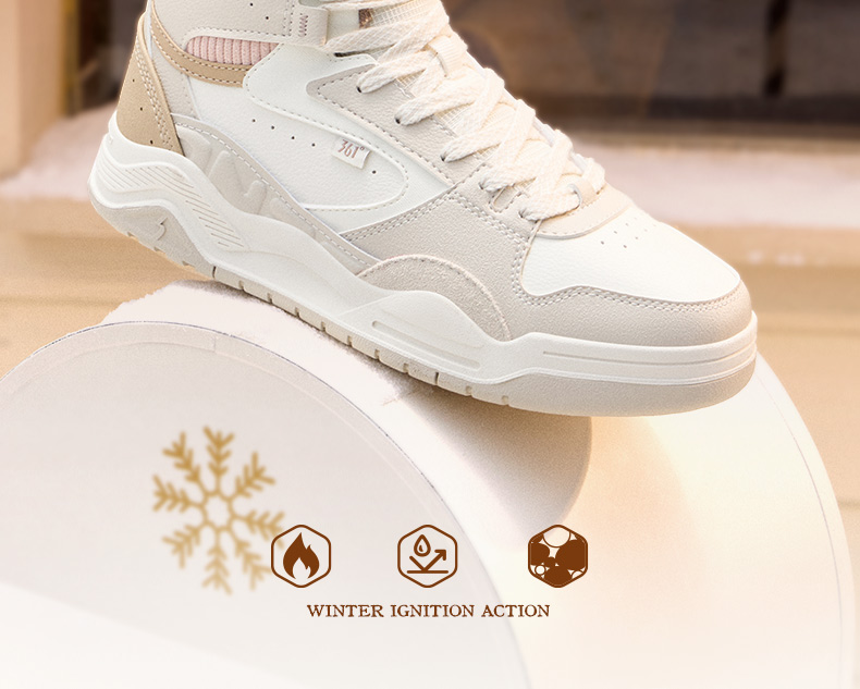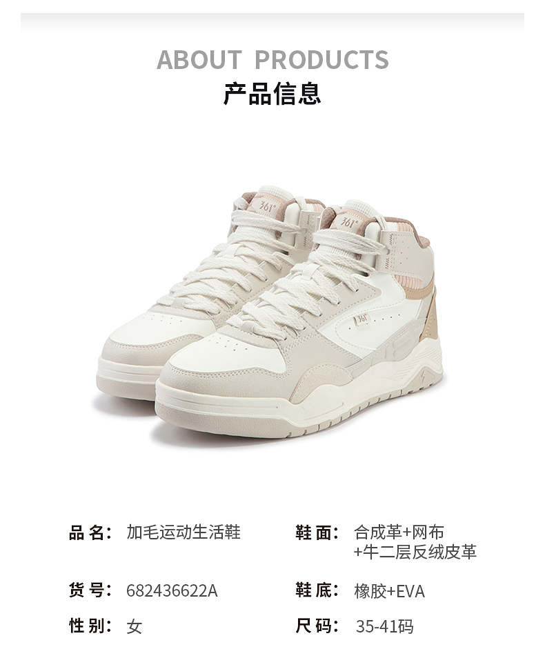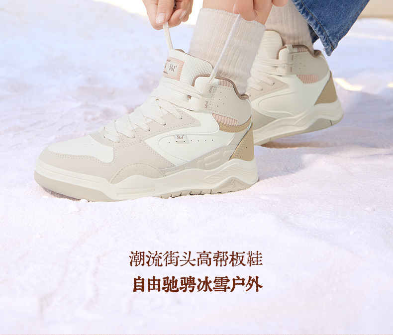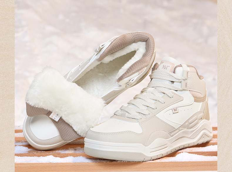 361 Women's Sneakers 2025 Winter New Style Fleece-Lined Shoes Warm Casual Shoes Large Cotton Shoes High-Top Sneakers for Women