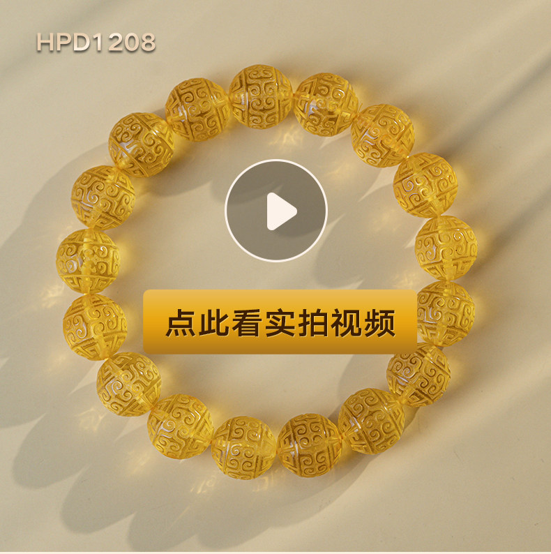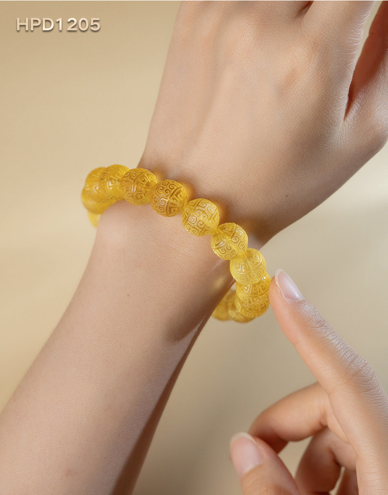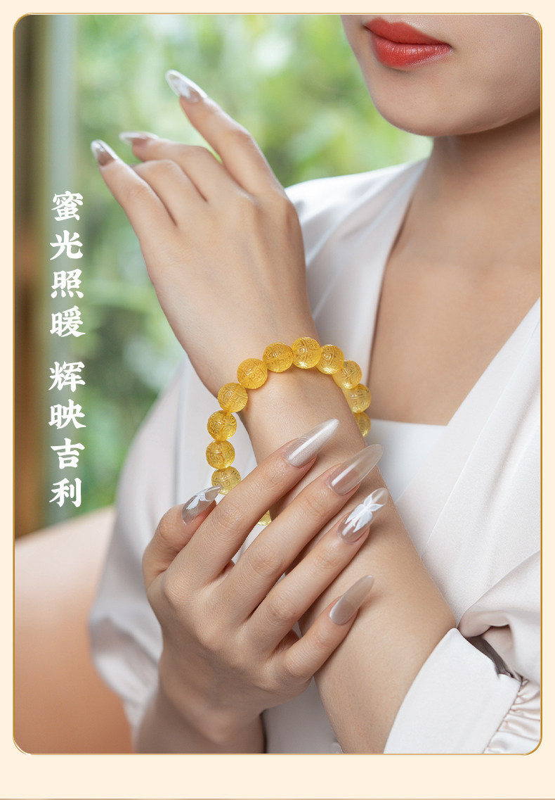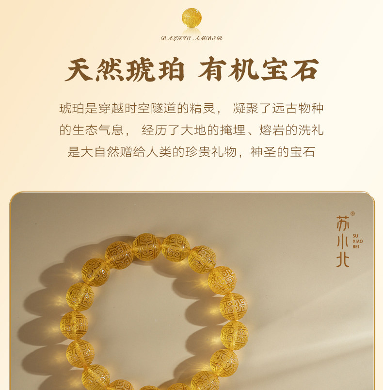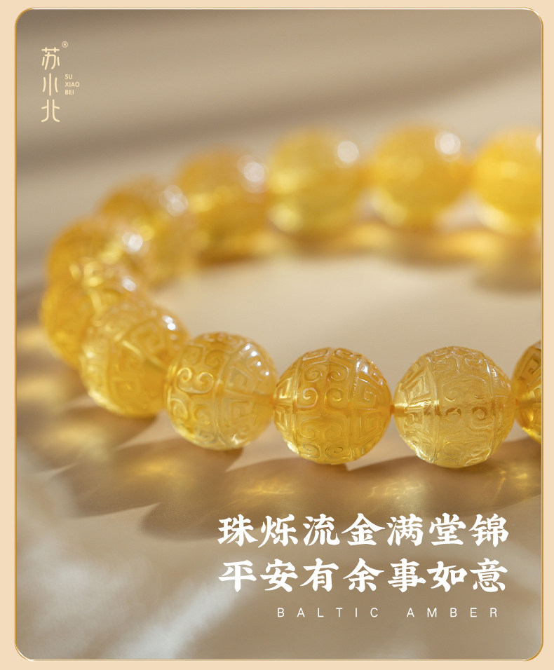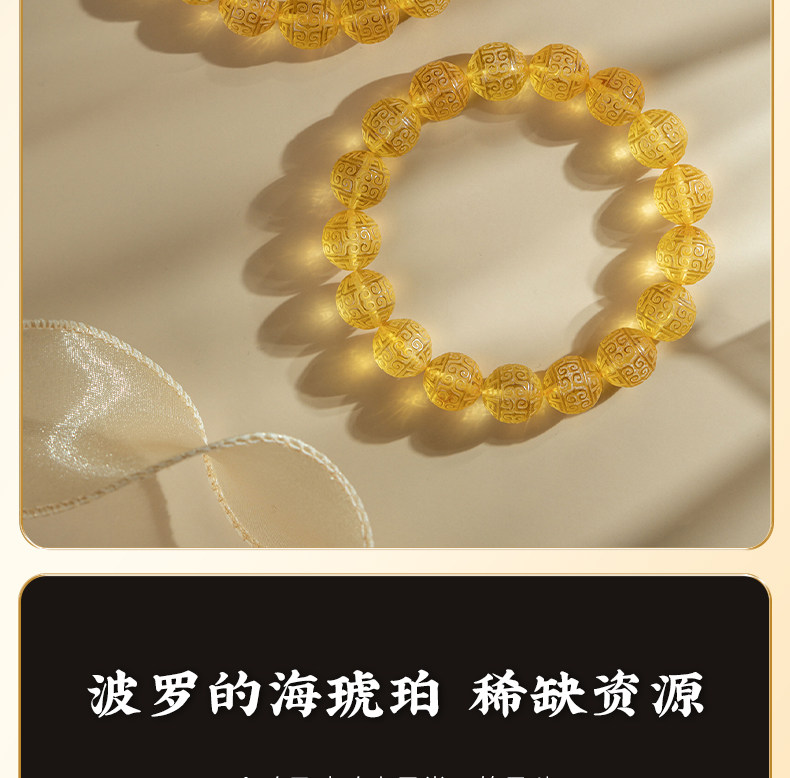 Su Xiaobei Baltic's Sea Amber Gold Amber Bracelet Pattern Engraving Bracelet Wenwan Buddha Beads Raw Stone Accessories Men and Women