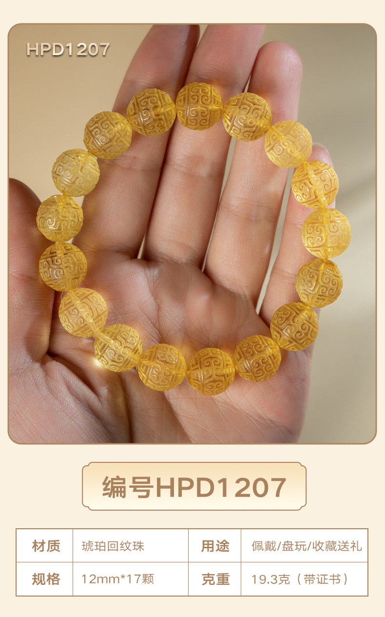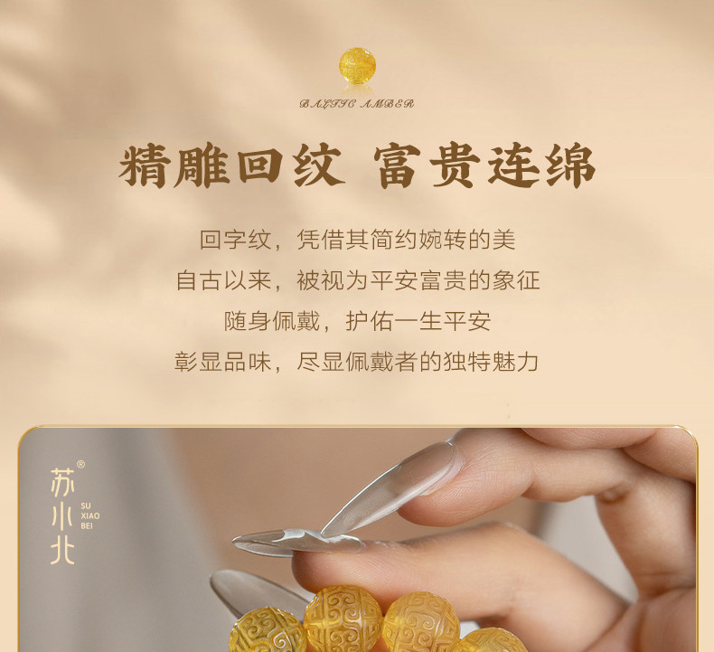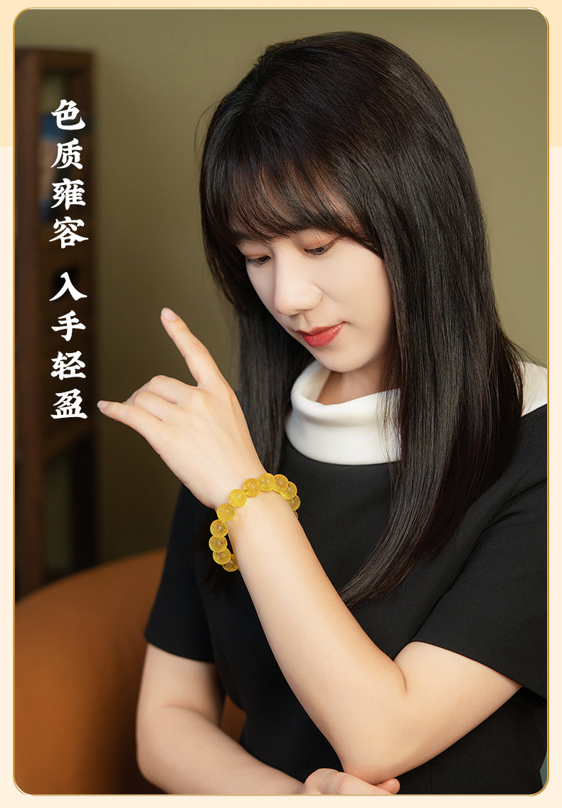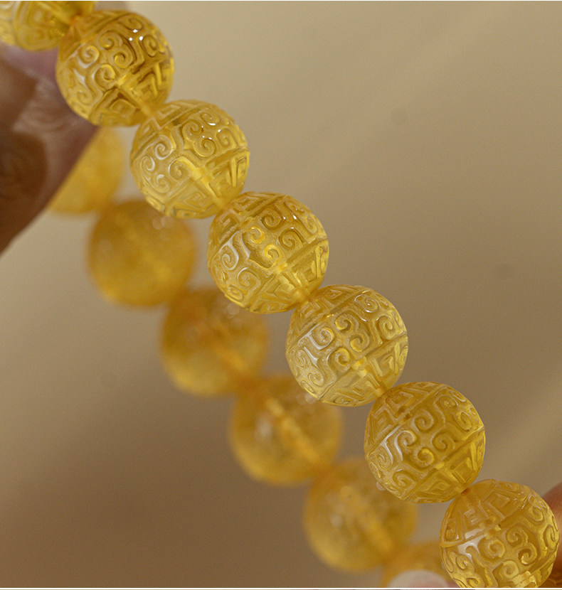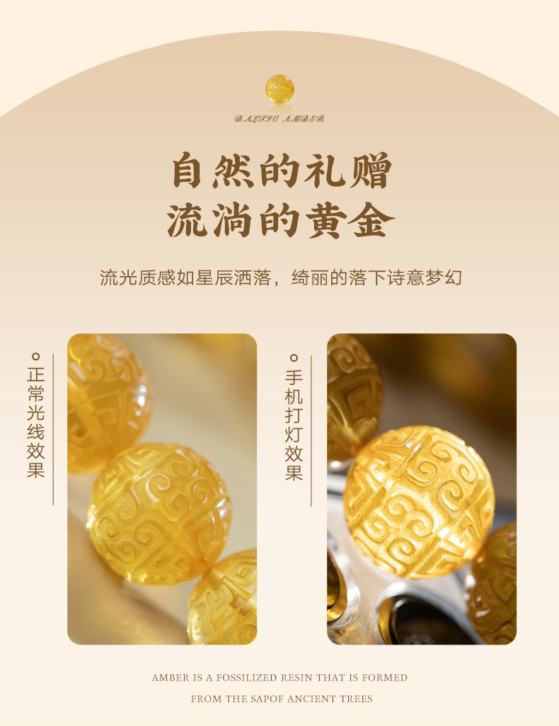 Su Xiaobei Baltic's Sea Amber Gold Amber Bracelet Pattern Engraving Bracelet Wenwan Buddha Beads Raw Stone Accessories Men and Women