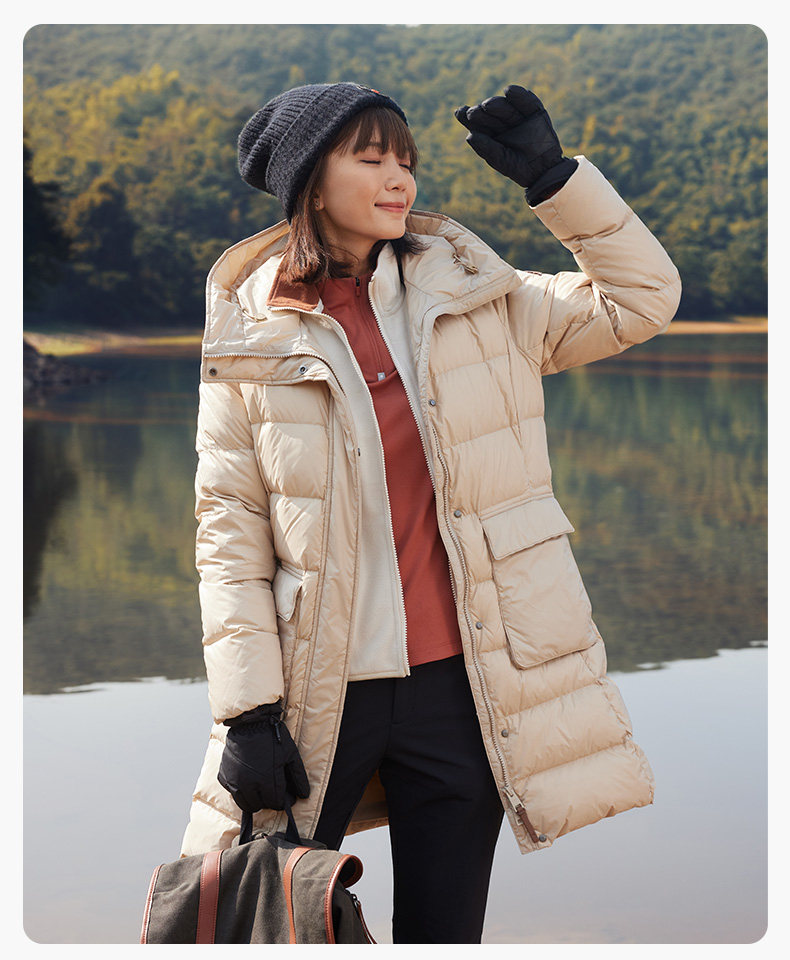 Lafuma Outdoor 700 Fill Power Water-Repellent Warm Hooded down Jacket for Women, Glossy Goose down Cold-Proof Coat