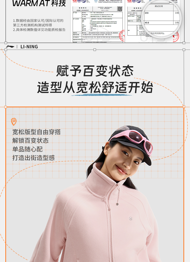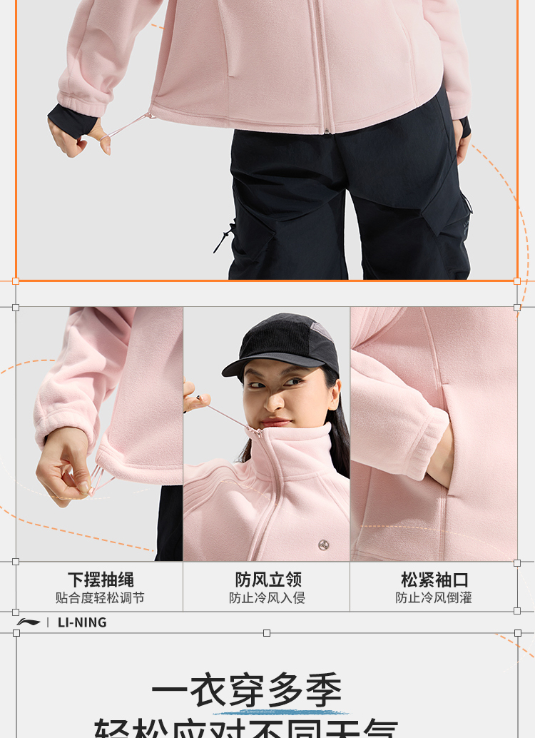 Li-Ning Fleece Jacket for Women, Loose Fit, Fleece-Lined, Slim Fit, Stand Collar, Windproof, Outdoor, Warm, Sports Sweatshirt Jacket for Women