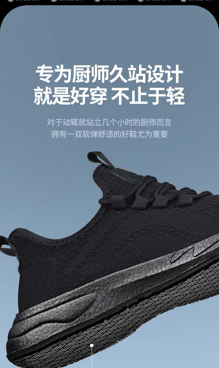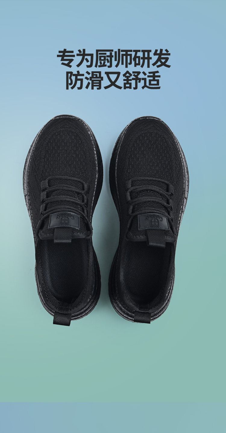 Chef's Shield Popcorn Professional Chef Shoes, Non-Slip, Waterproof, Oil-Proof, Men's Pure Black, Back-Of-The-Kitchen, Odor-Resistant, Kitchen Work Shoes for Men and Women