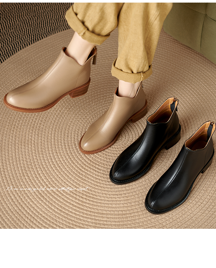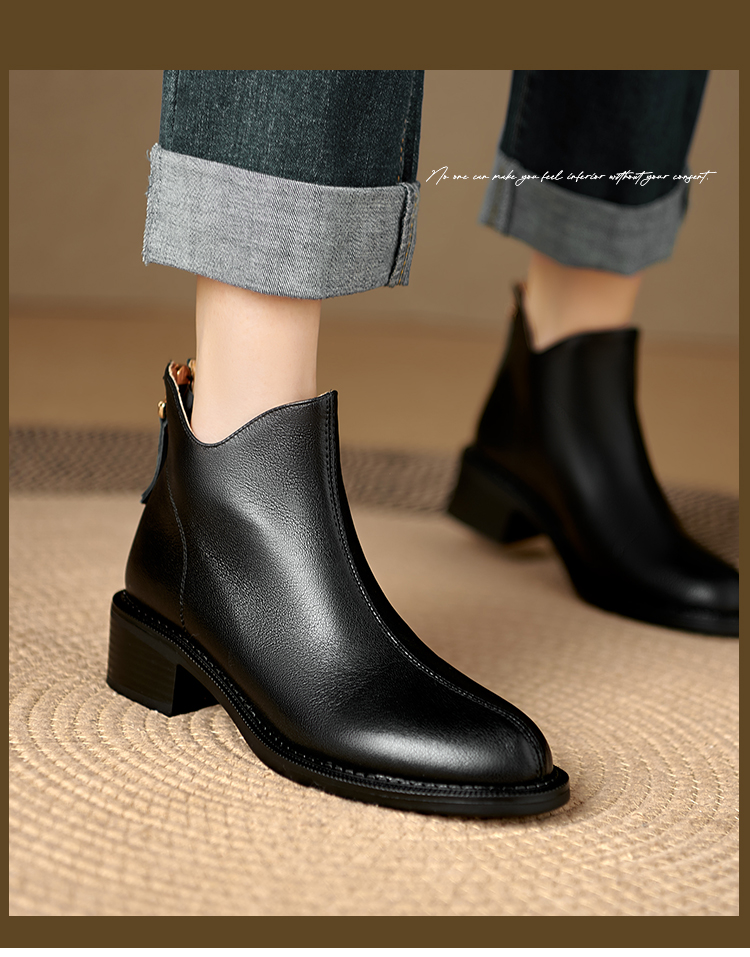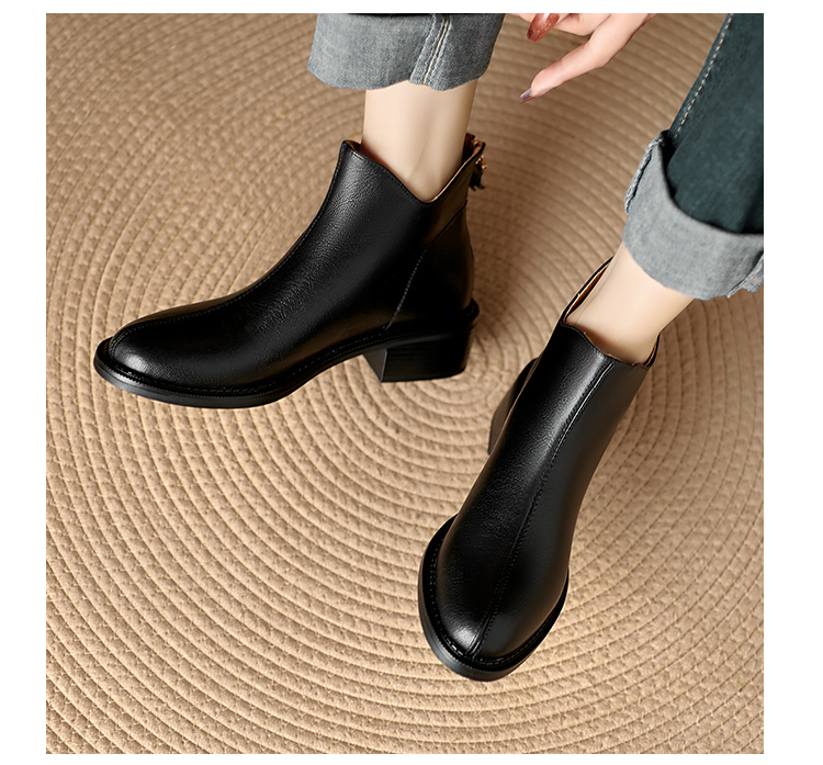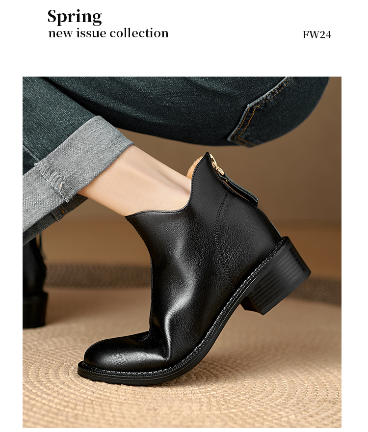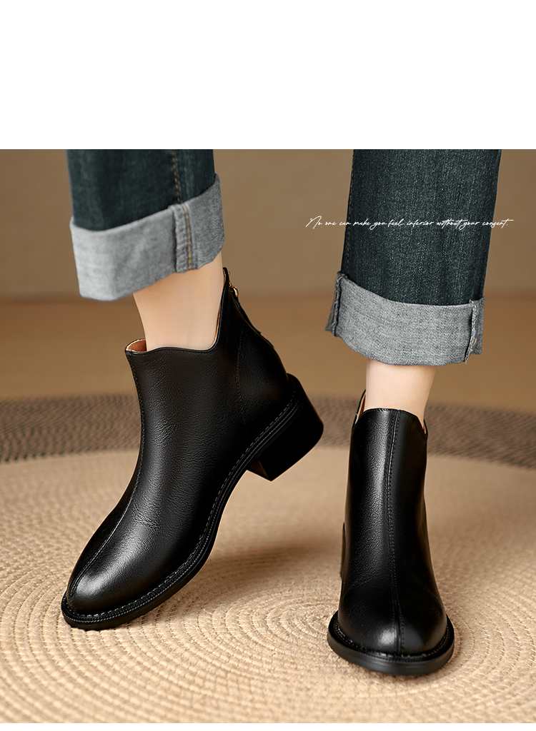 Italy~Raraente~Retro High-Heeled Boots for Women, Round-Toe British Style Chelsea Boots, Single Boots, Back Zipper Short Boots