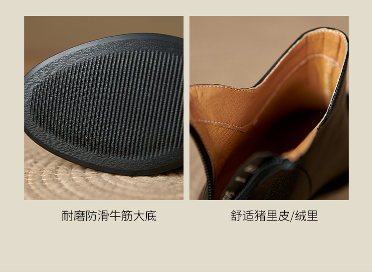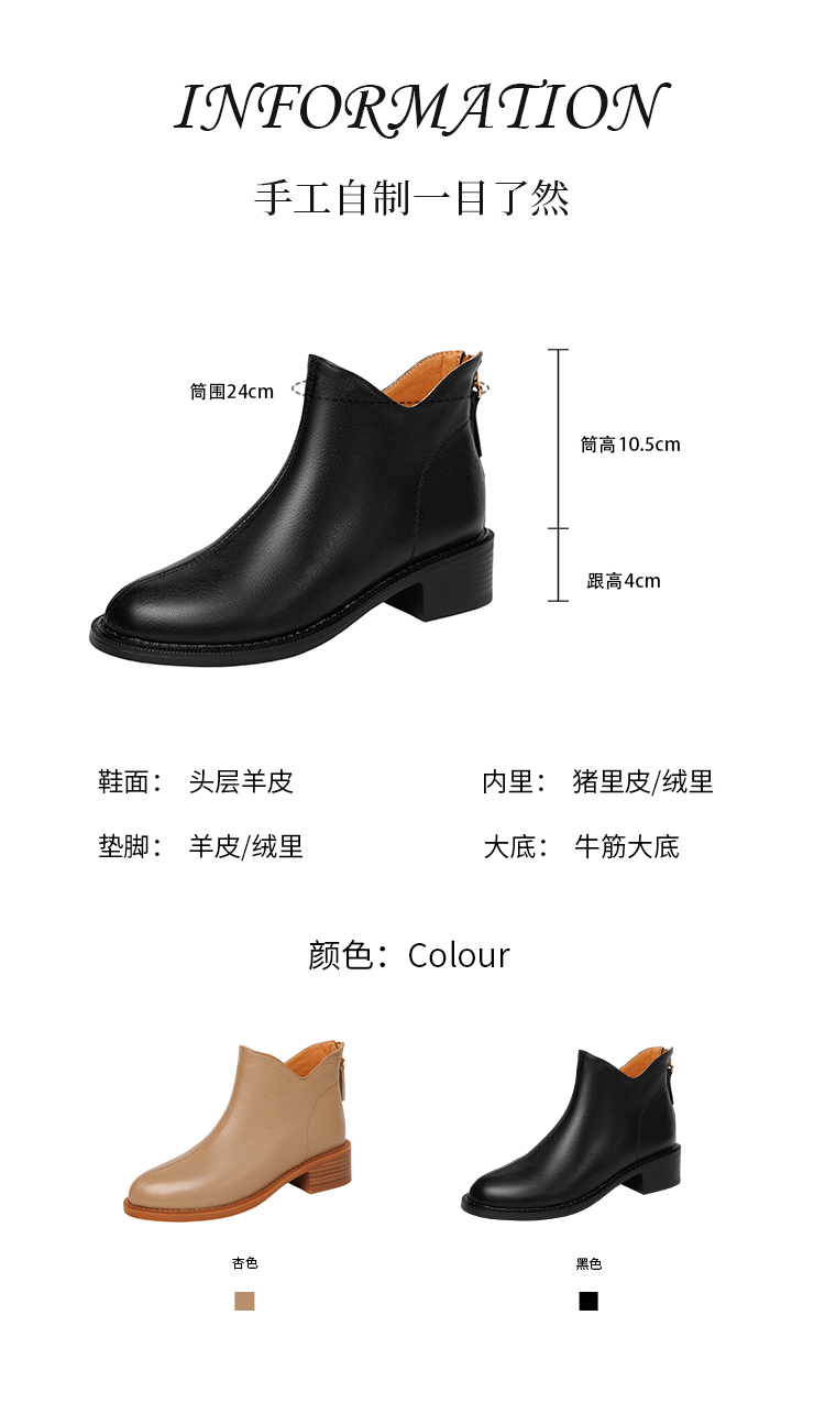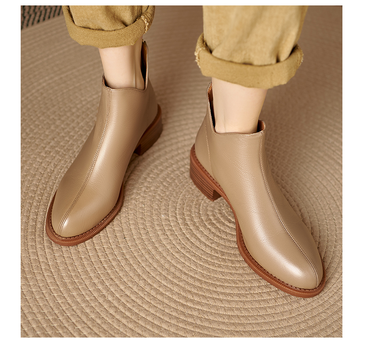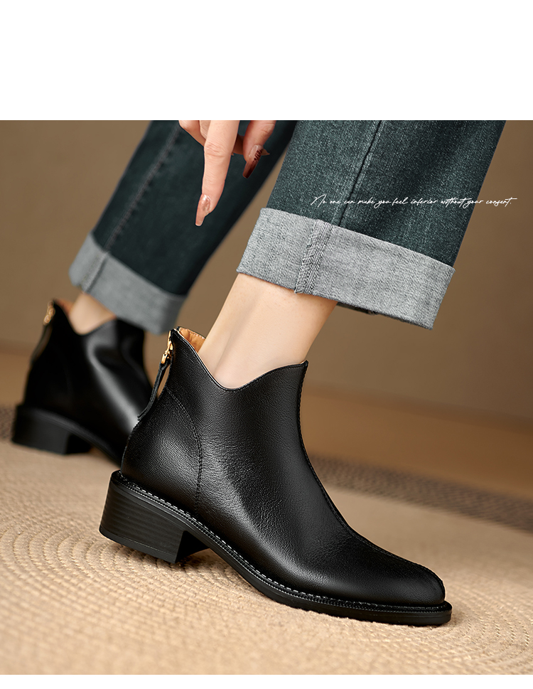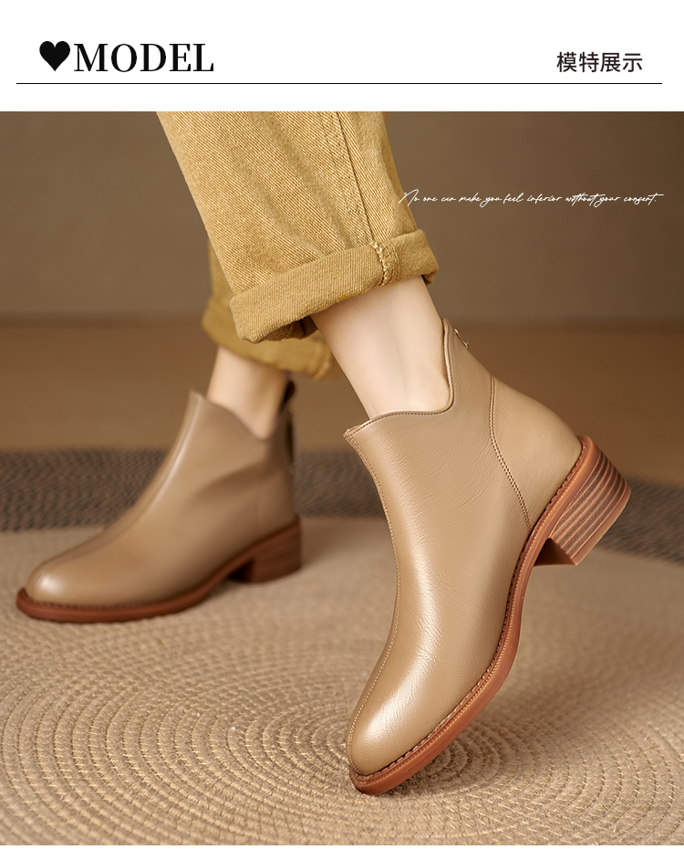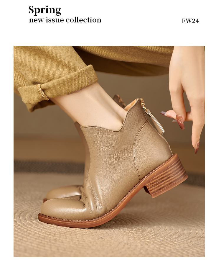Italy~Raraente~Retro High-Heeled Boots for Women, Round-Toe British Style Chelsea Boots, Single Boots, Back Zipper Short Boots