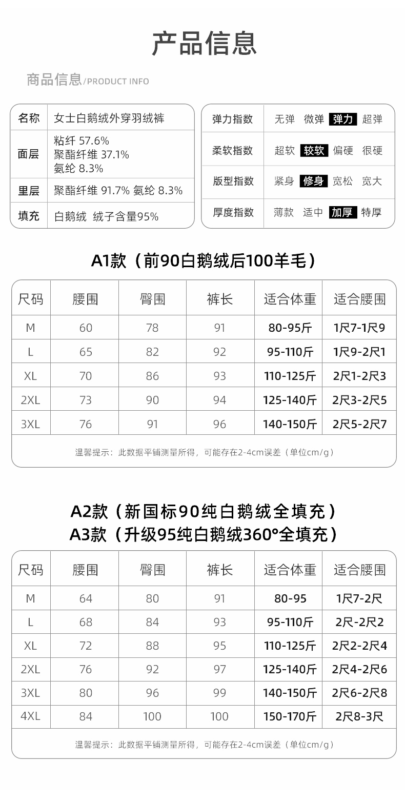 Women's down Pants for Outdoor Wear in Winter, New Down-Lined Cotton Pants for Temperatures as Low as Minus 40 Degrees, Northeast Cold-Proof Pants