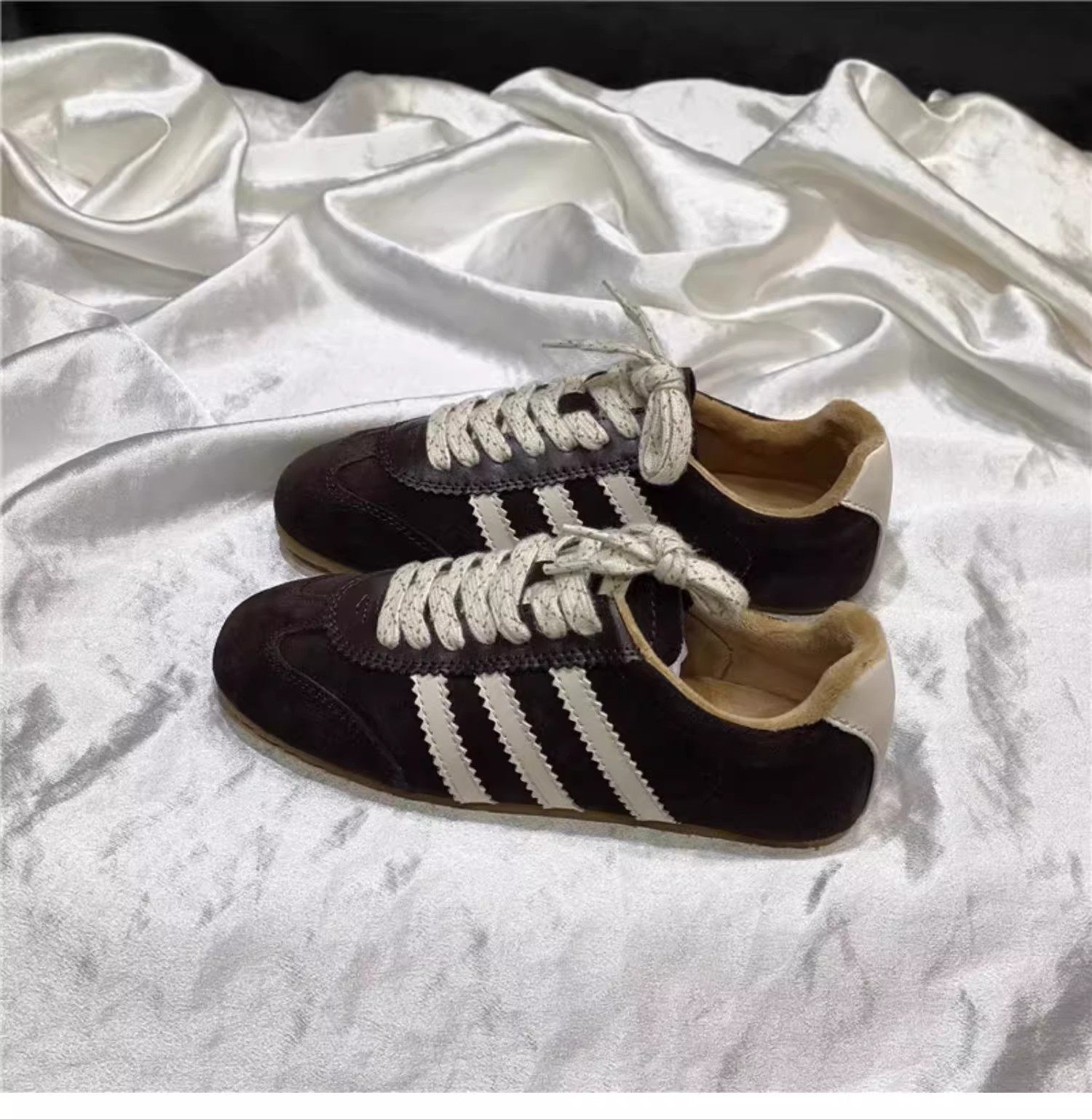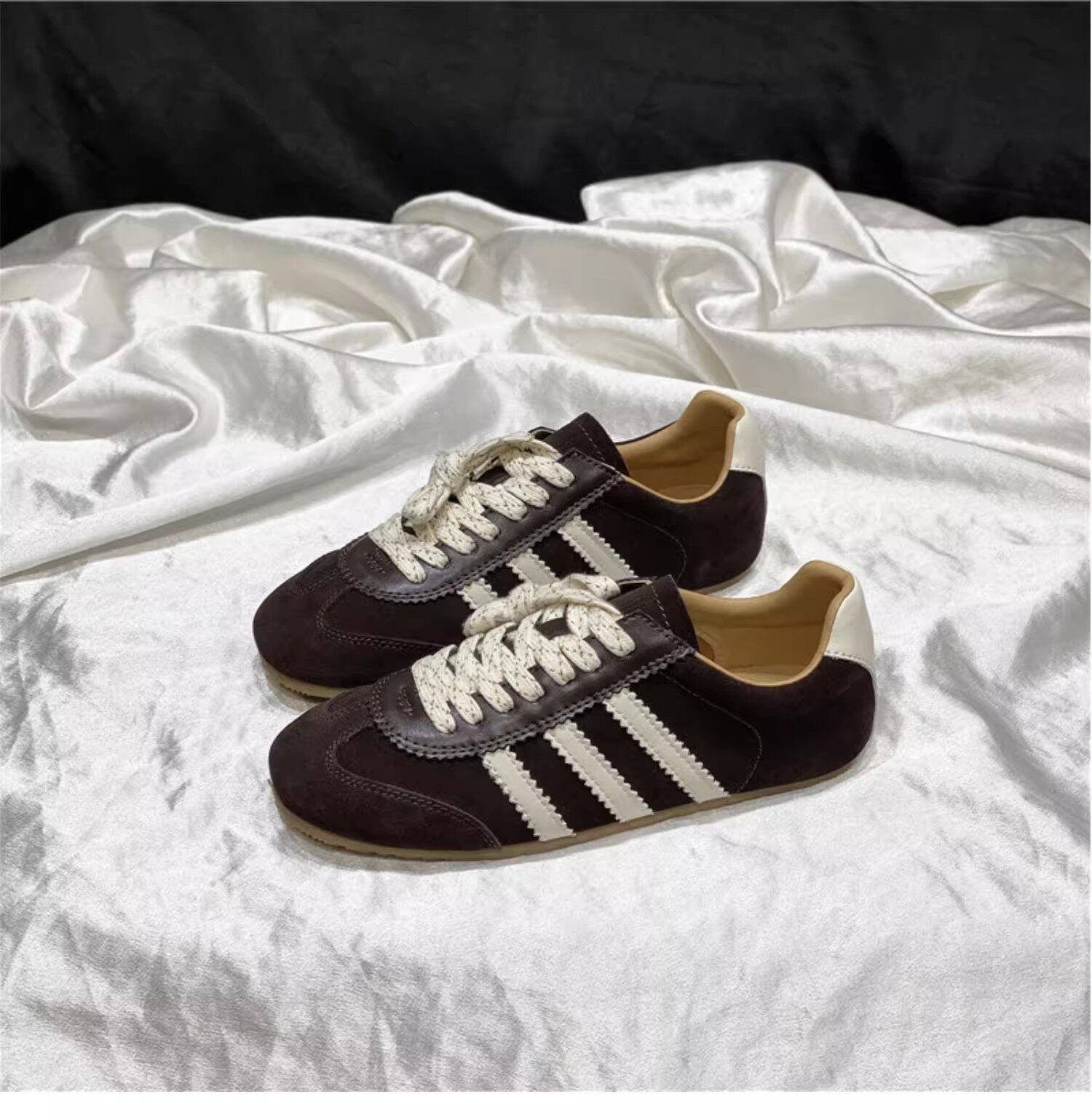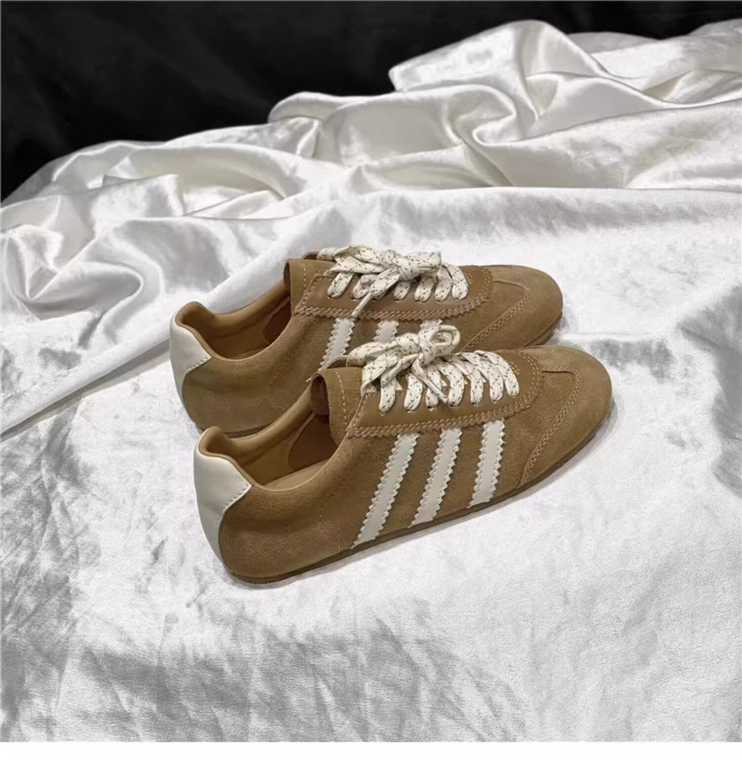 Hong Kong Genuine Leather Flat Sneakers with Three Stripes for Women, 2025 Spring and Autumn New Casual Lace-Up Sneakers, Versatile Versatile Shoes