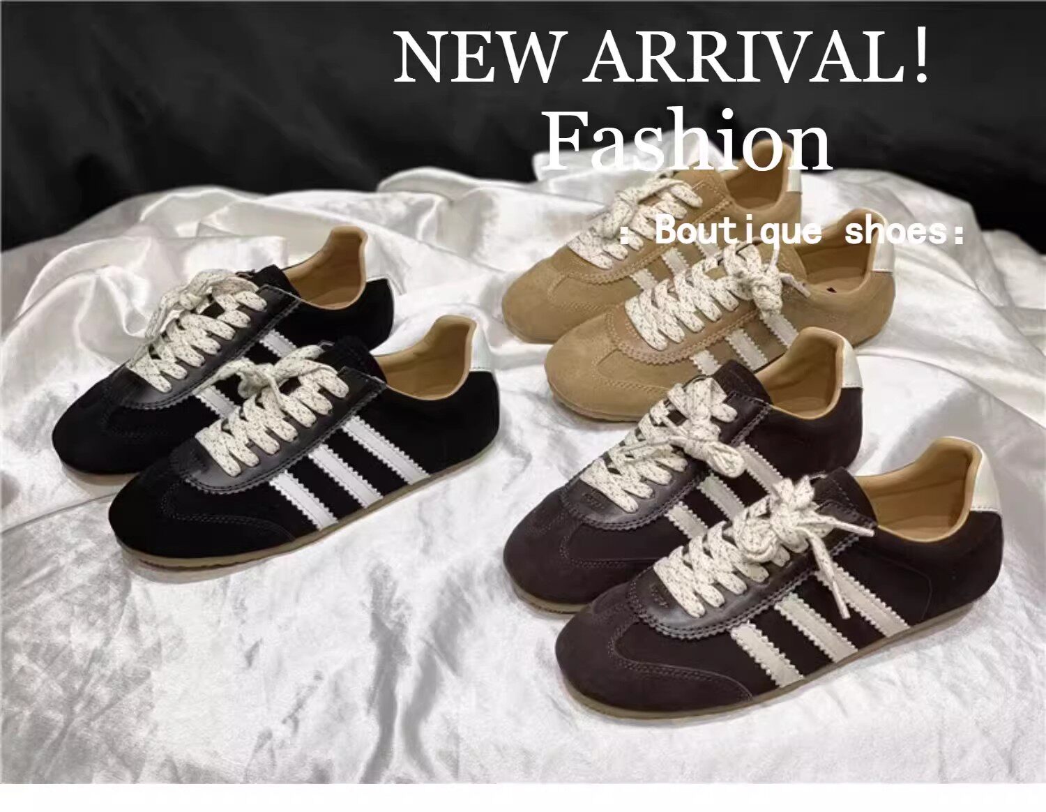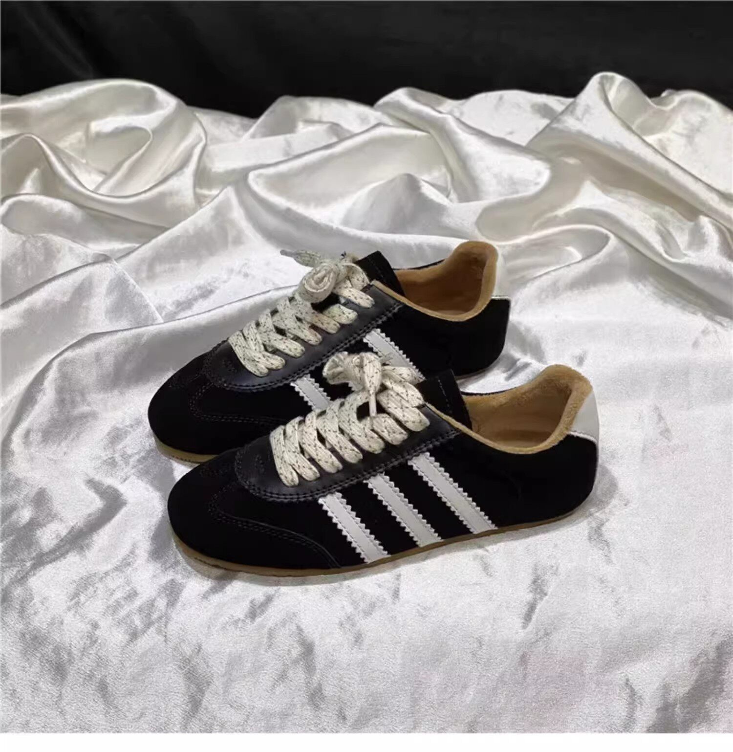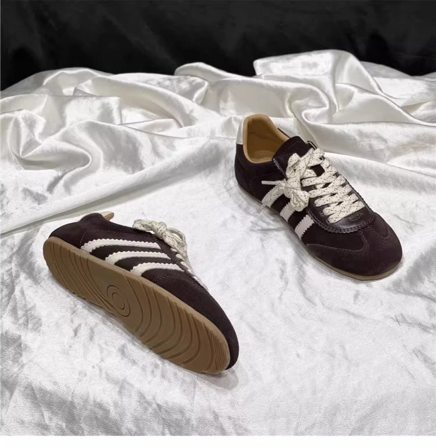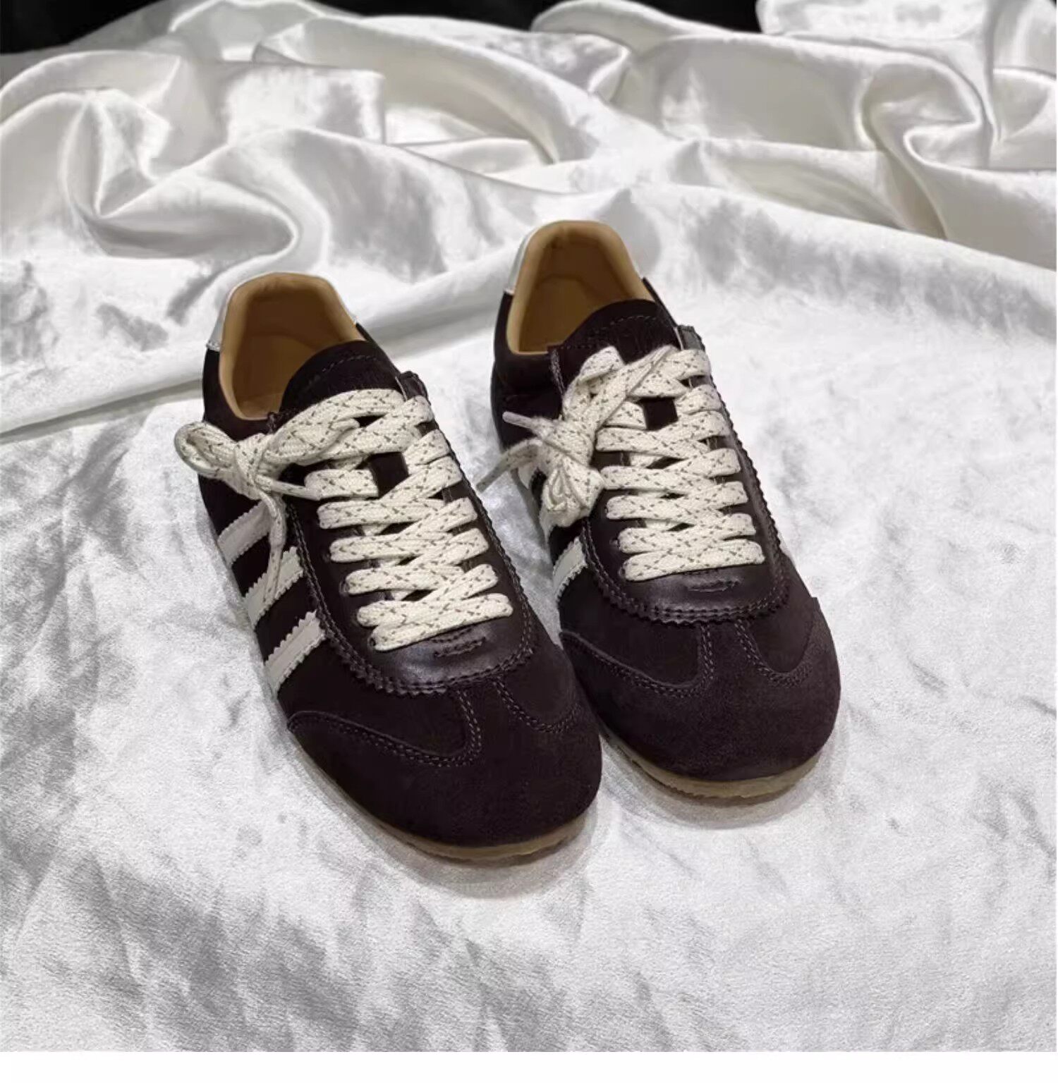 Hong Kong Genuine Leather Flat Sneakers with Three Stripes for Women, 2025 Spring and Autumn New Casual Lace-Up Sneakers, Versatile Versatile Shoes