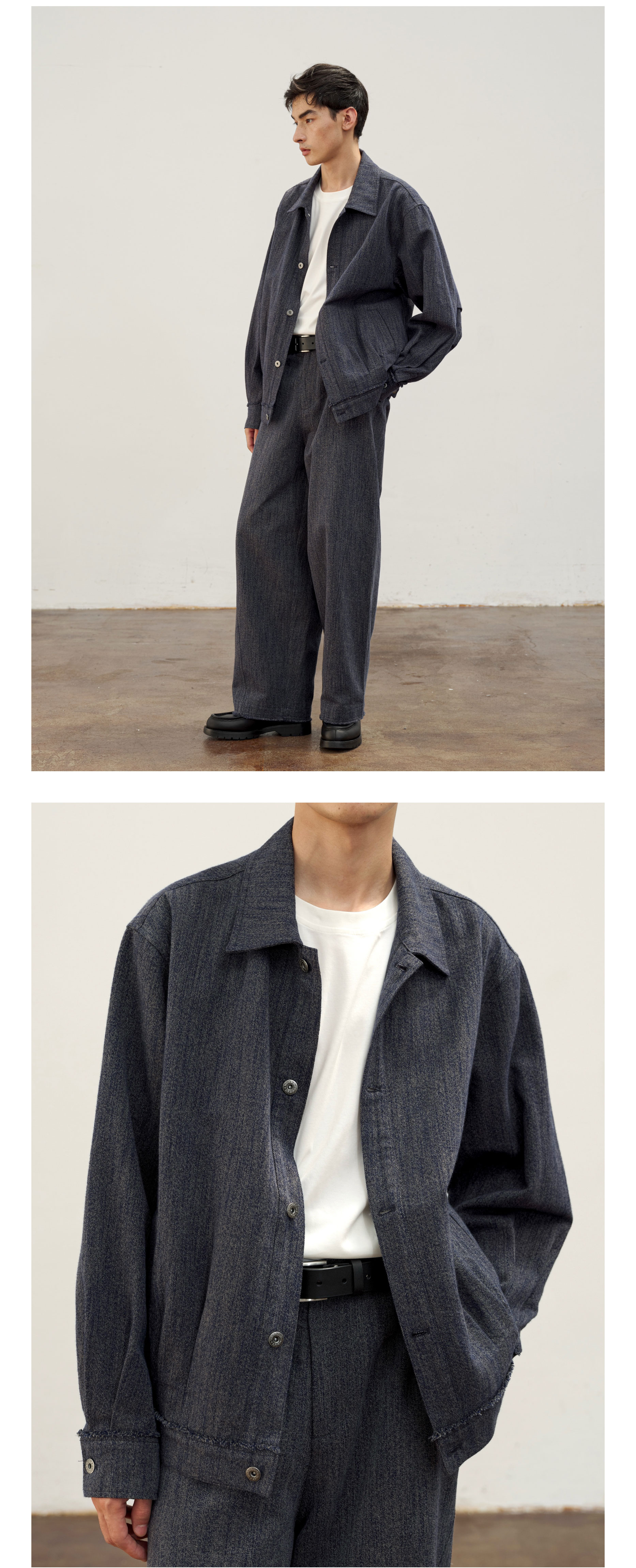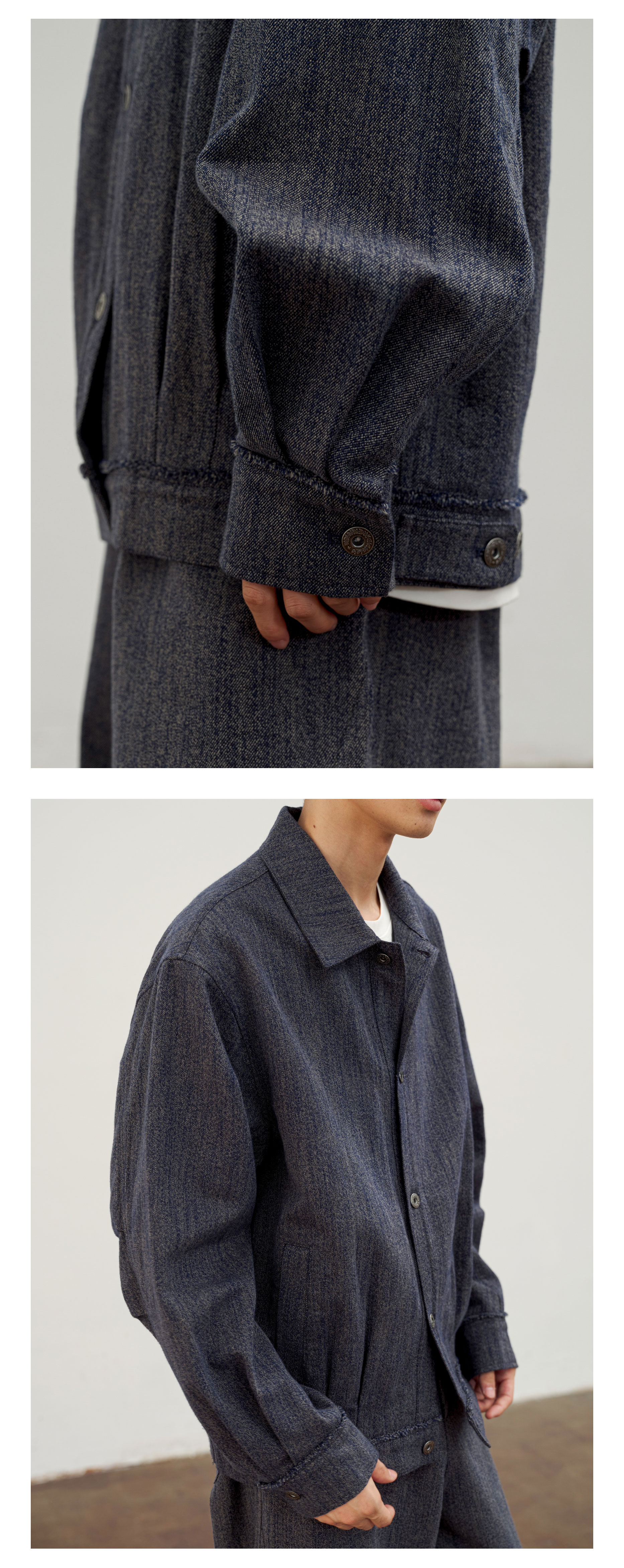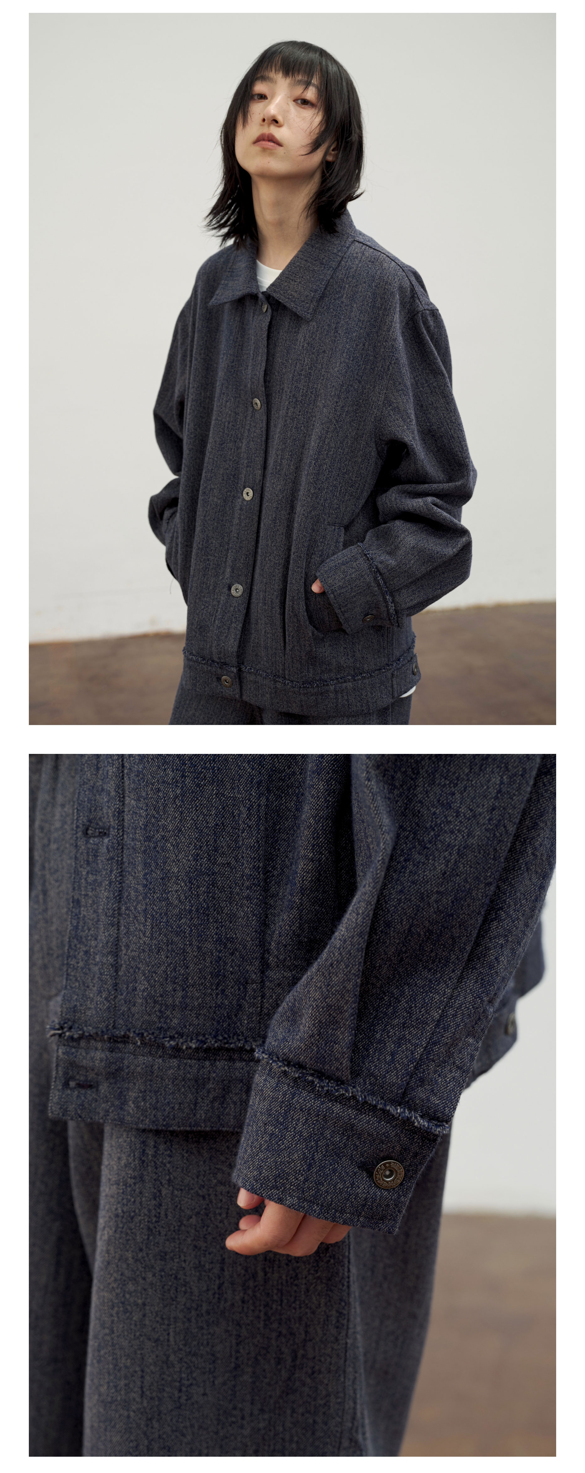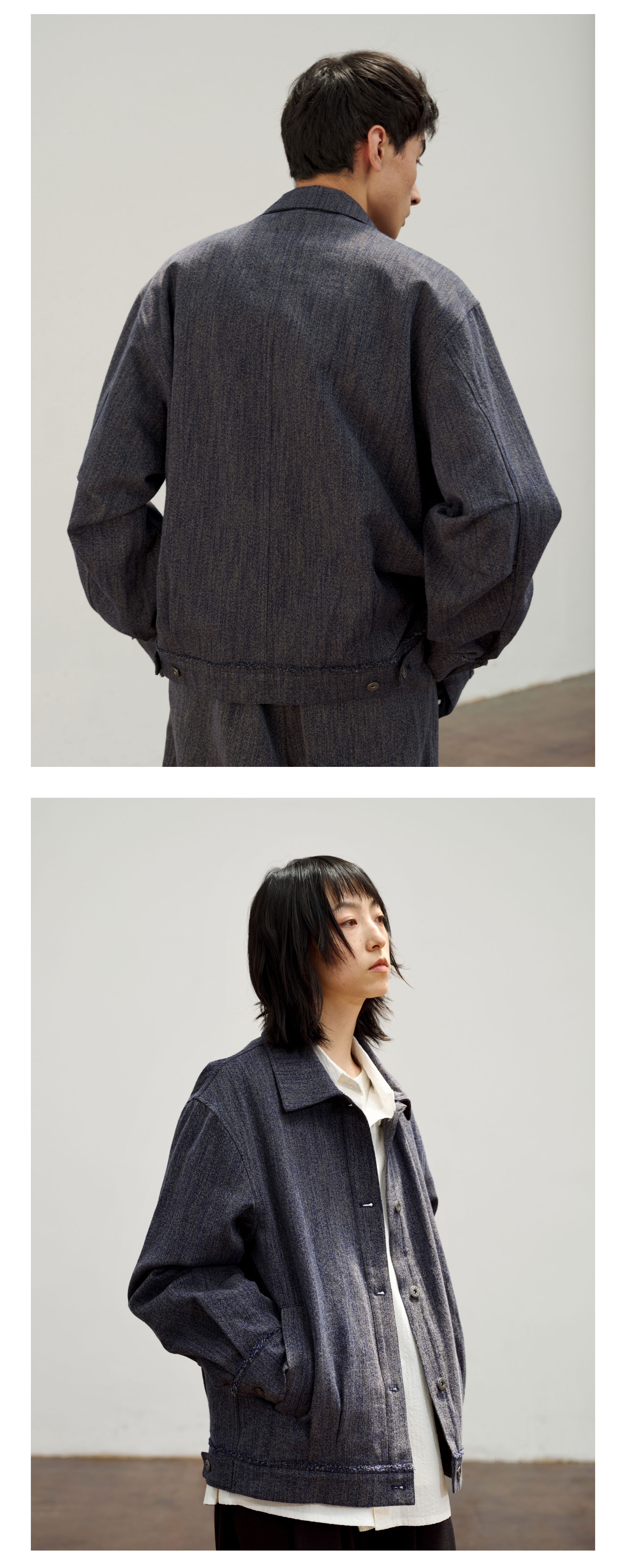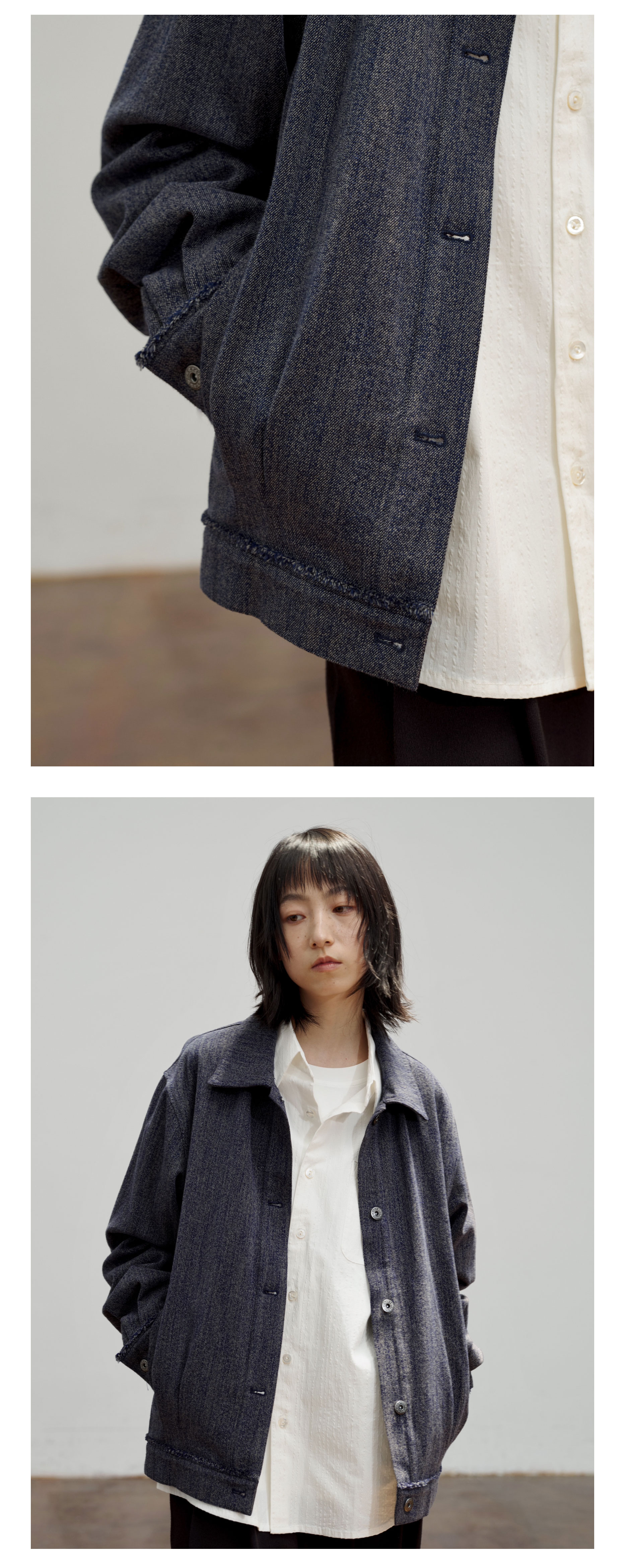 Waterever | 「Qingying」Retro Blue Frayed Short Denim Jacket, Non-Fading Washed Jacket