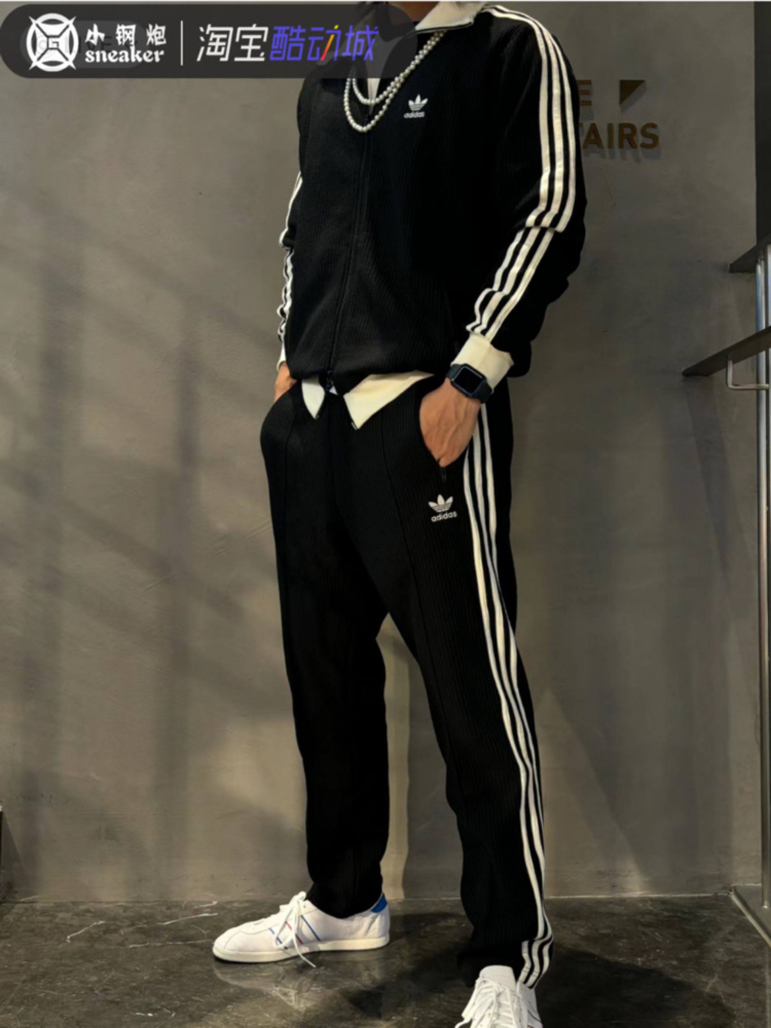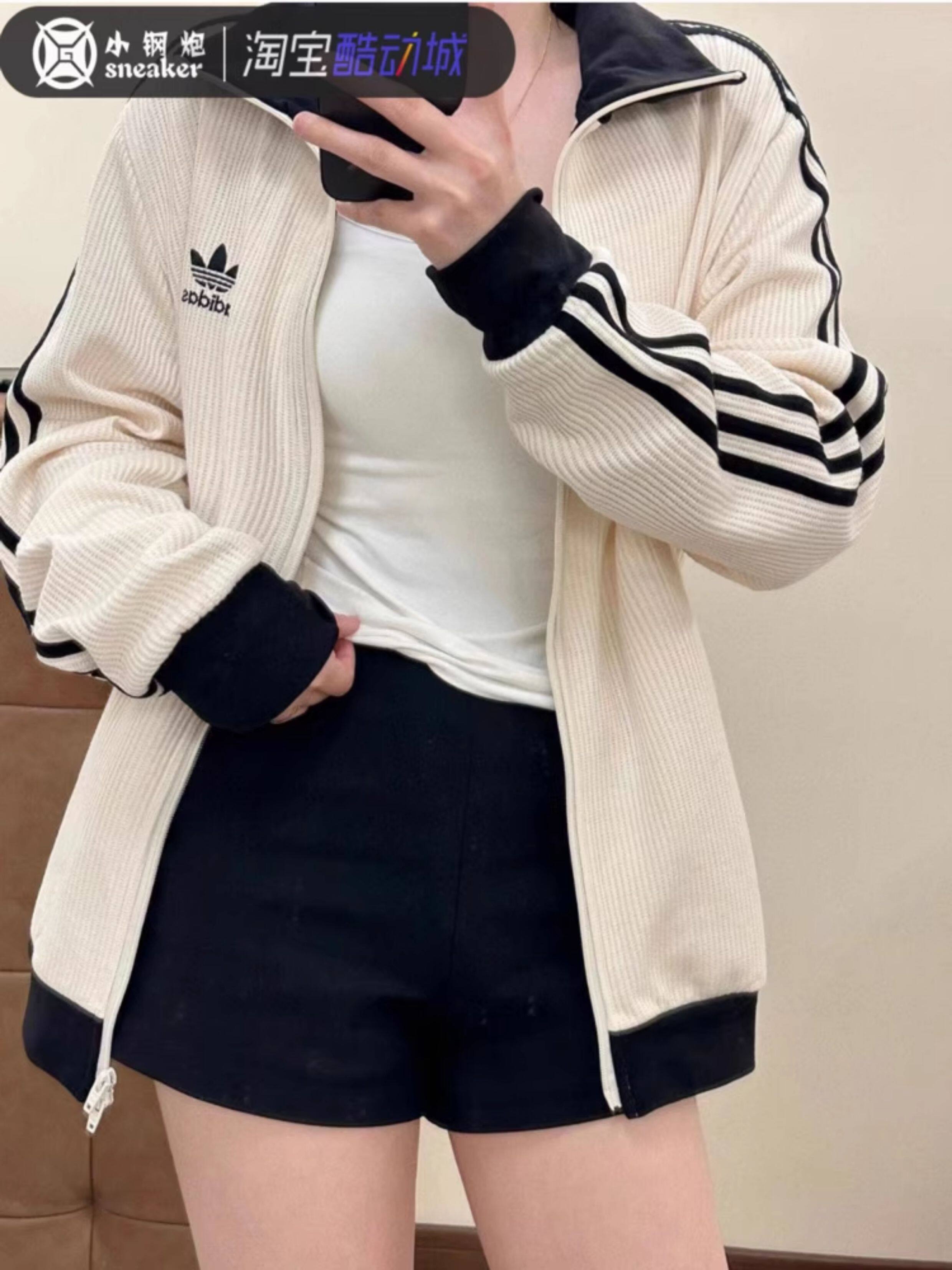 Adidas Trefoil Three-Stripe Waffle Retro Jacket Autumn Unisex Coat Jw0110 Jw0109