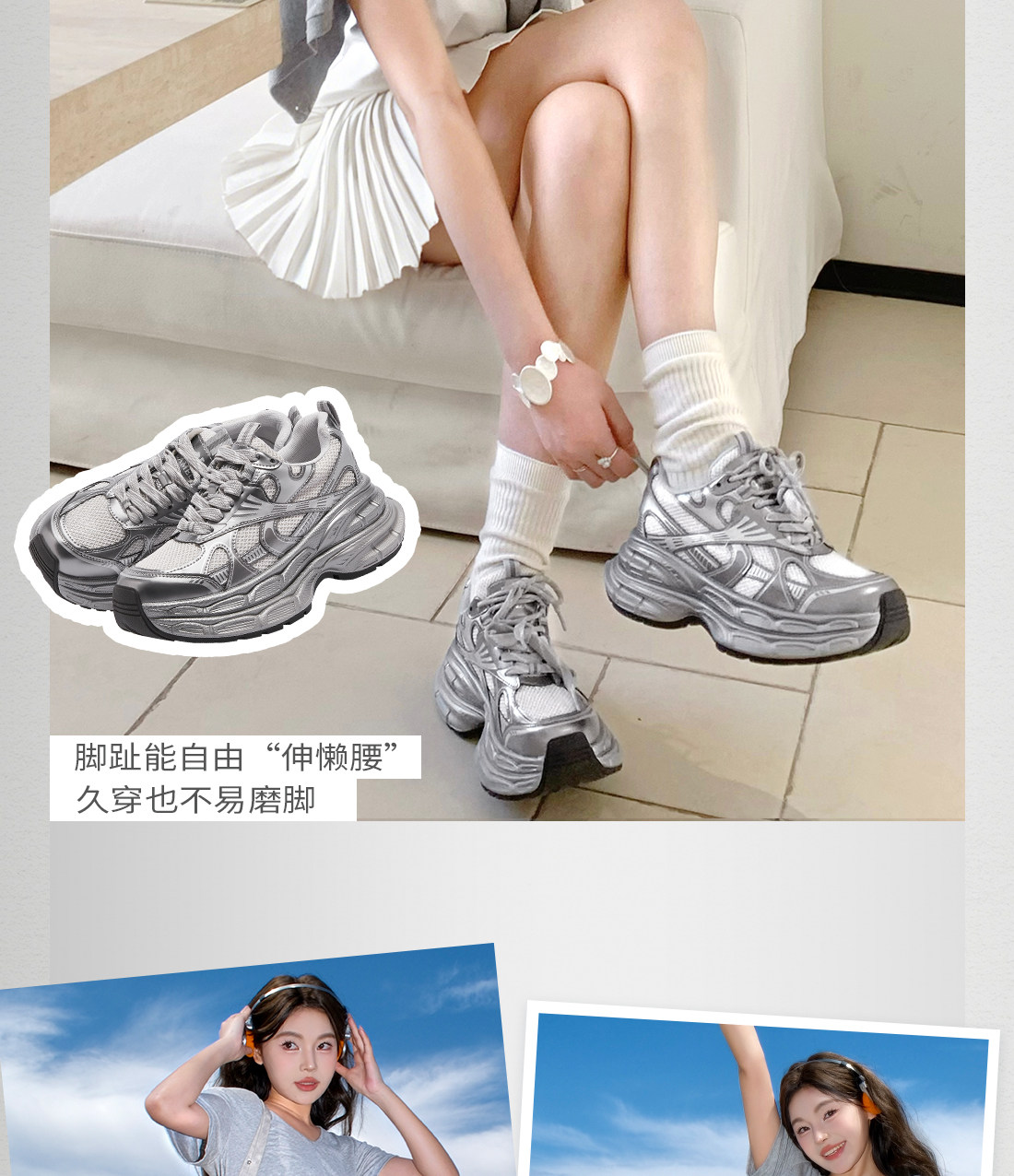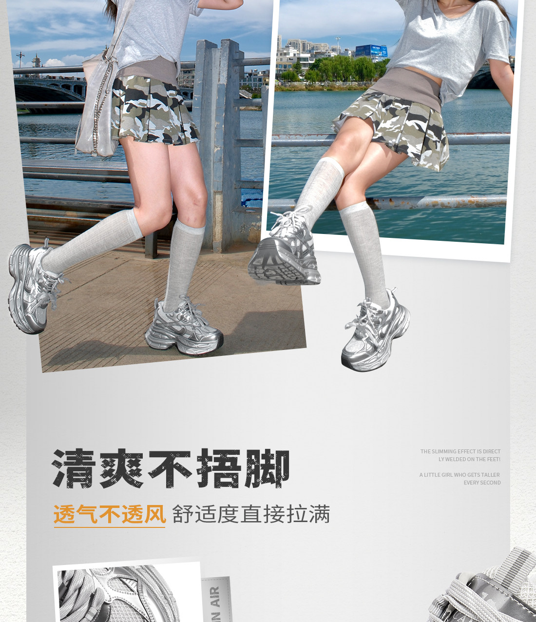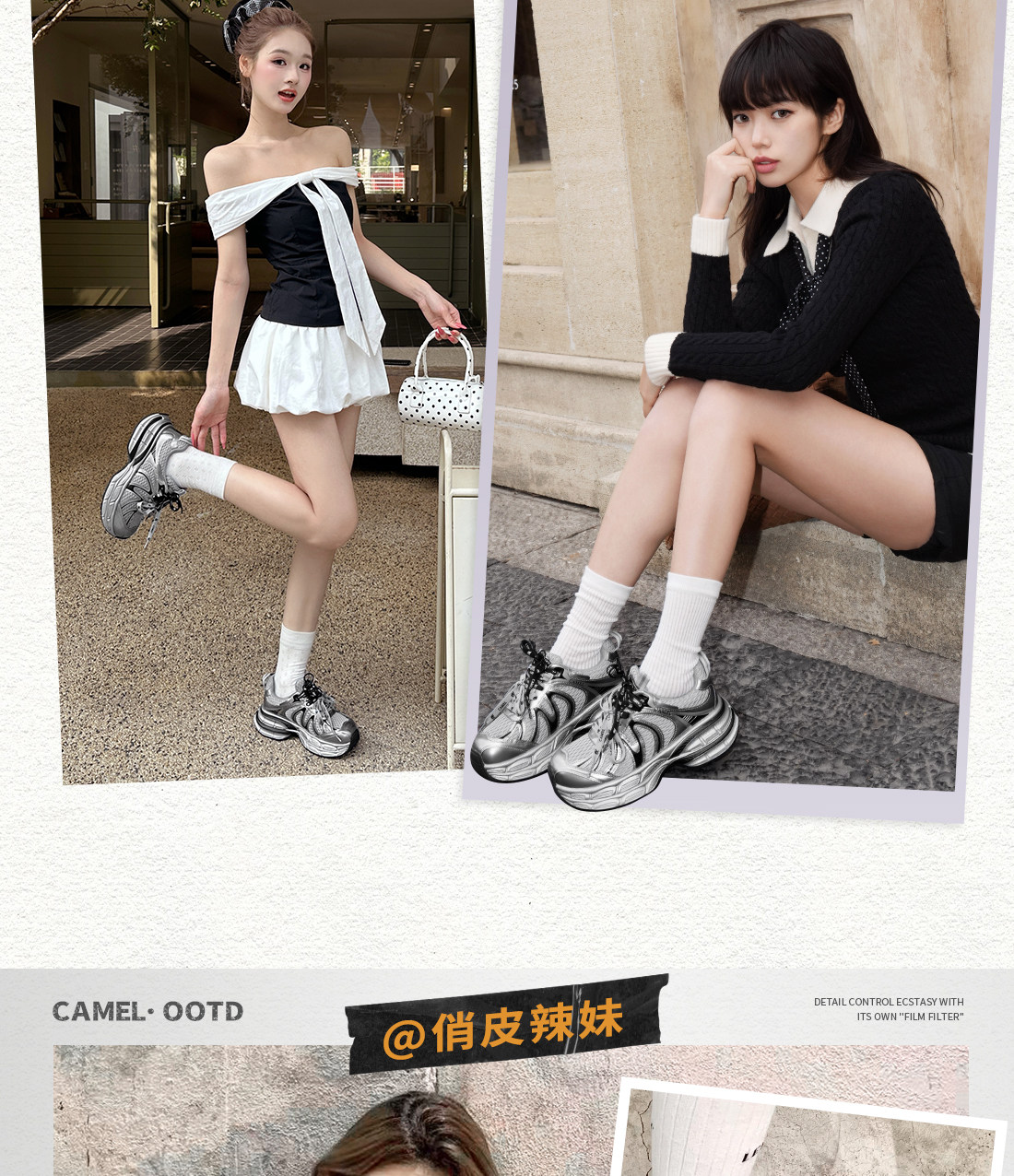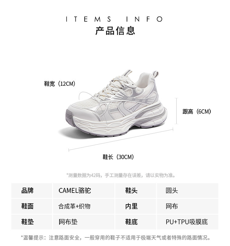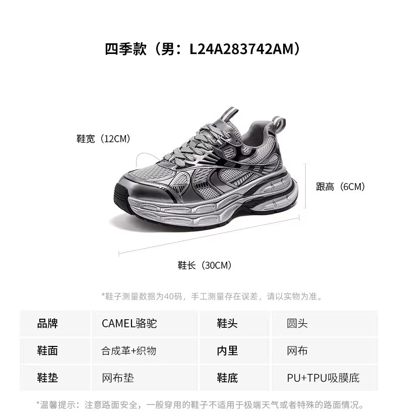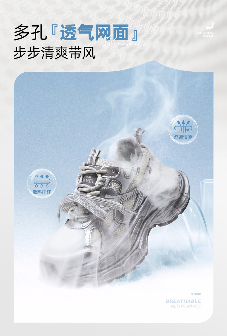 [Same Style as Dilraba] Camel Silver Moon Dad Shoes for Women, Thick-Soled Height-Increasing Women's Shoes, New Breathable Sports Shoes