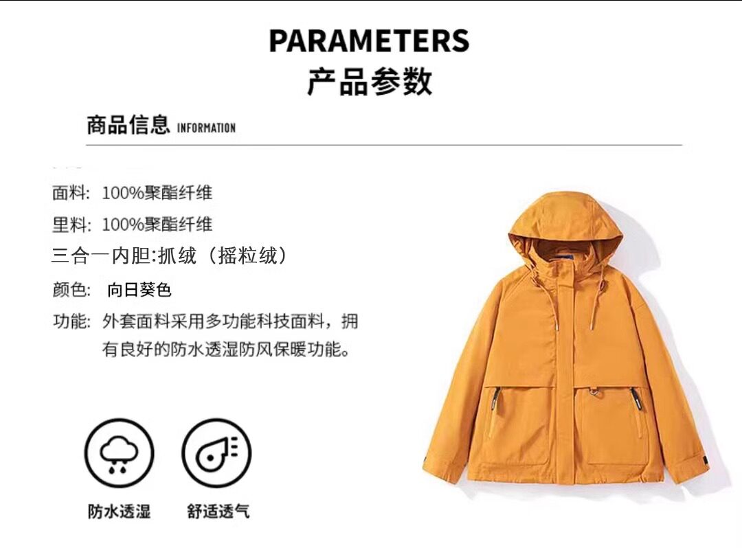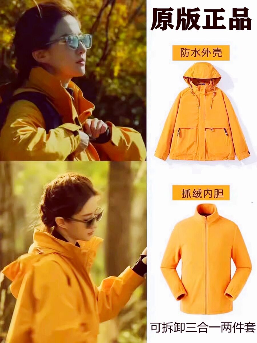 Authentic Liu Yifei and Huang Yimei Same Style Hiking Jacket, Lightweight, Water-Repellent, Three-In-One Windproof Outdoor Jacket for Women