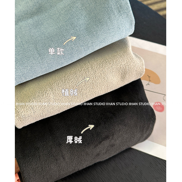 怀旧浅蓝加绒:92%棉 3.5%聚酯纤维 2.5%粘胶纤维 2%氨纶