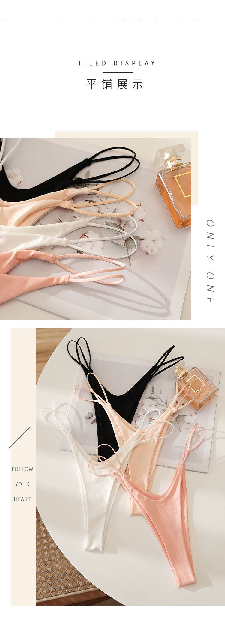 Cinoon American Style Low-Waist Sexy High-Slit Thong with Thin Straps, Fashionable Solid Color Seamless Hot Women's Thong