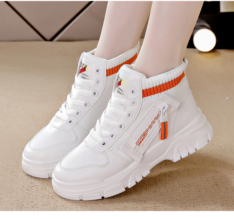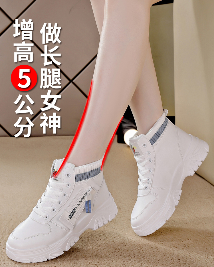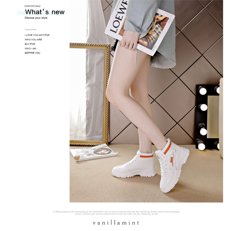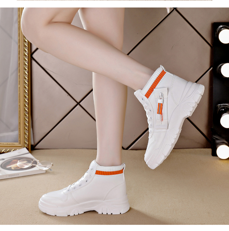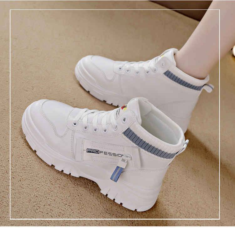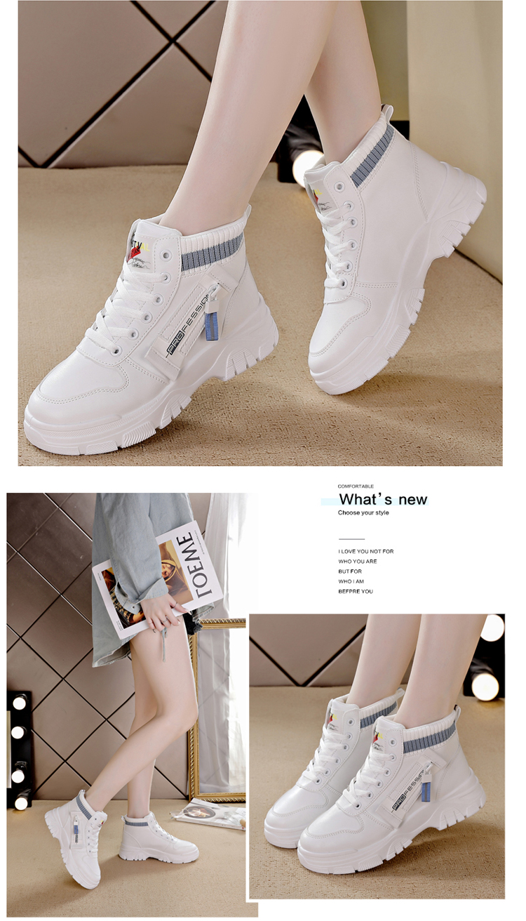 Brand Genuine Leather Women's Sports Shoes 2025 Autumn and Winter New Versatile Thick-Soled Martin Boots Non-Slip Travel High-Top White Shoes