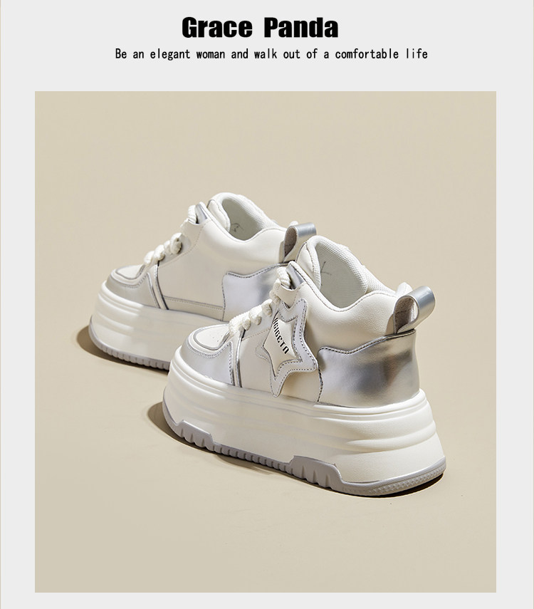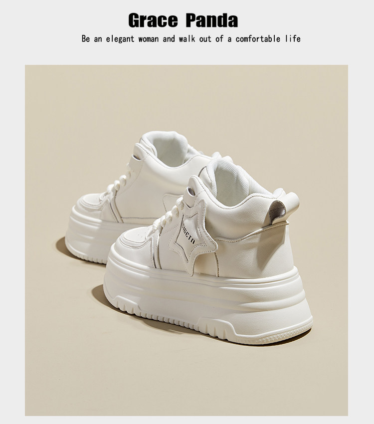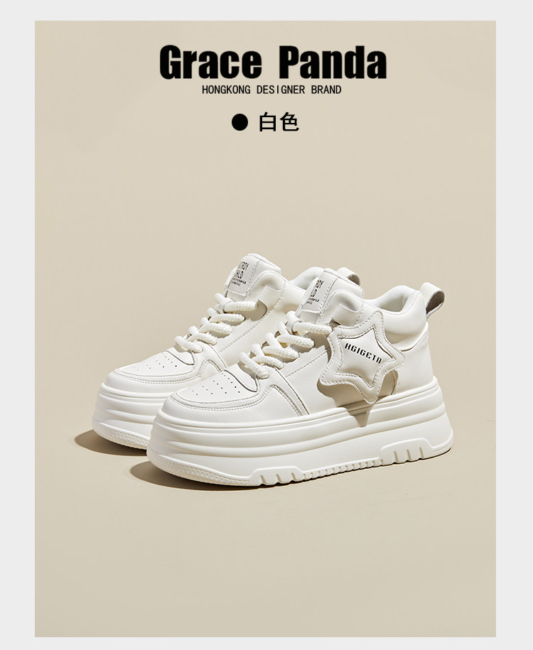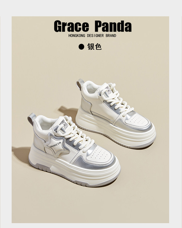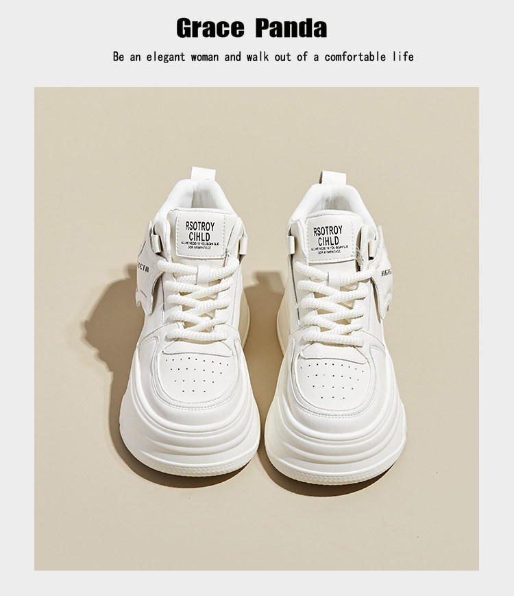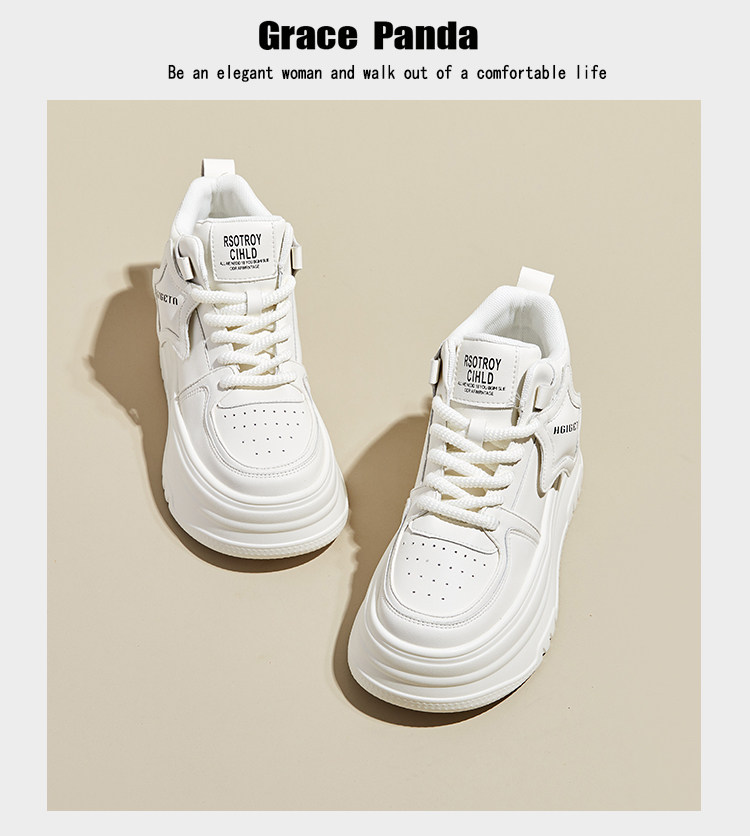 Hong Kong Gp2025 New Autumn and Winter Genuine Leather Small-Sized Sneakers with Thick Soles and 9cm Internal Height Increase, High-Top White Shoes for Women