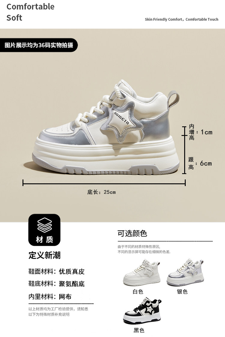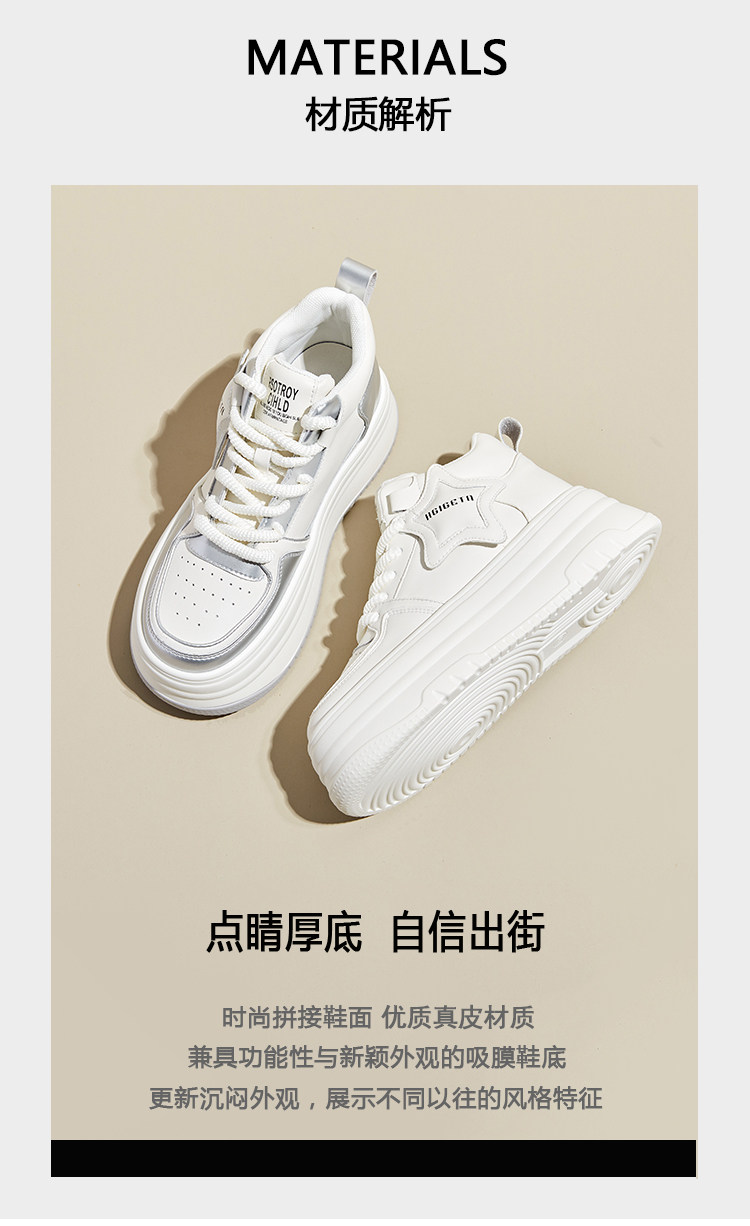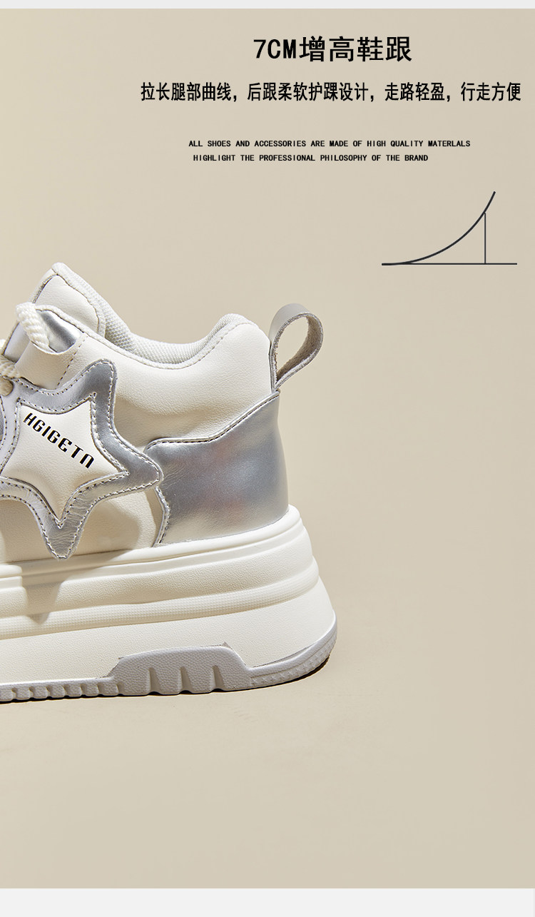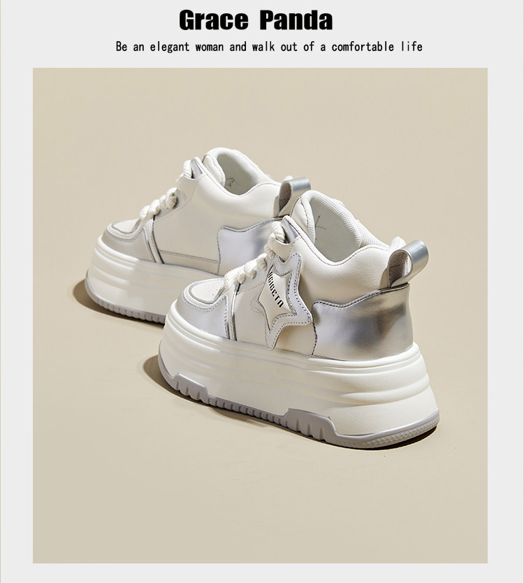 Hong Kong Gp2025 New Autumn and Winter Genuine Leather Small-Sized Sneakers with Thick Soles and 9cm Internal Height Increase, High-Top White Shoes for Women