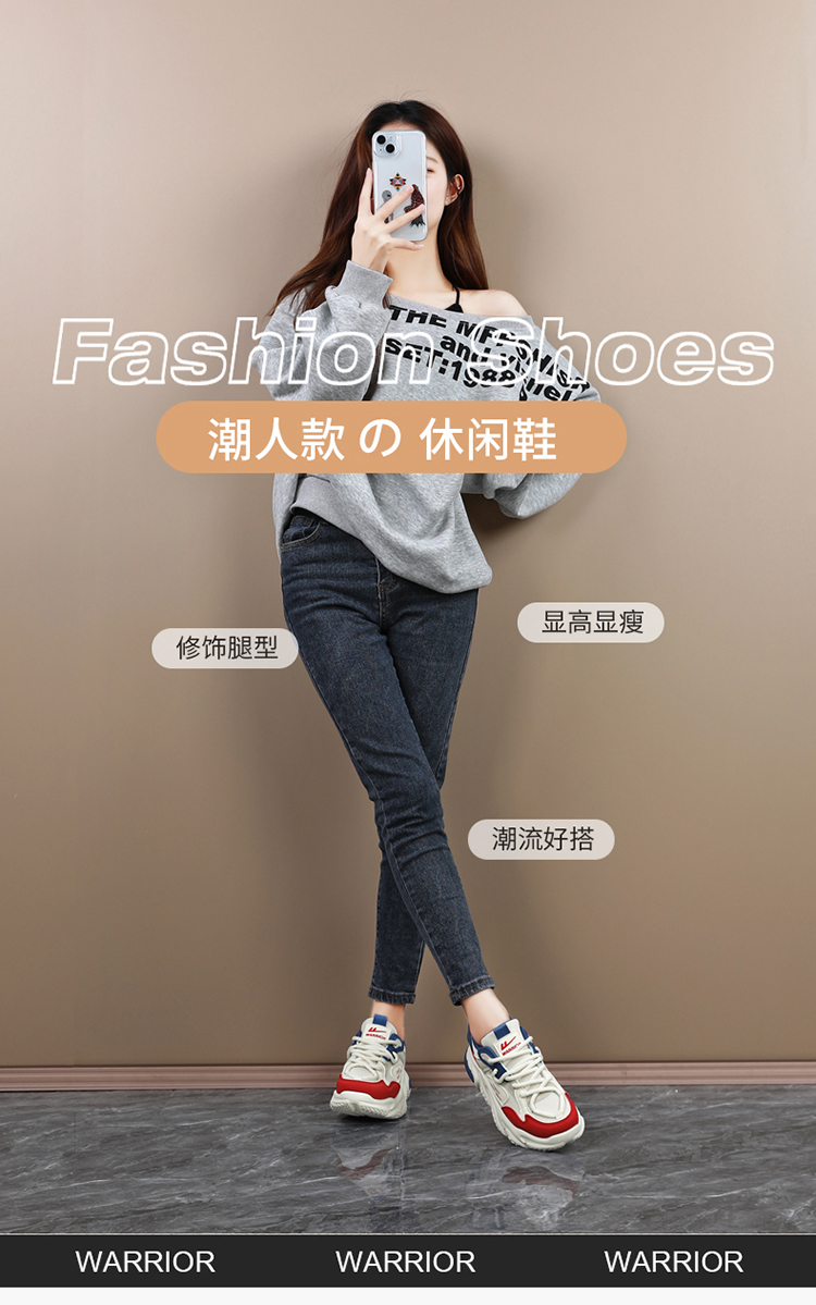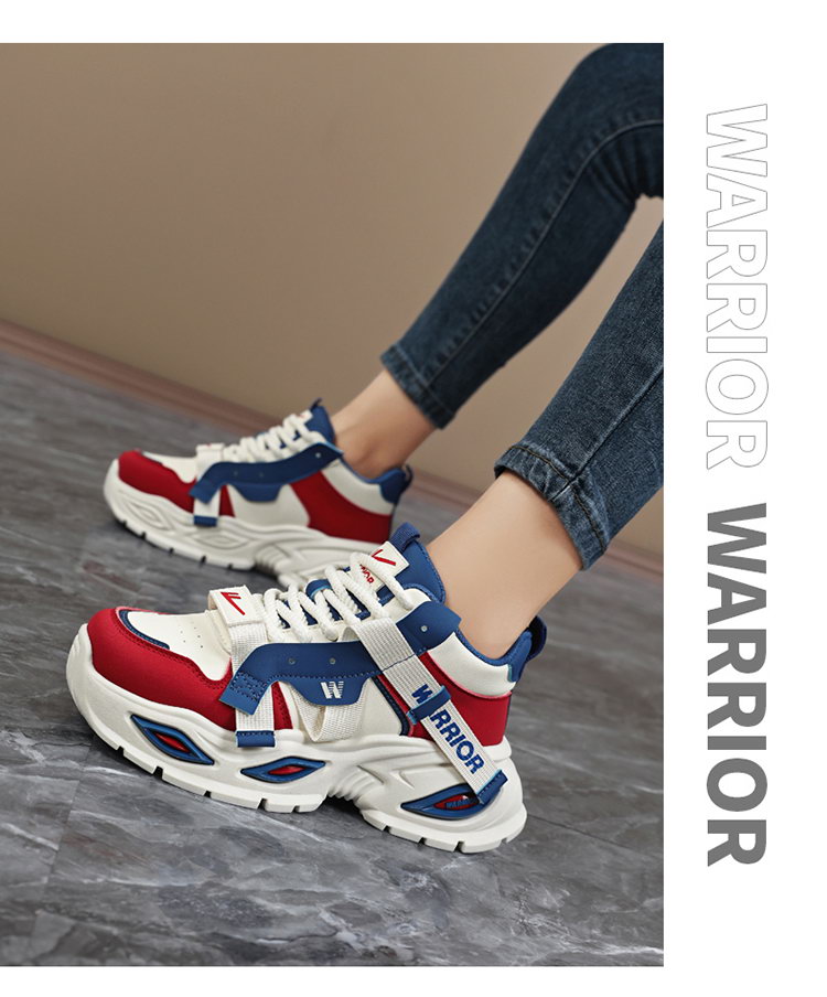Warrior Women's Shoes 2025 Winter New Style Dad Shoes Thick-Soled Height-Increasing Sneakers High-Top Sports Shoes with Fleece Lining for Women