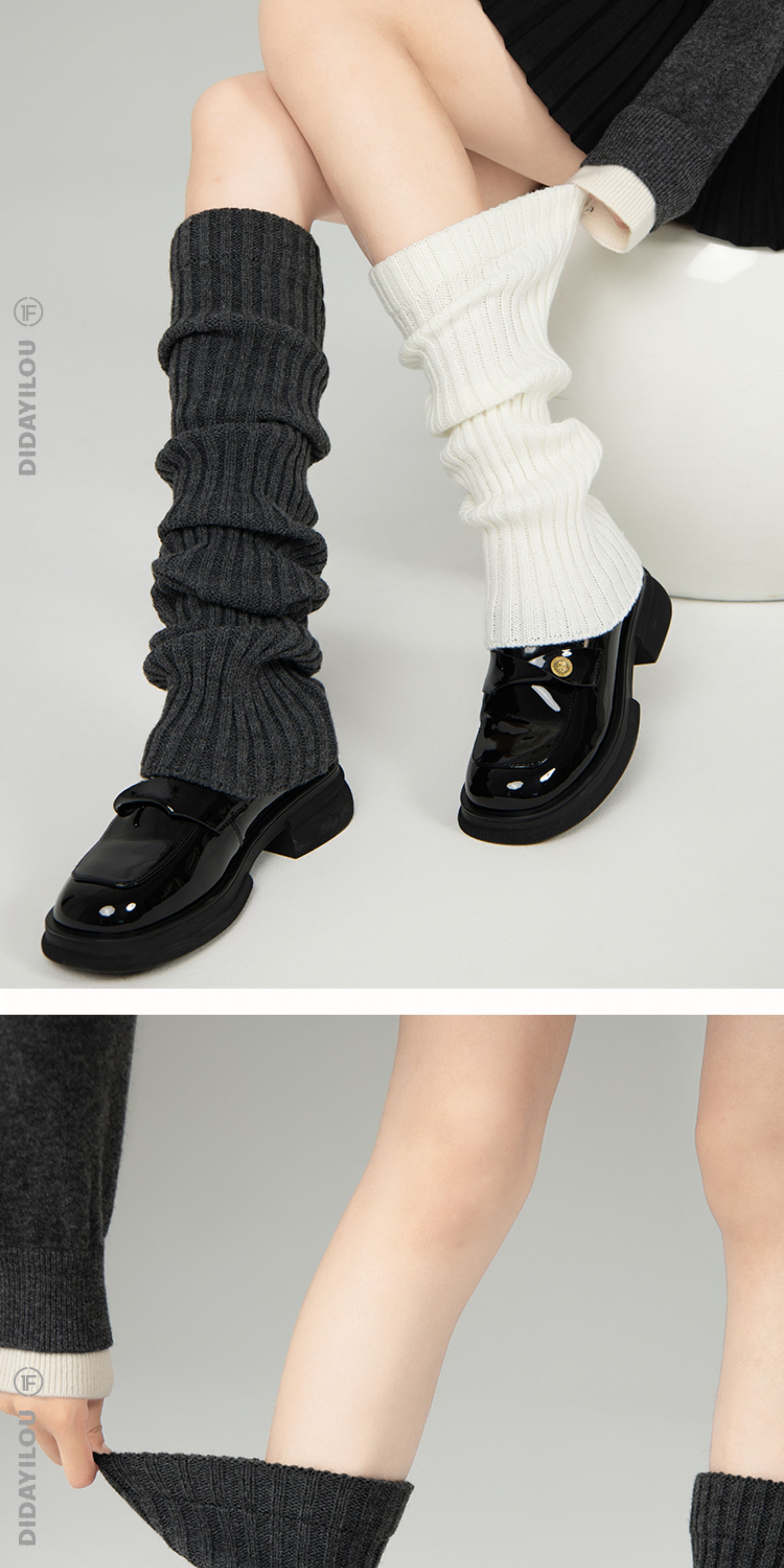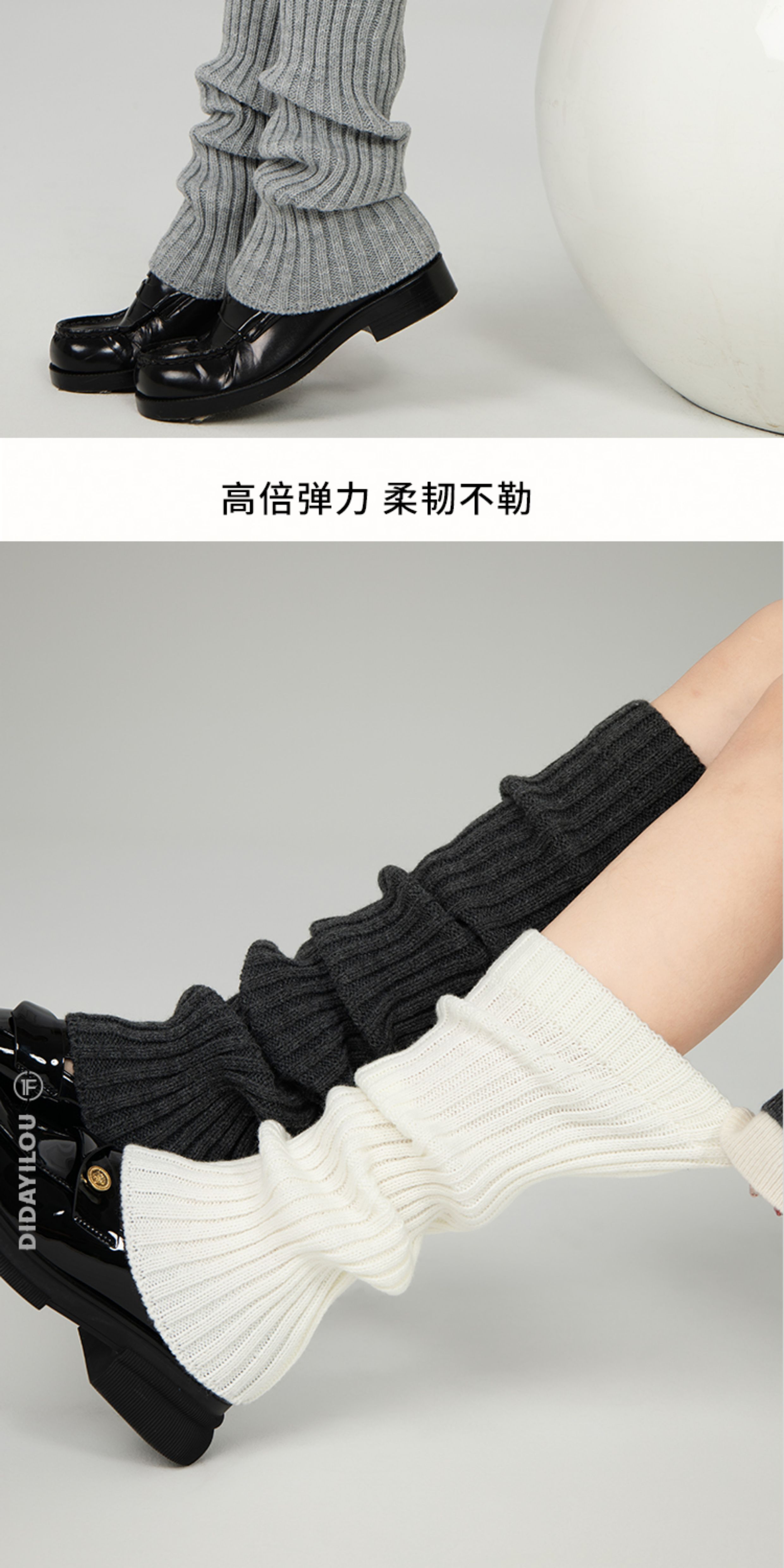 Arriving at the First Floor, Milky White Knitted Bell-Bottom Leg Warmers, Autumn and Winter Jk Sock Covers, Slouch Socks, Japanese Y2K Style, Leg Shaping