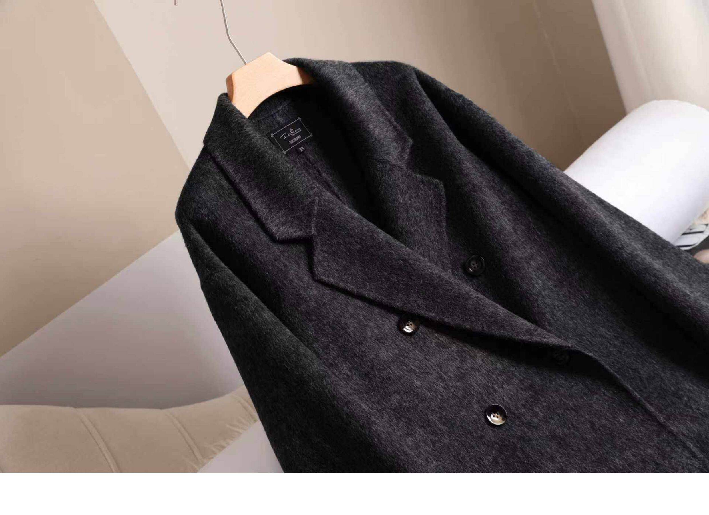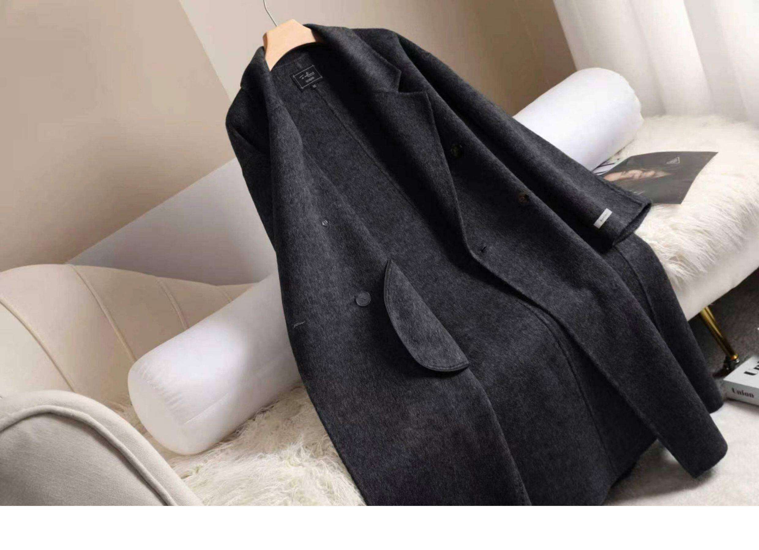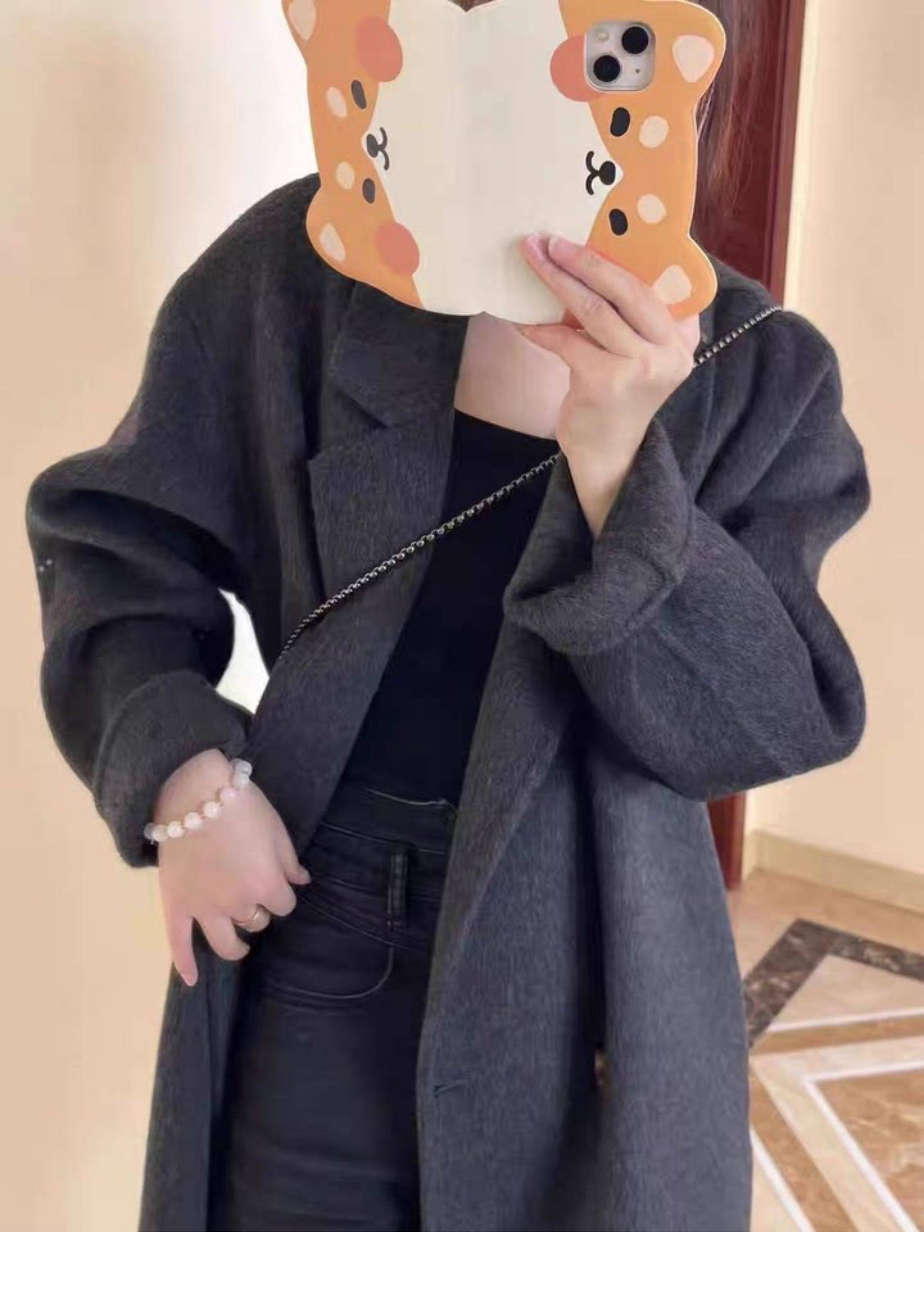 Double-Sided Cashmere Outwear for Women 2025 Autumn and Winter Black and Gray New Korean Style Loose Mid-Length Classy Woolen Outwear
