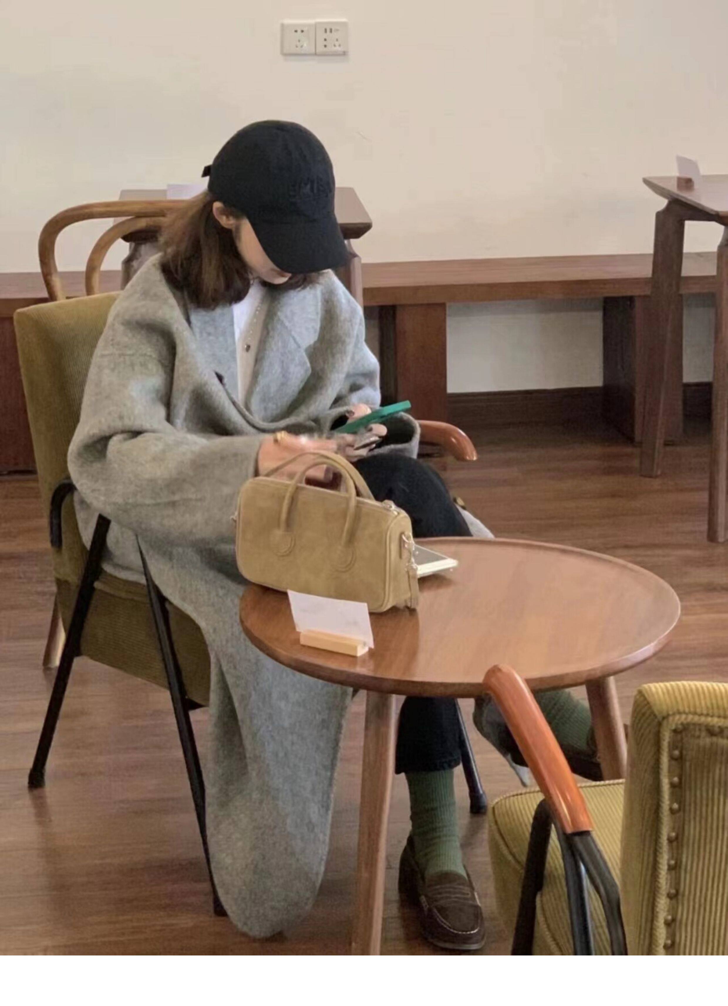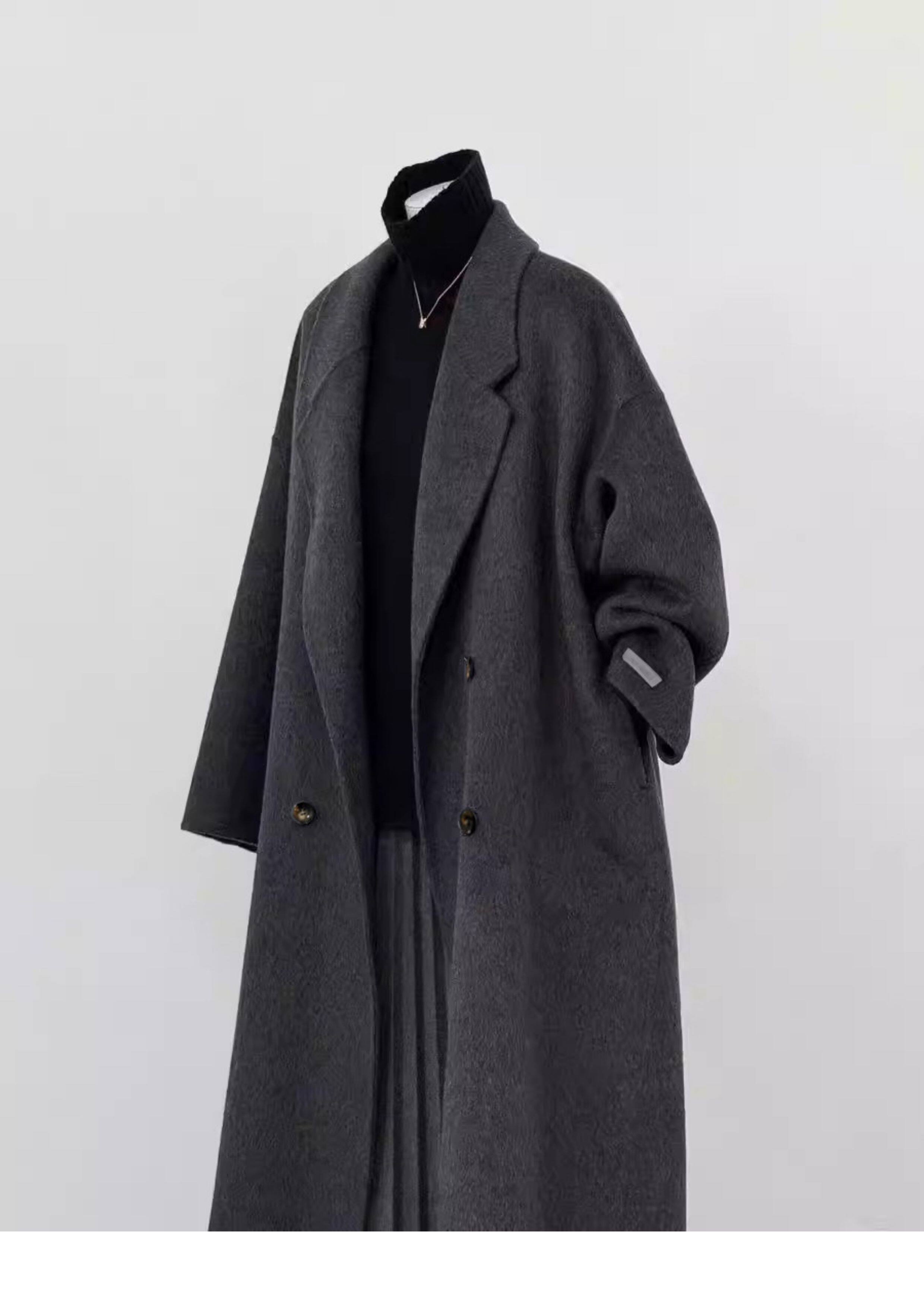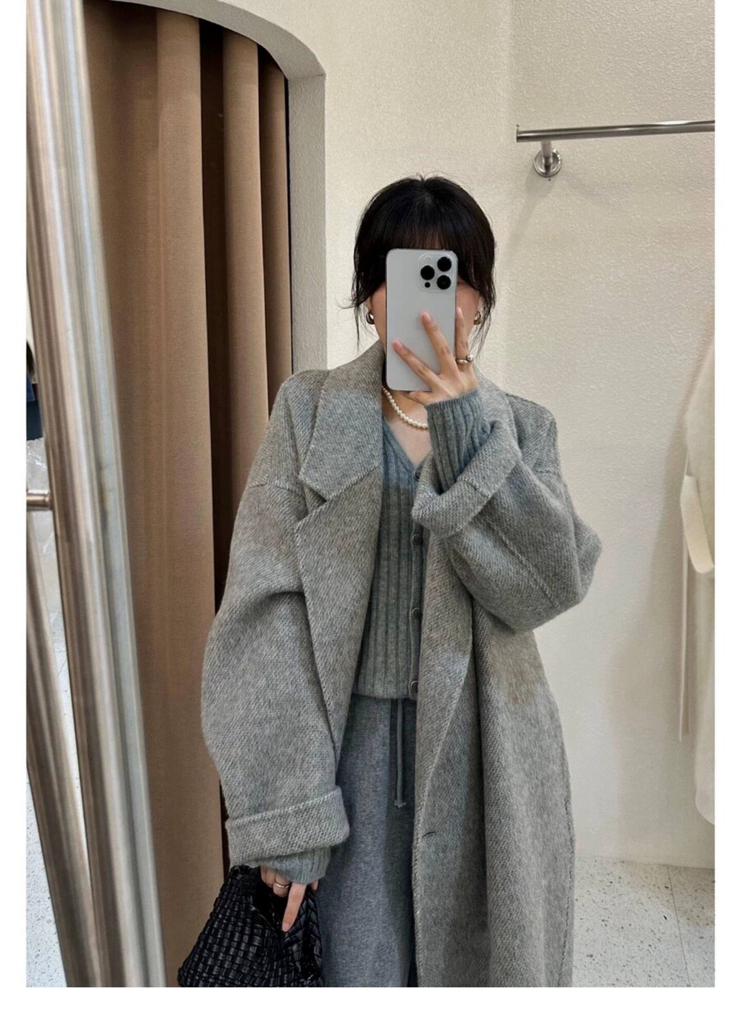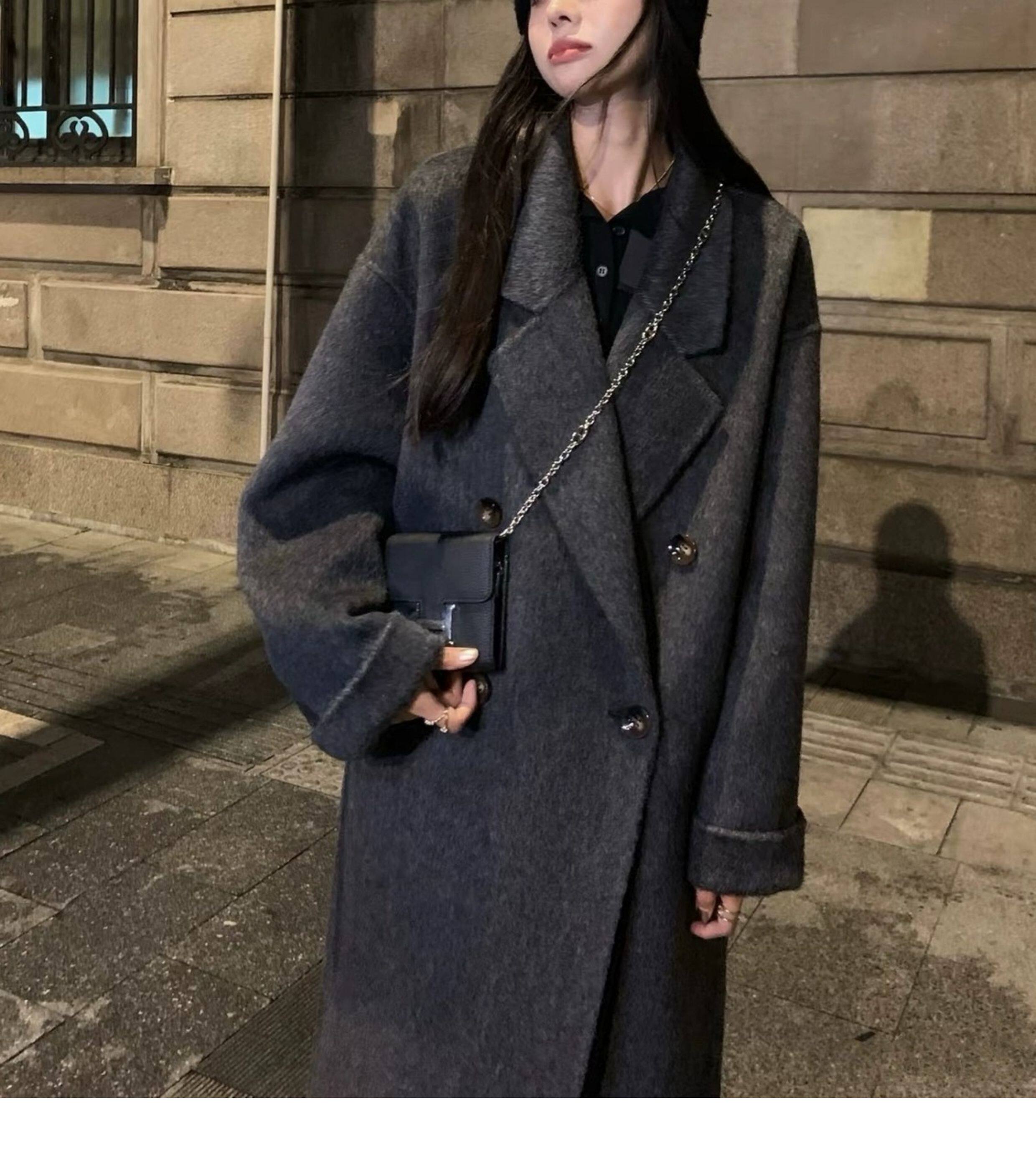 Double-Sided Cashmere Outwear for Women 2025 Autumn and Winter Black and Gray New Korean Style Loose Mid-Length Classy Woolen Outwear
