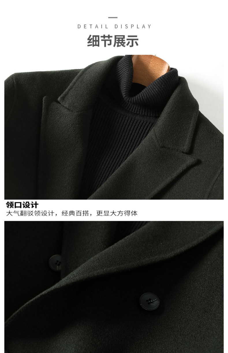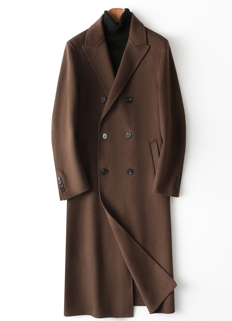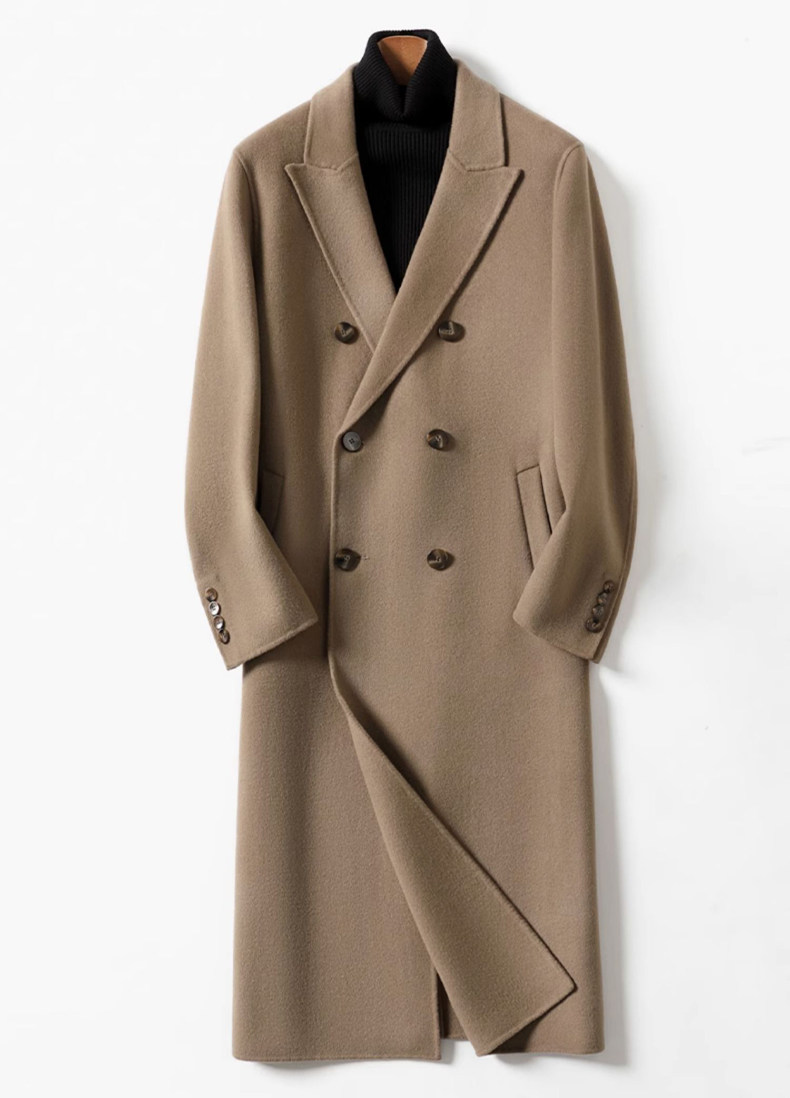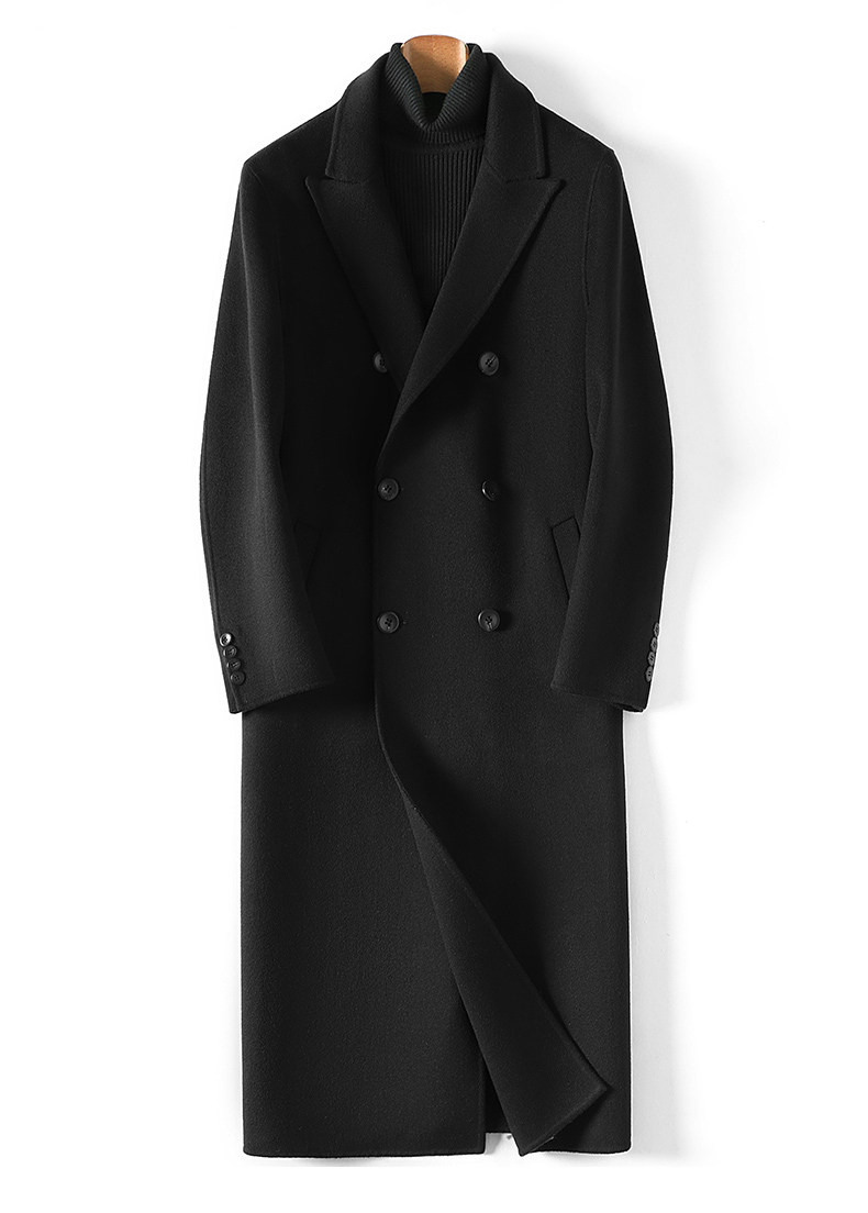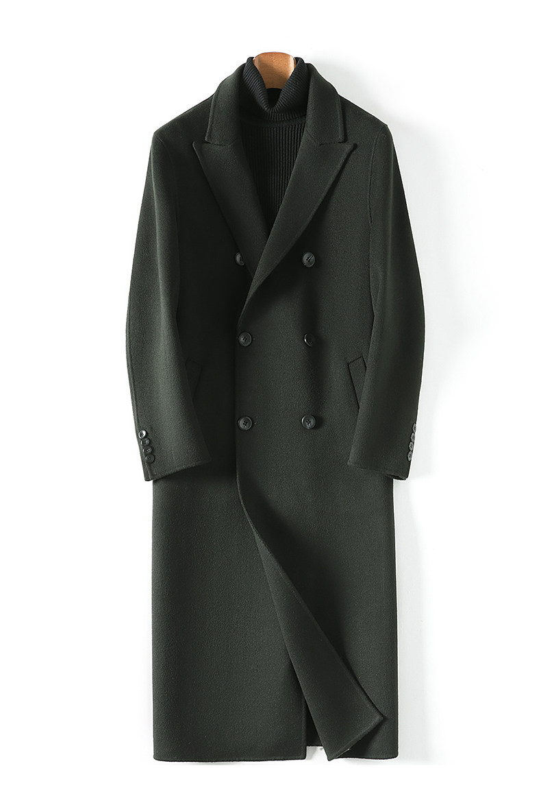 Mylosen Autumn and Winter Double-Sided Cashmere Coat for Men, Long 100% Wool Double-Breasted Woolen Trench Coat, Thickened