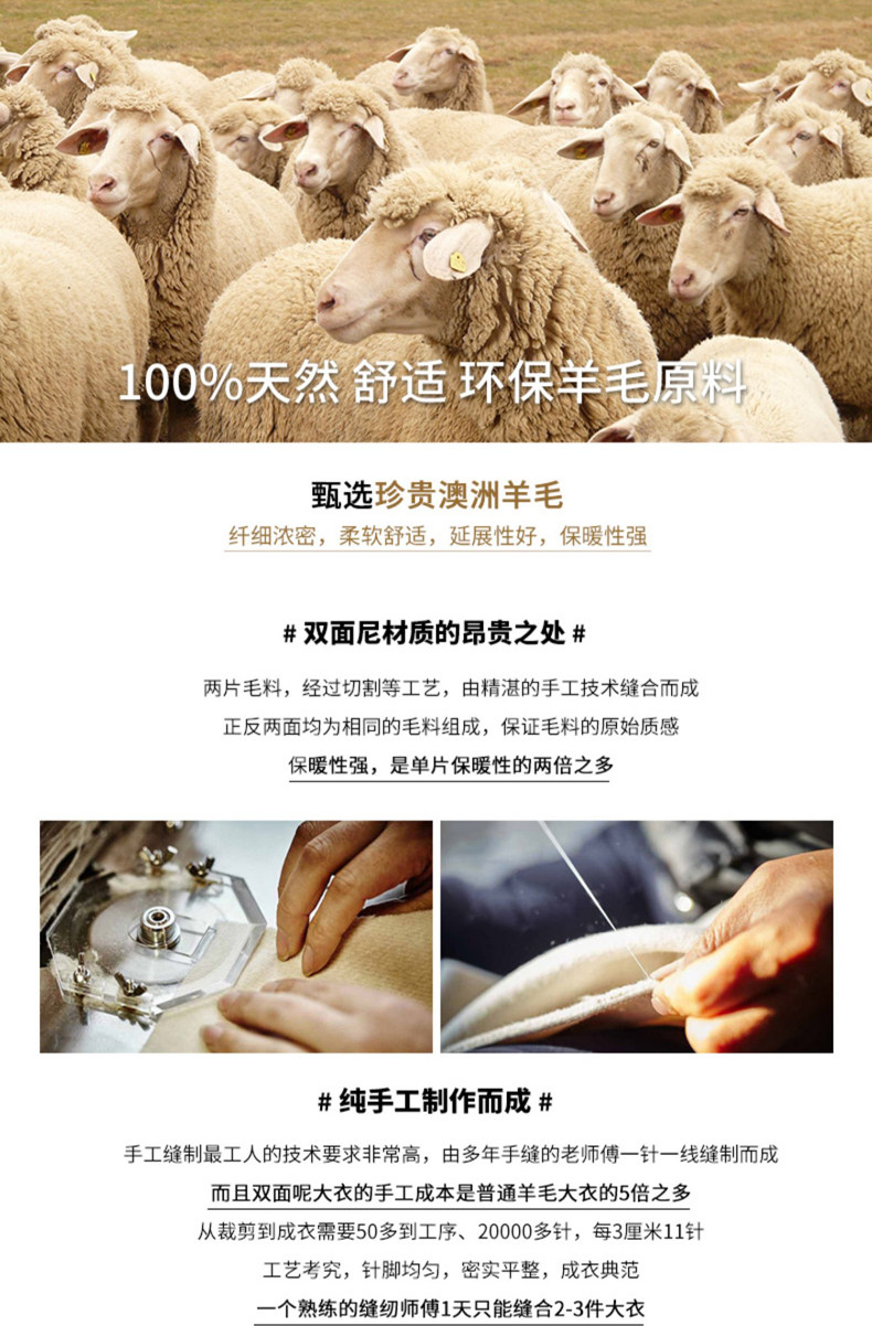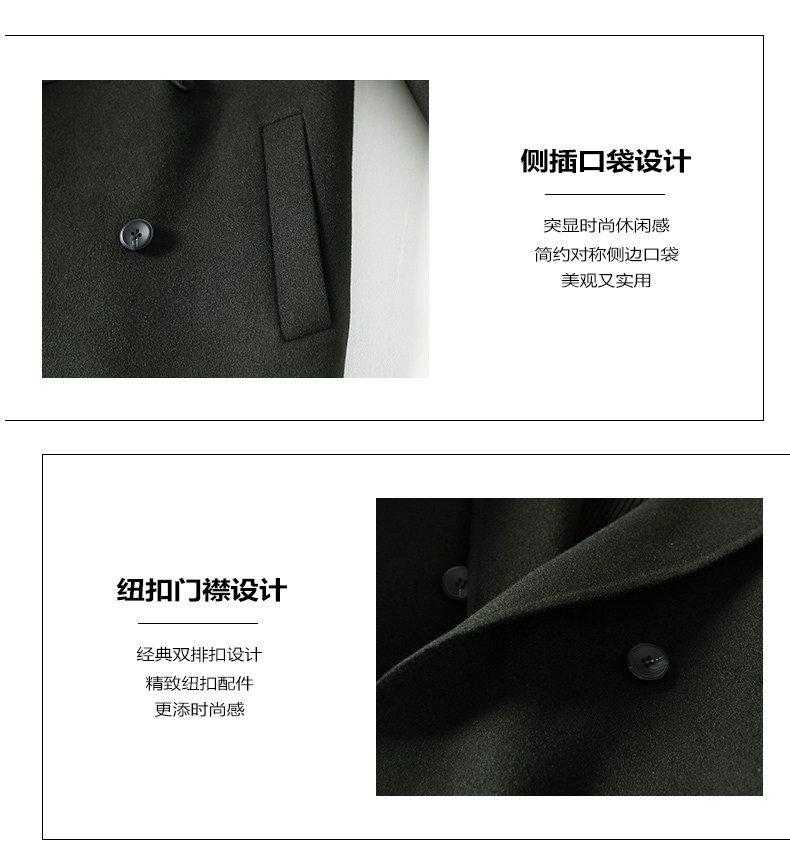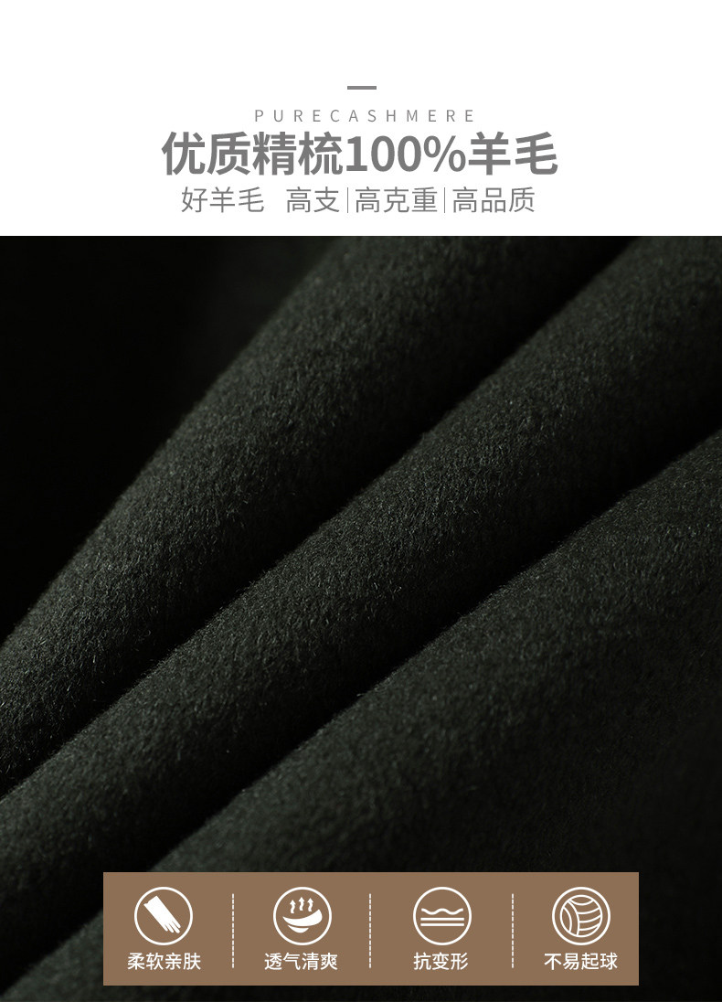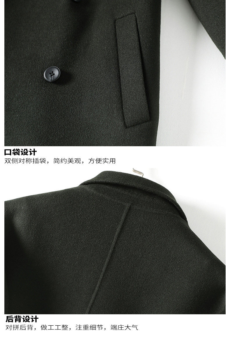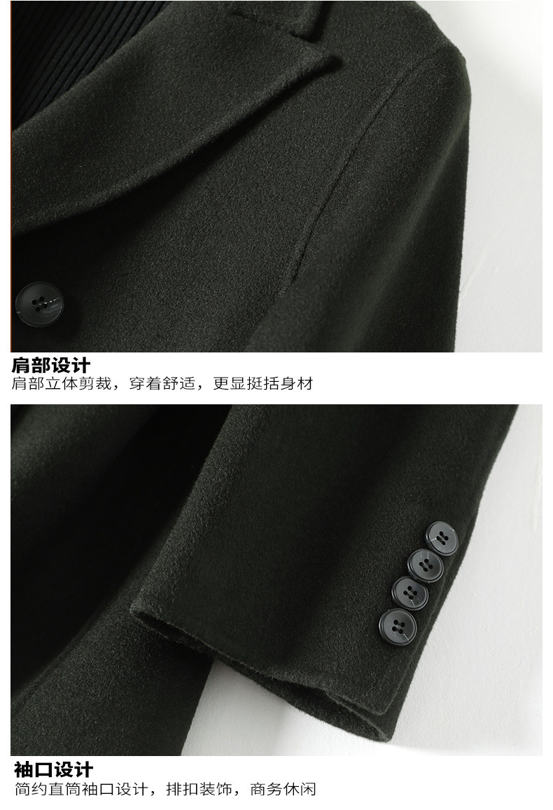 Mylosen Autumn and Winter Double-Sided Cashmere Coat for Men, Long 100% Wool Double-Breasted Woolen Trench Coat, Thickened