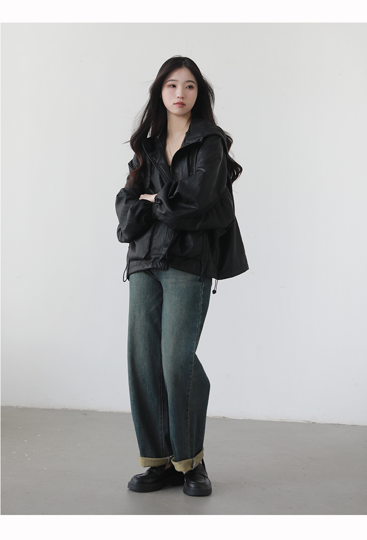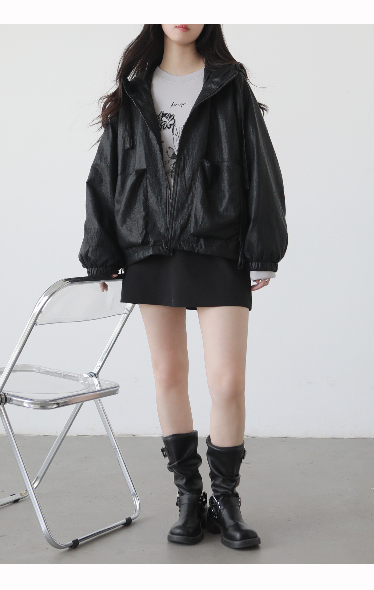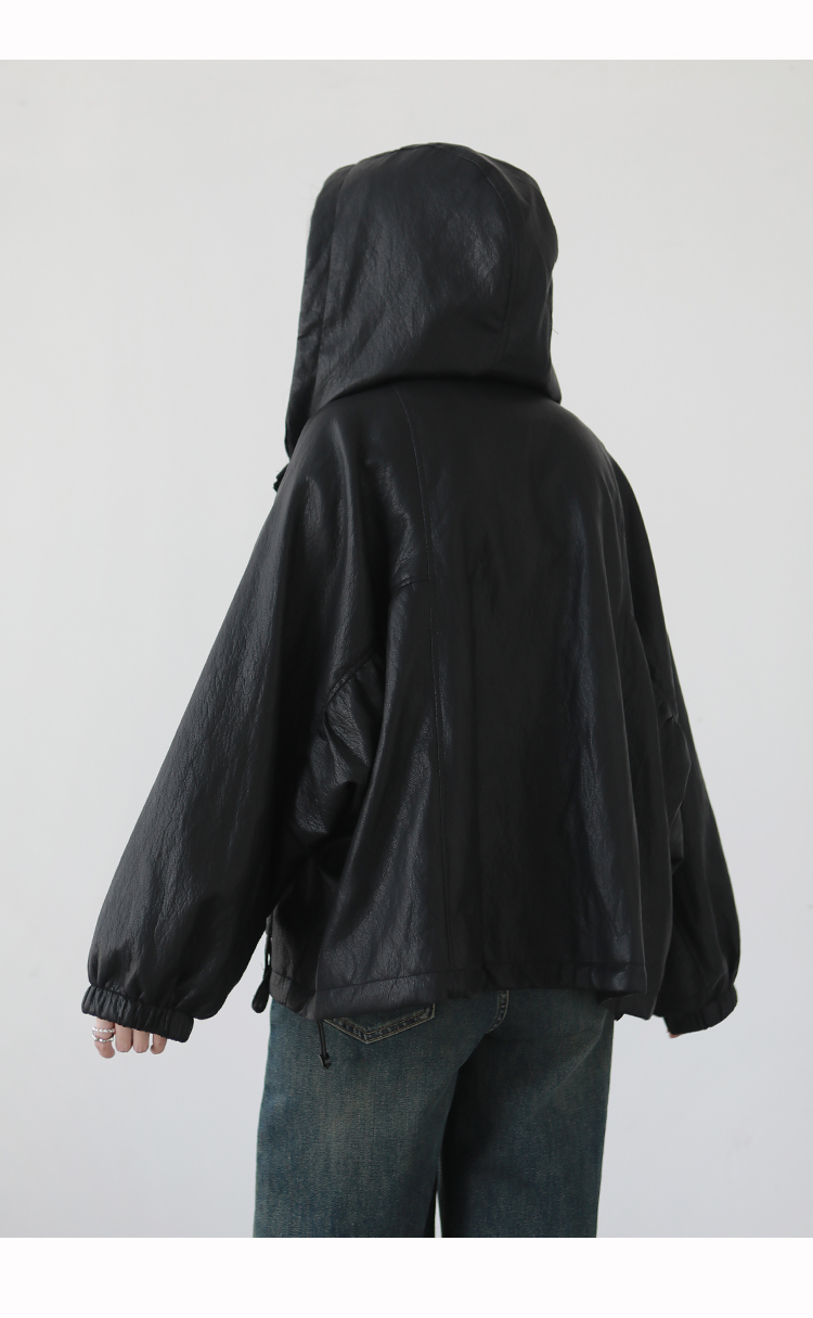 Stylish Plus-Size Casual Hooded Leather Jacket 2025 Autumn and Winter Loose Versatile Short down Jacket