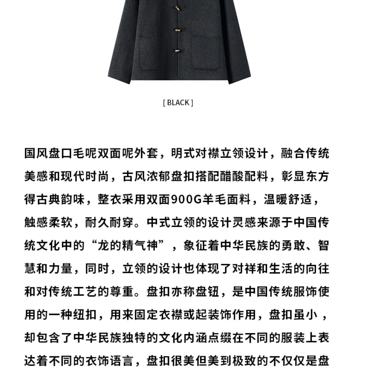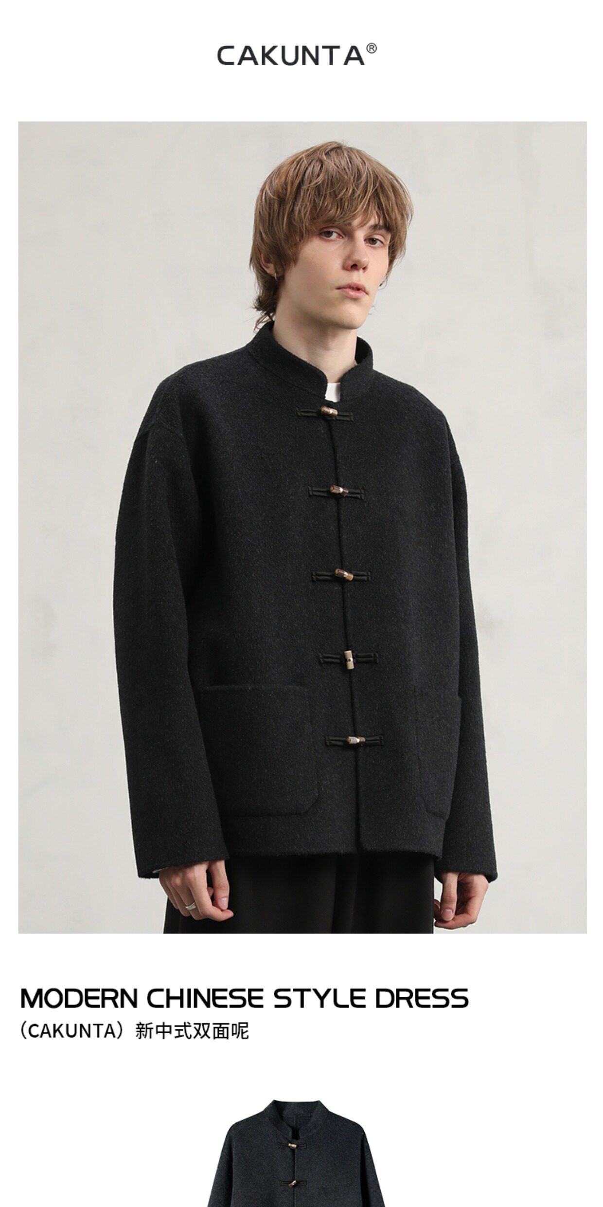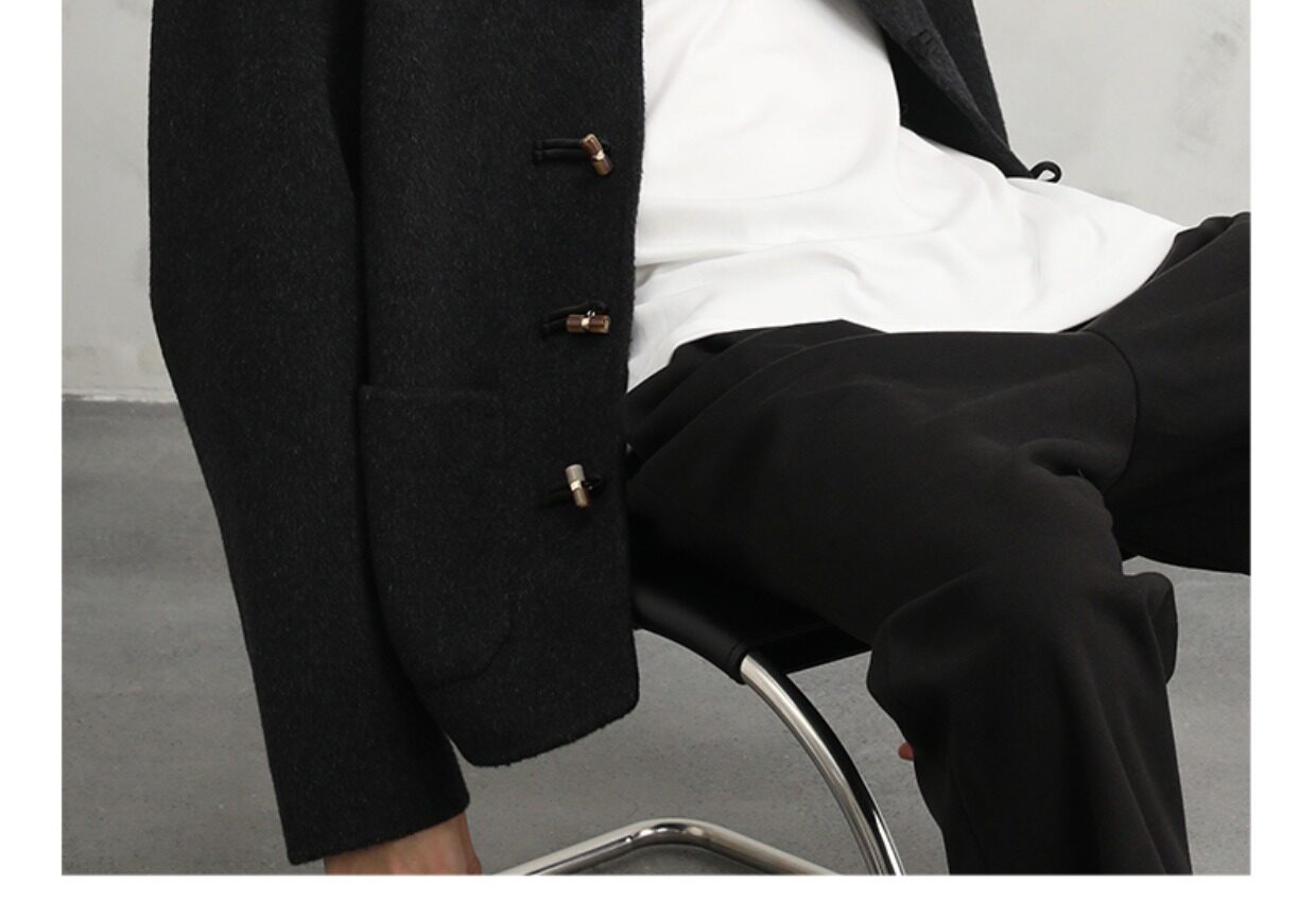 Cakunta New Chinese Style National Style Jade Button Tencel Wool Double-Sided Woolen Coat Elegant Commuting
