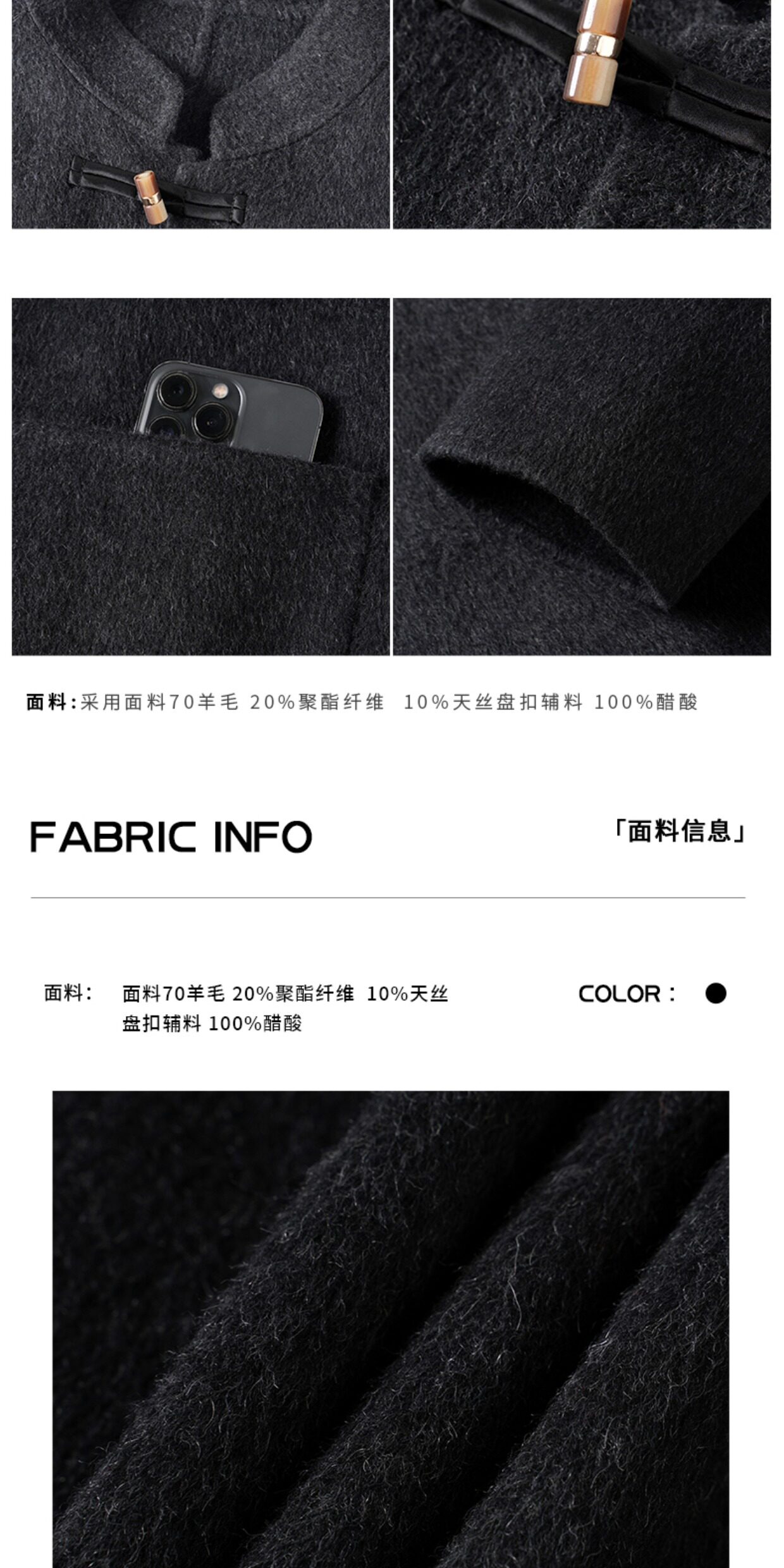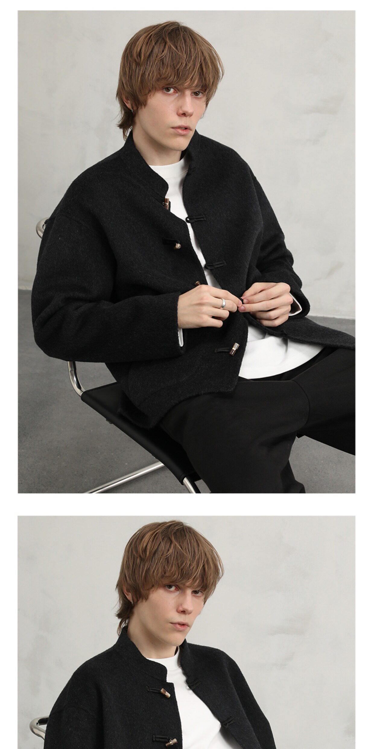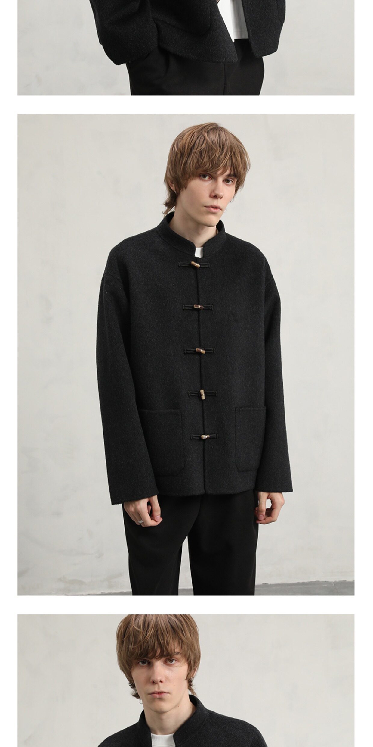 Cakunta New Chinese Style National Style Jade Button Tencel Wool Double-Sided Woolen Coat Elegant Commuting