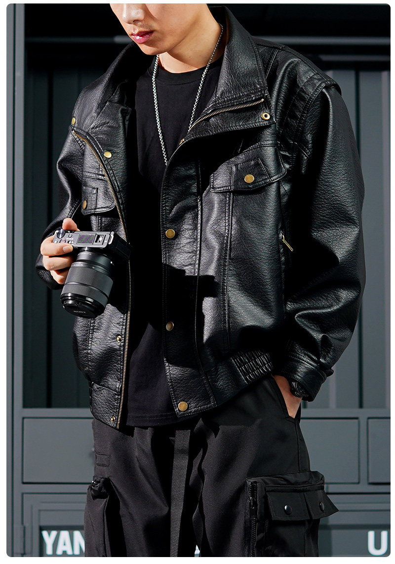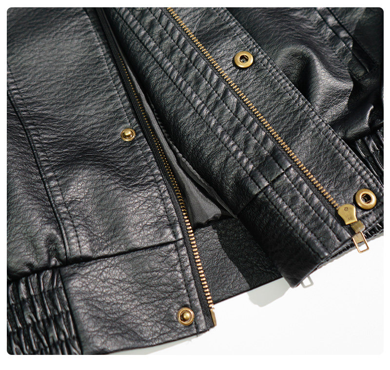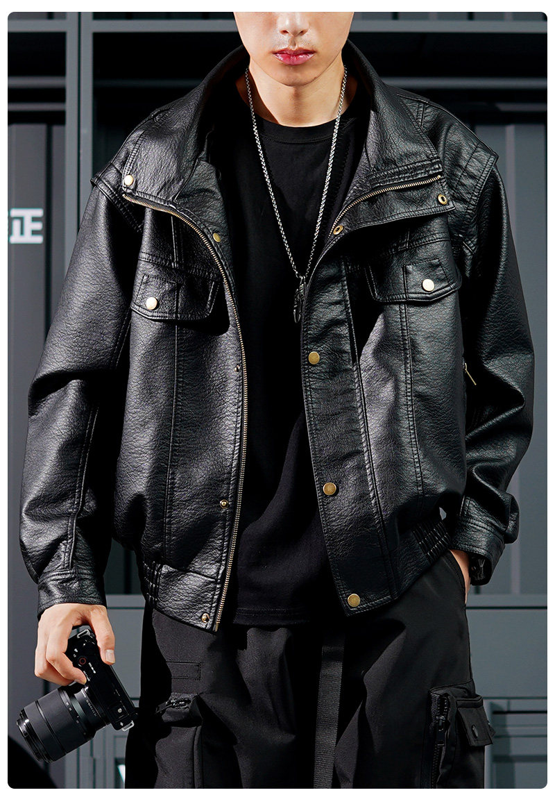 Autumn New Vintage Style Cool Lychee Pattern Motorcycle Leather Jacket for Men, Short High-End Pilot Trendy Jacket
