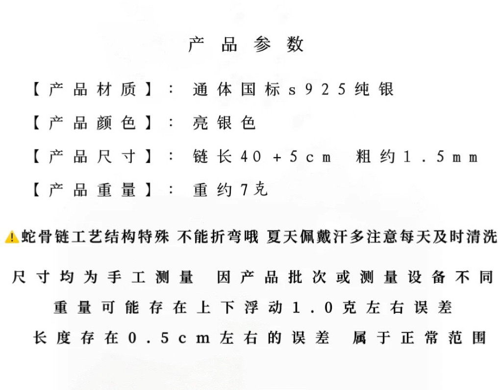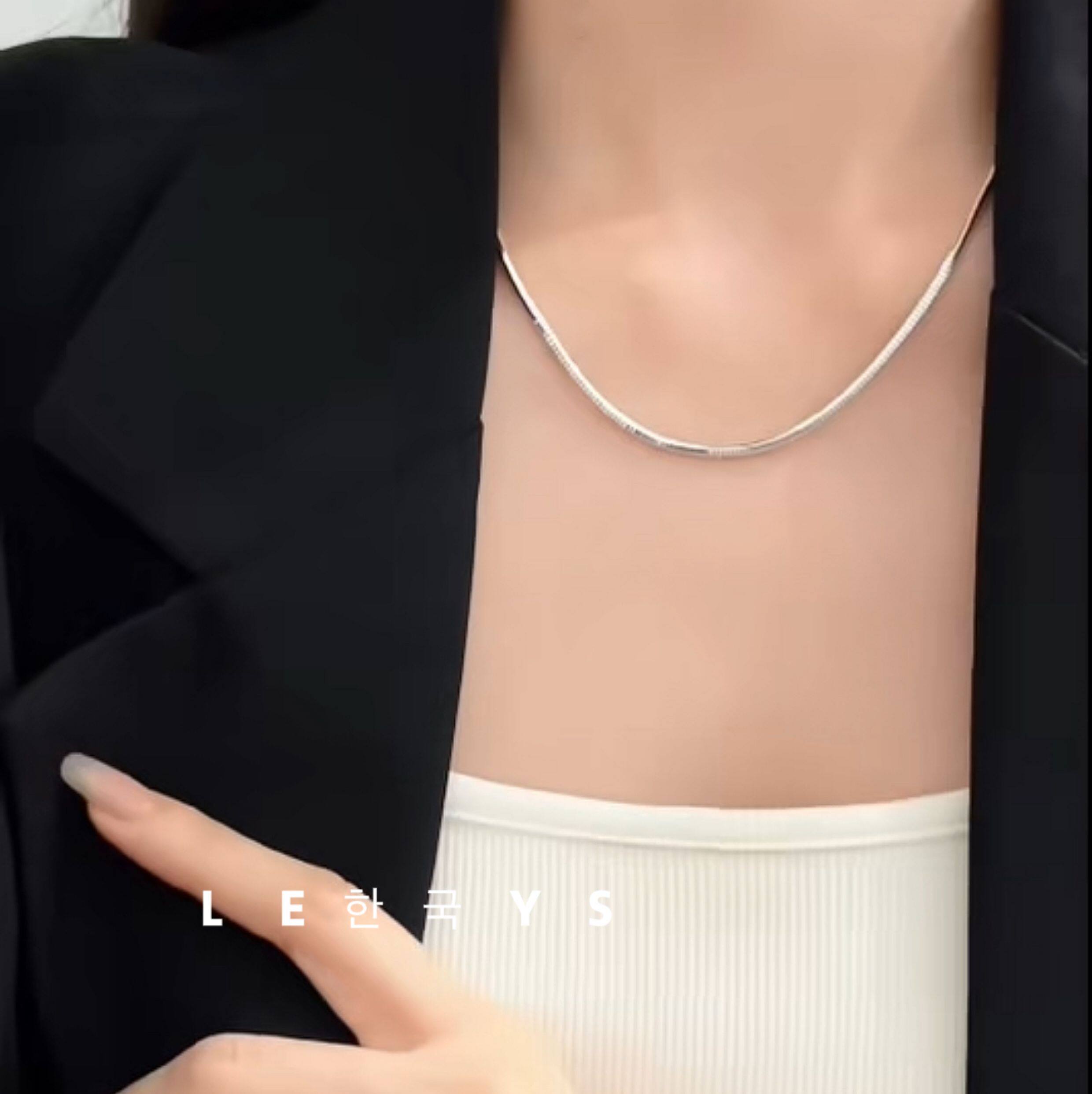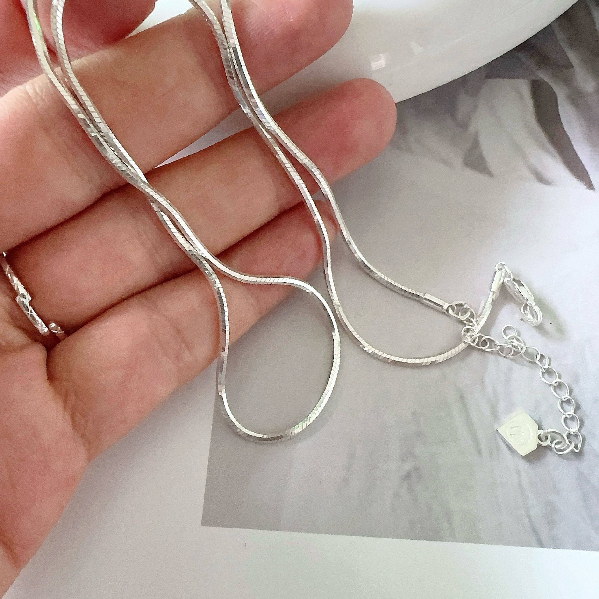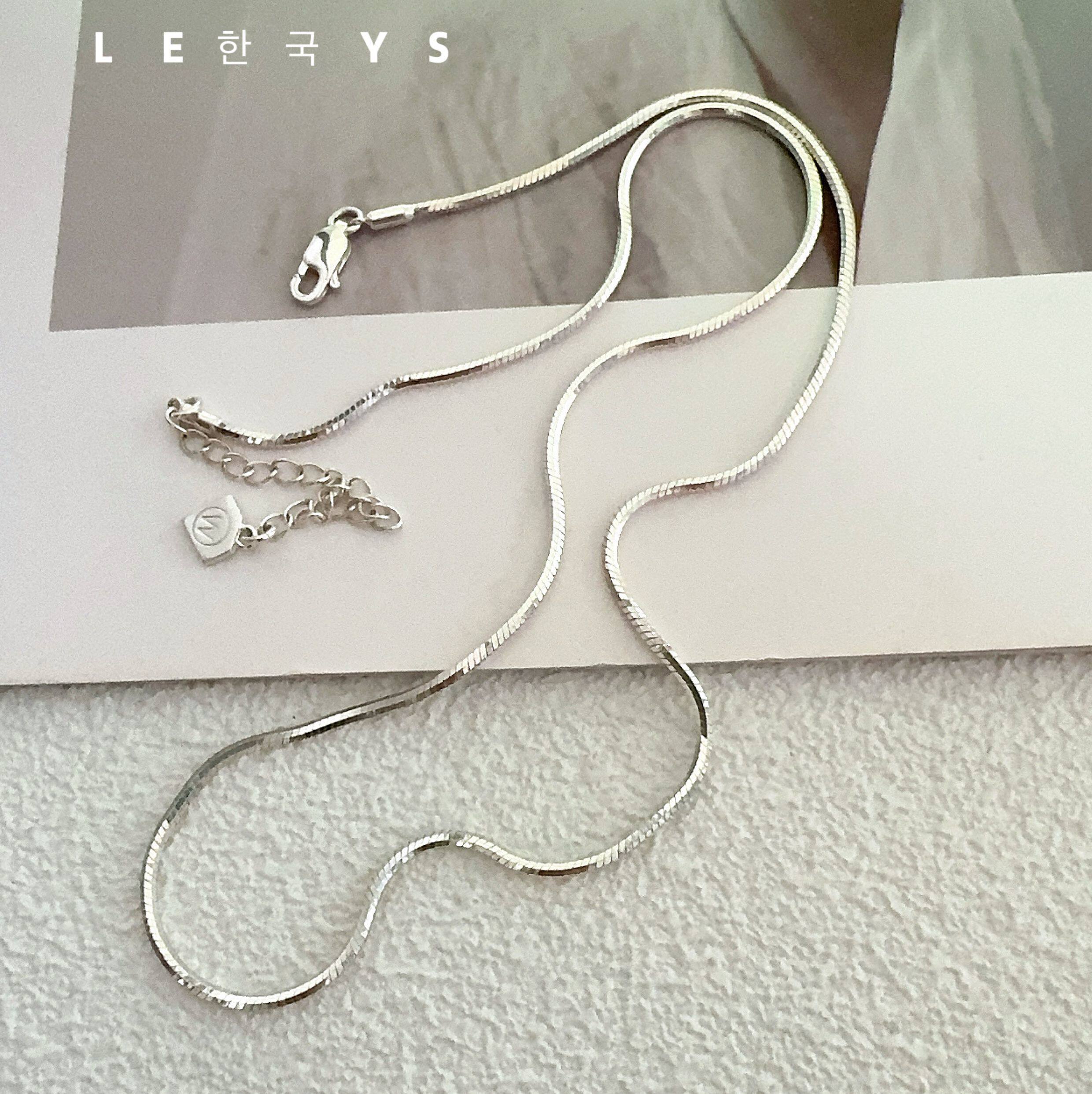 Exquisite Thickened Version S925 Sterling Silver Necklace Octagonal Snake Bone Chain Bare Chain Light Luxury Basic Versatile Clavicle Chain Plain Chain