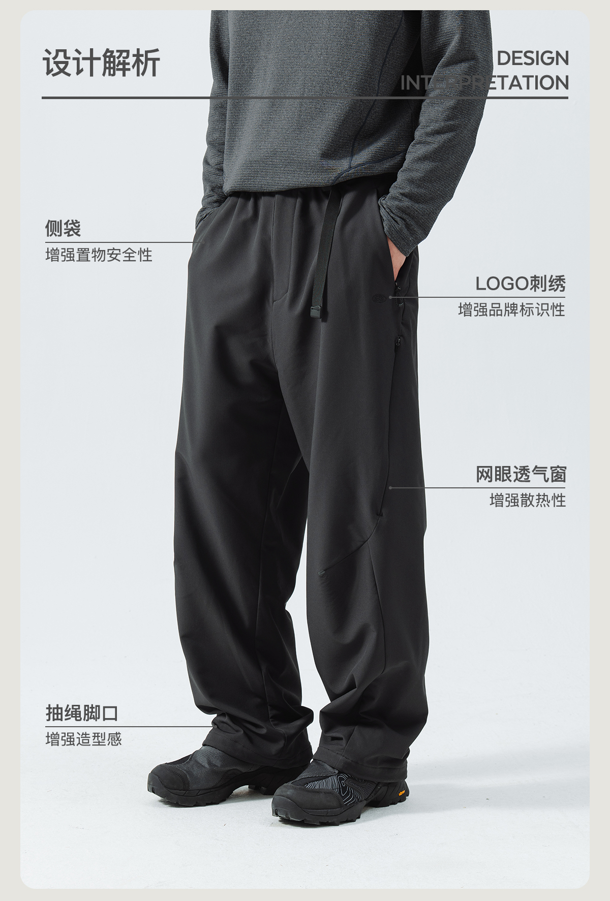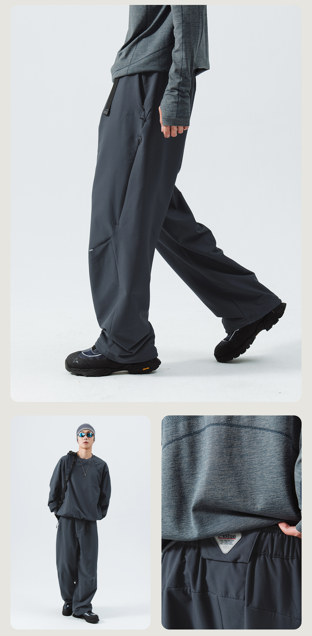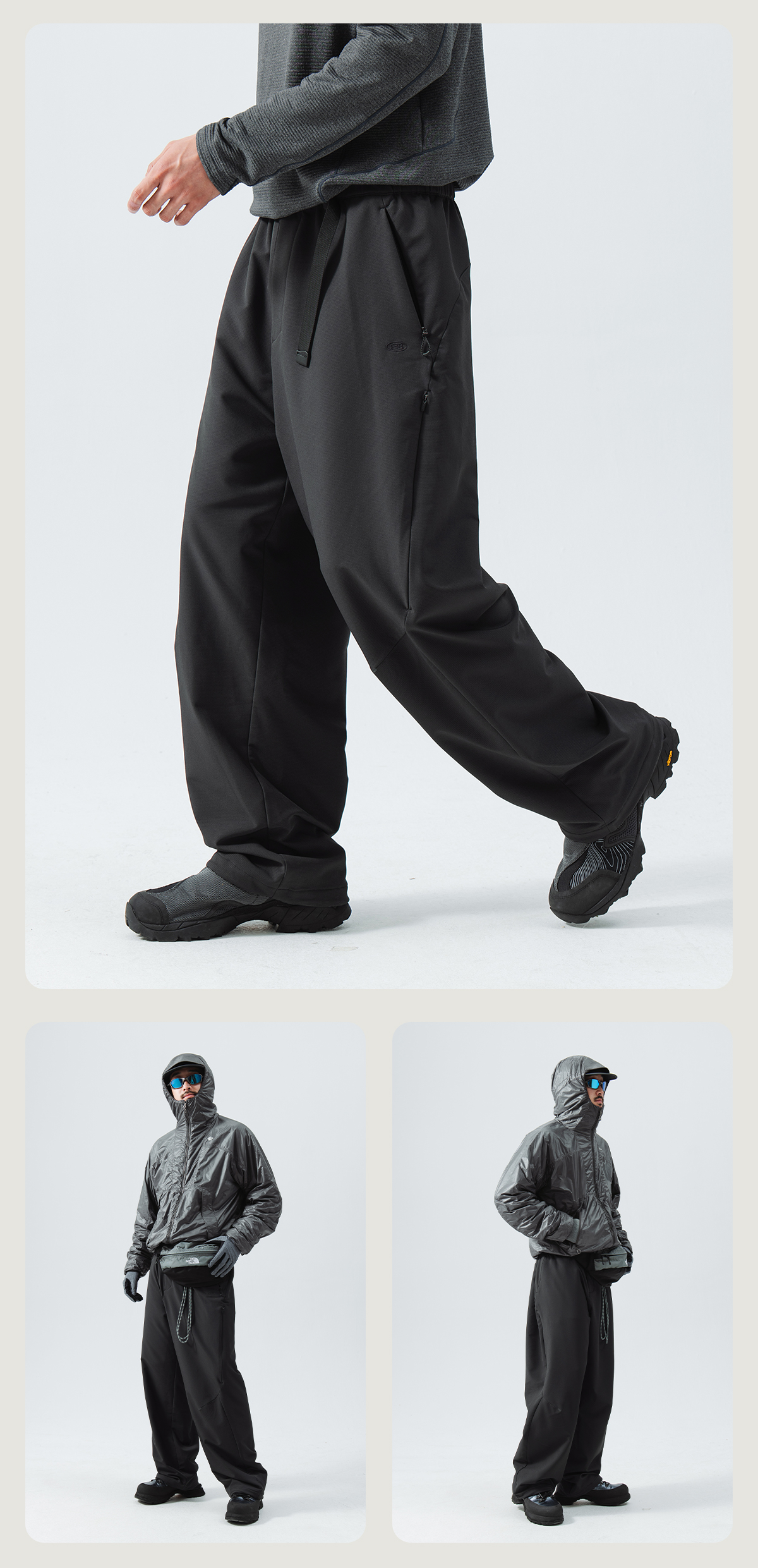 Lanqi Outdoor Water-Repellent Scimitar Pants, Warm, Breathable, Casual Long Pants, Autumn Woven Loose Straight-Leg Sweatpants for Men