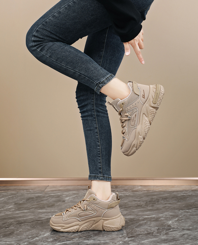 Pull Back soft sole Genuine Leather Sneakers for Women, Popular in Autumn and Winter 2025, Large Size 4143, Non-Slip Soft Sole, High-Top Dad Shoes