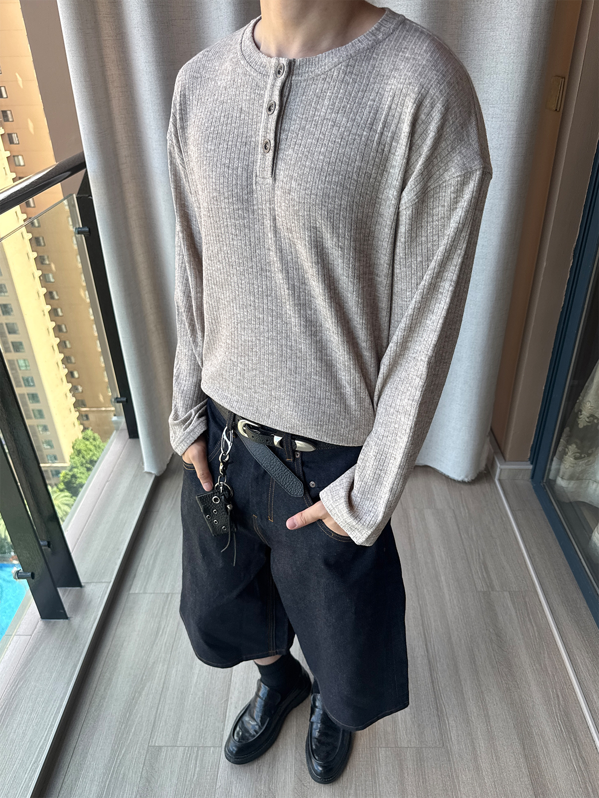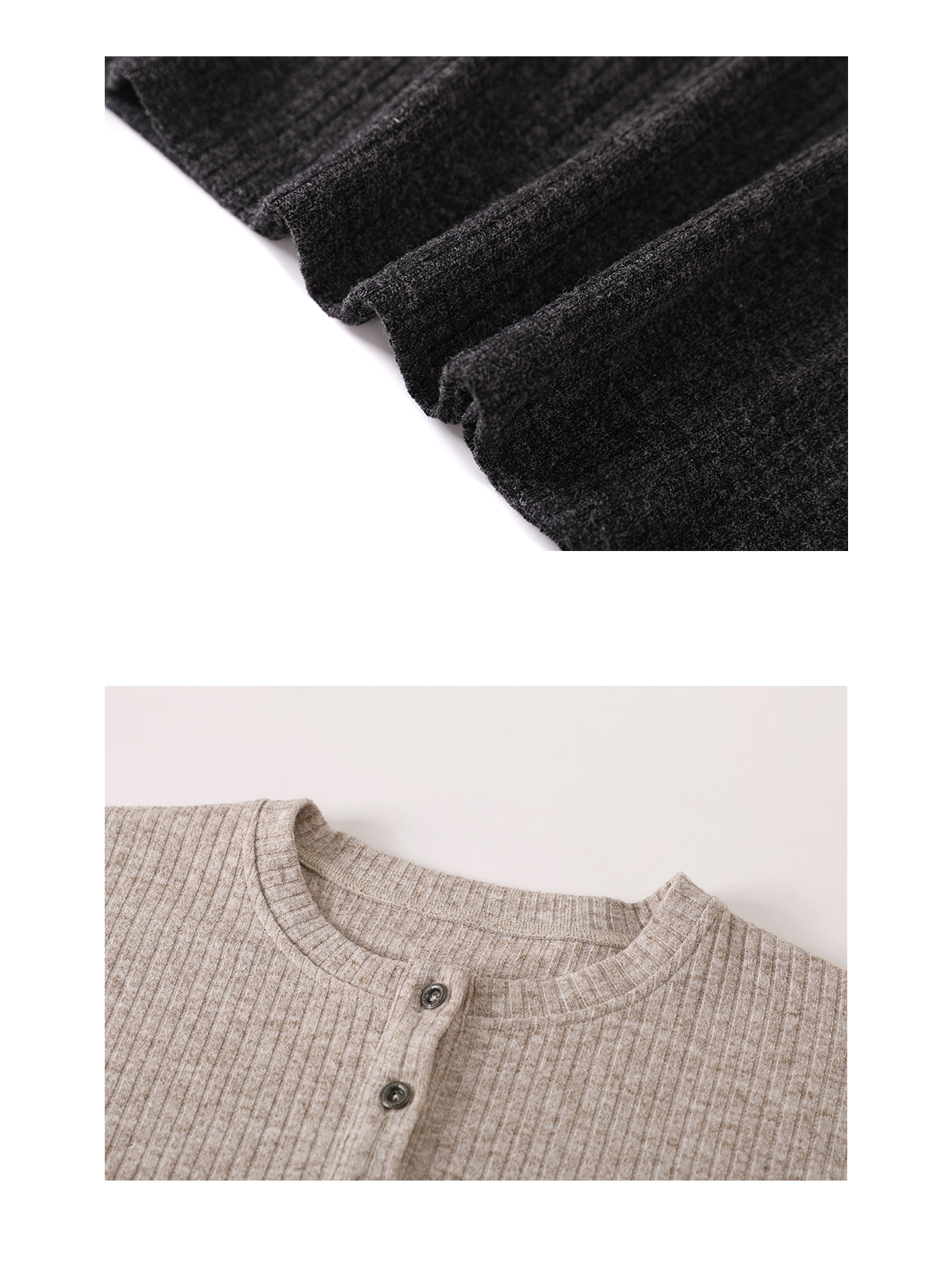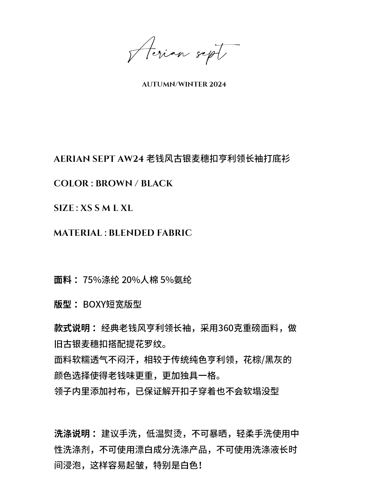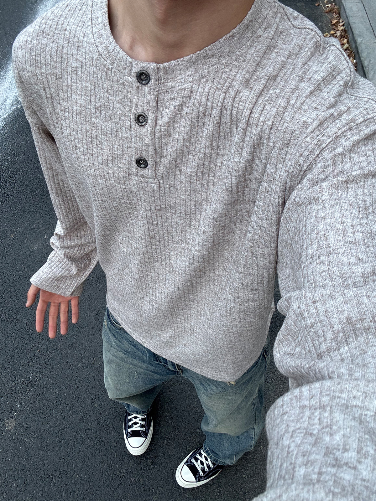 Aerian Sept Old Money Style Special Texture Jacquard Henley Collar Long-Sleeve Knit Base Shirt with Wheat Spike Buttons, Soft and Cozy