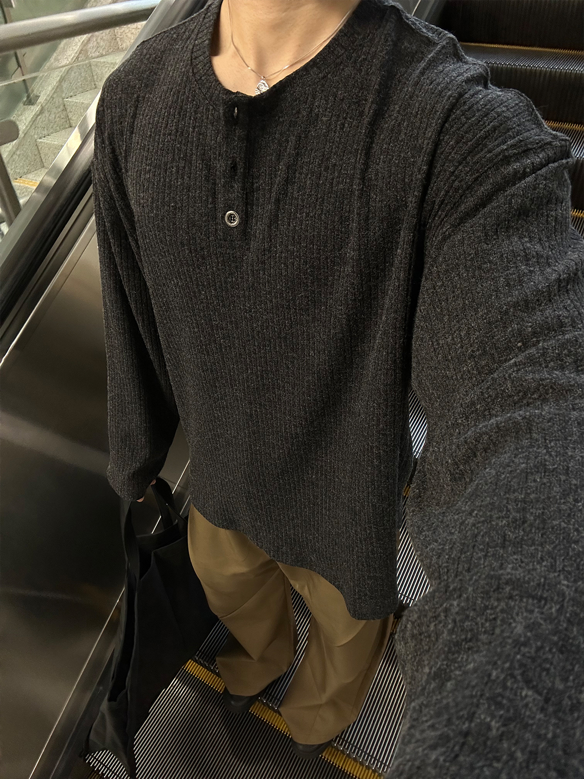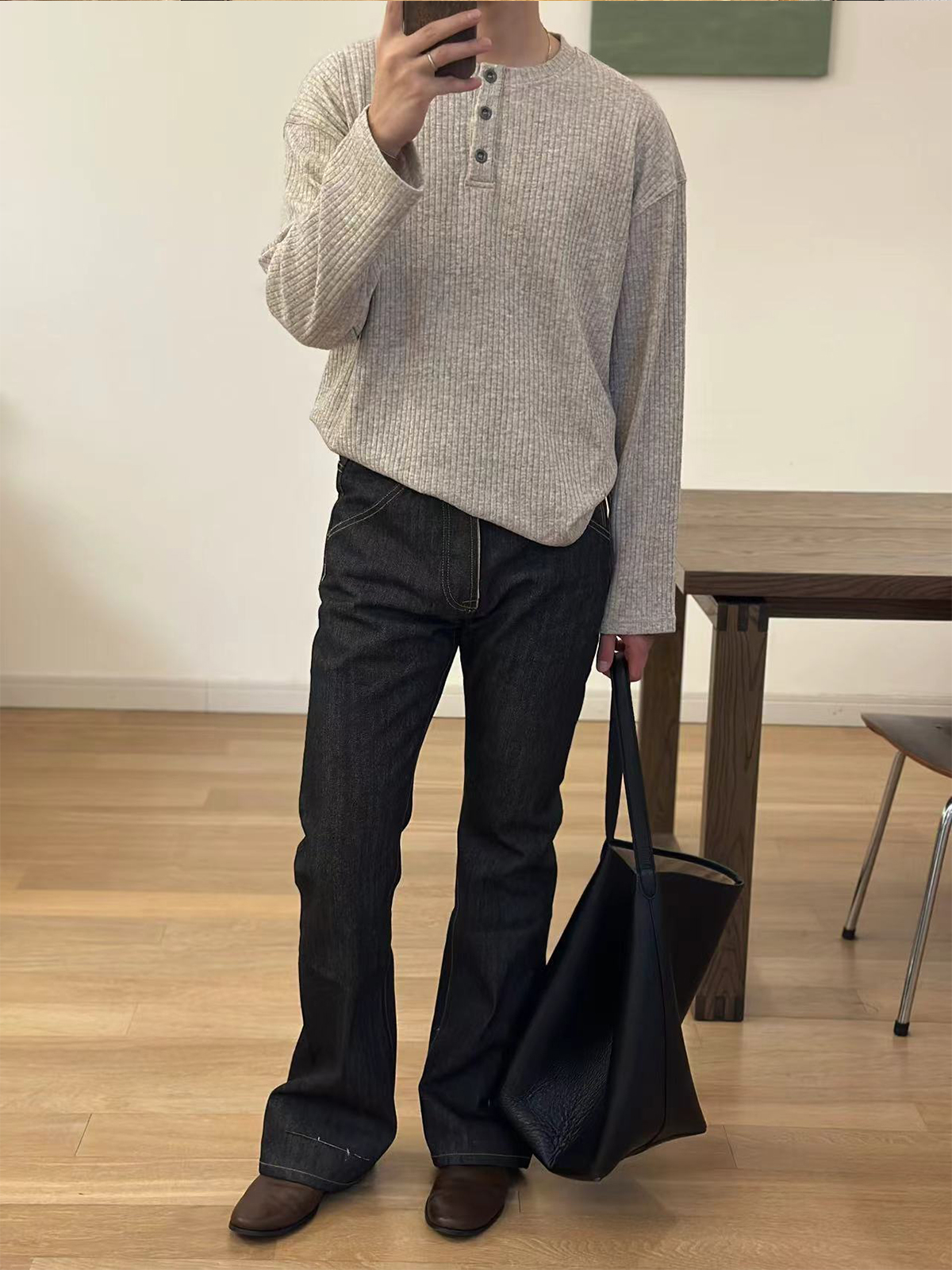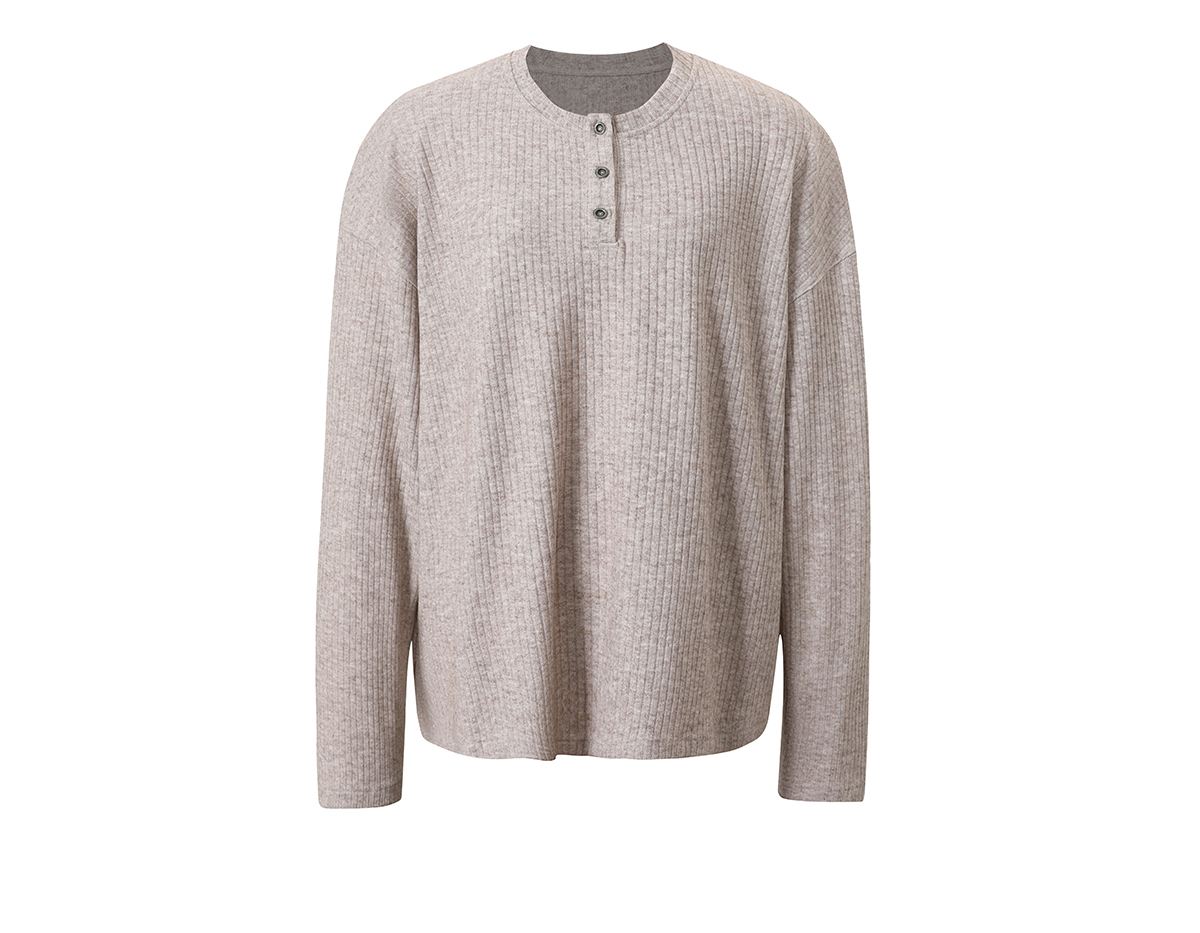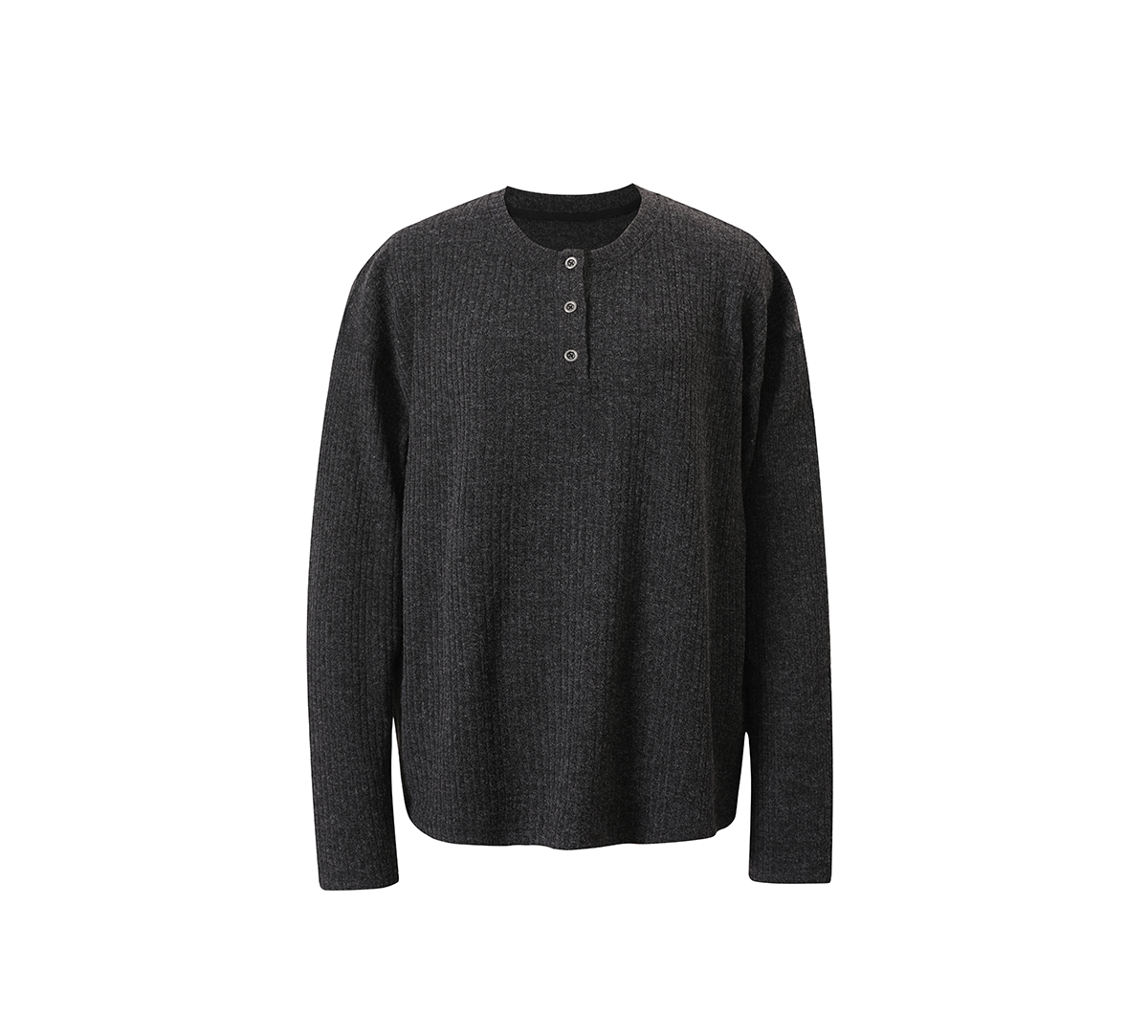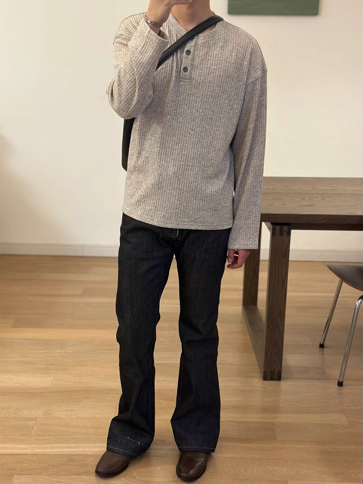 Aerian Sept Old Money Style Special Texture Jacquard Henley Collar Long-Sleeve Knit Base Shirt with Wheat Spike Buttons, Soft and Cozy
