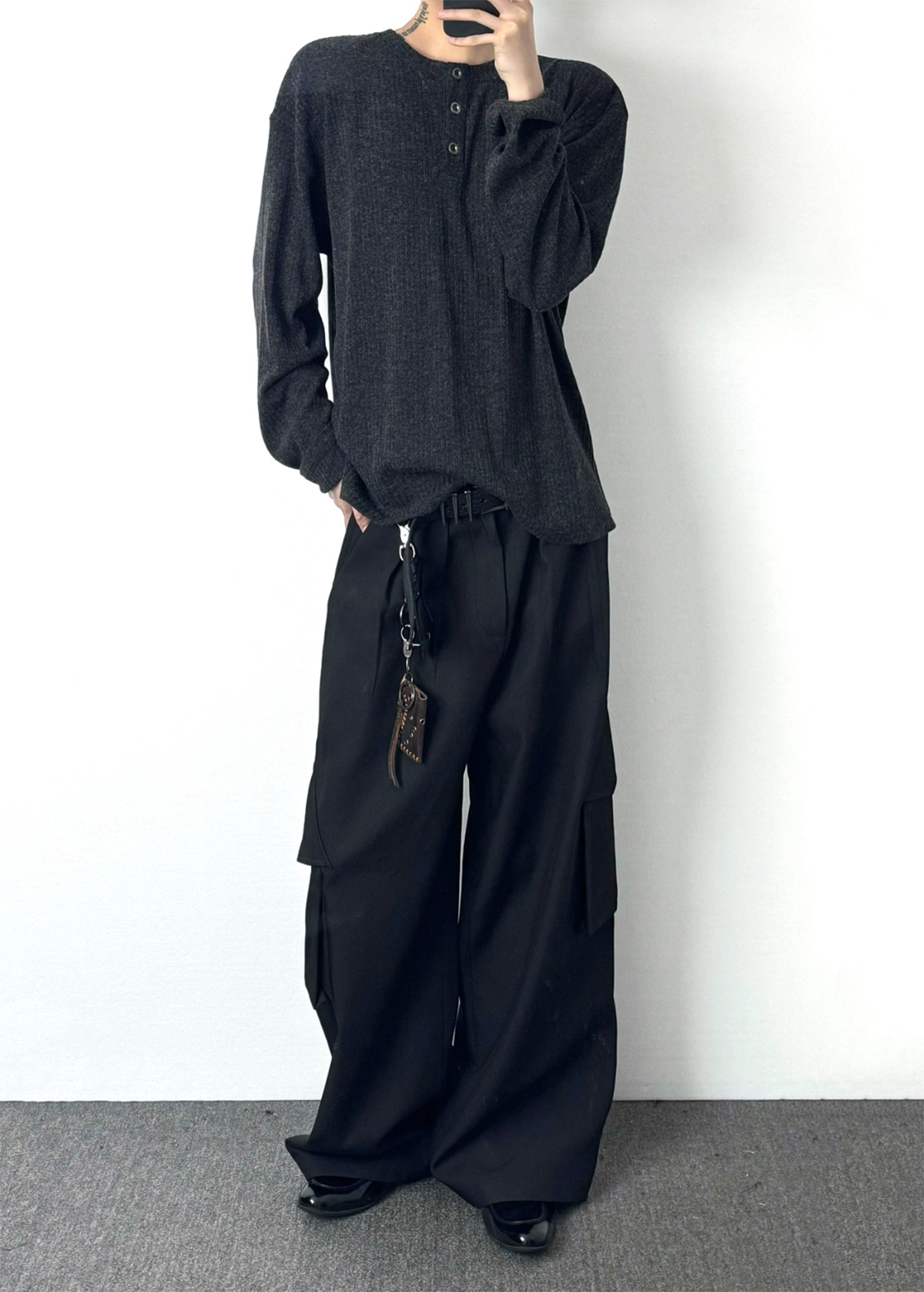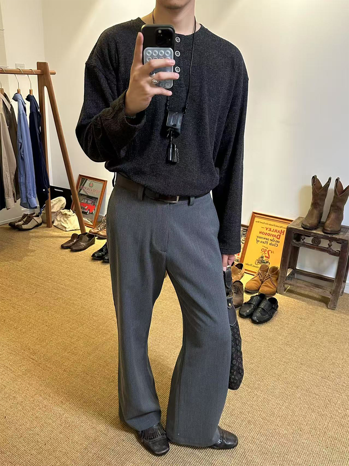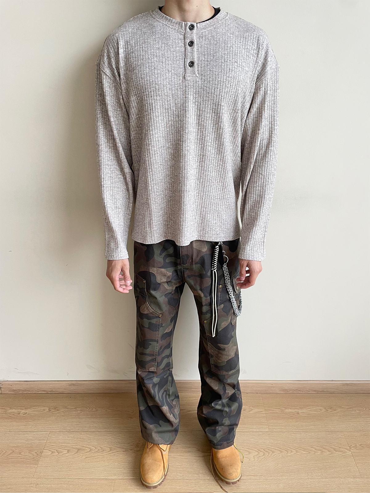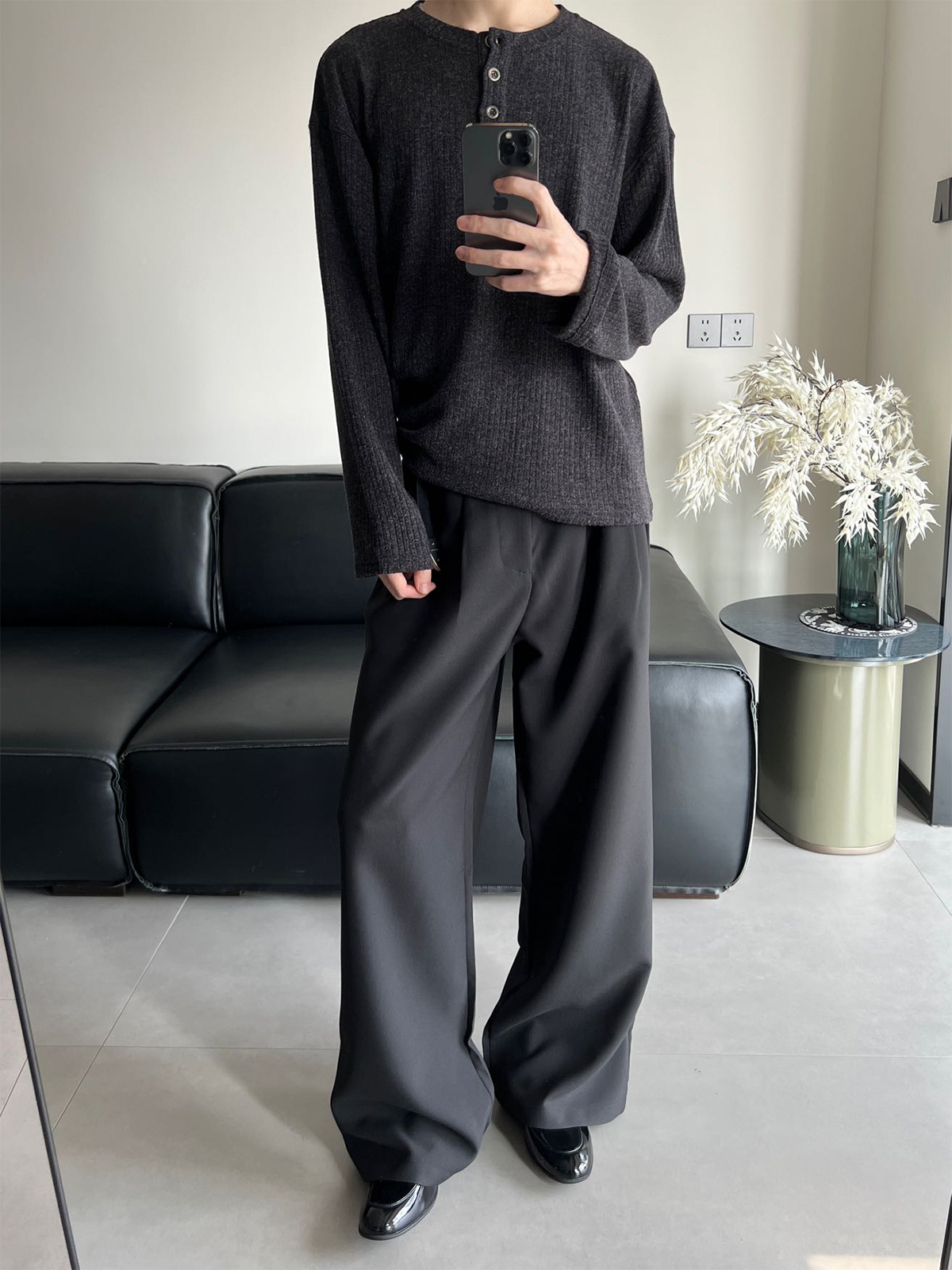 Aerian Sept Old Money Style Special Texture Jacquard Henley Collar Long-Sleeve Knit Base Shirt with Wheat Spike Buttons, Soft and Cozy