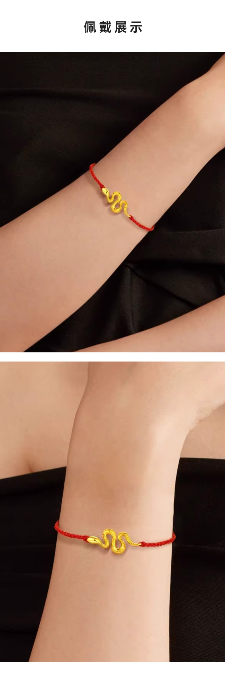 Chow Tai Fook Snake Gold Bracelet Pure Gold Bracelet Zodiac Year 5D Hard Gold Red String Women's Zodiac Birthday Gift L