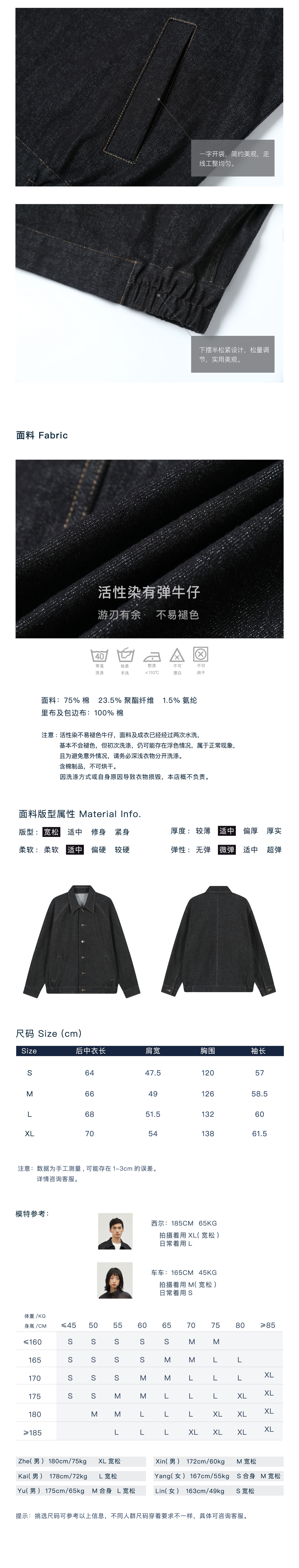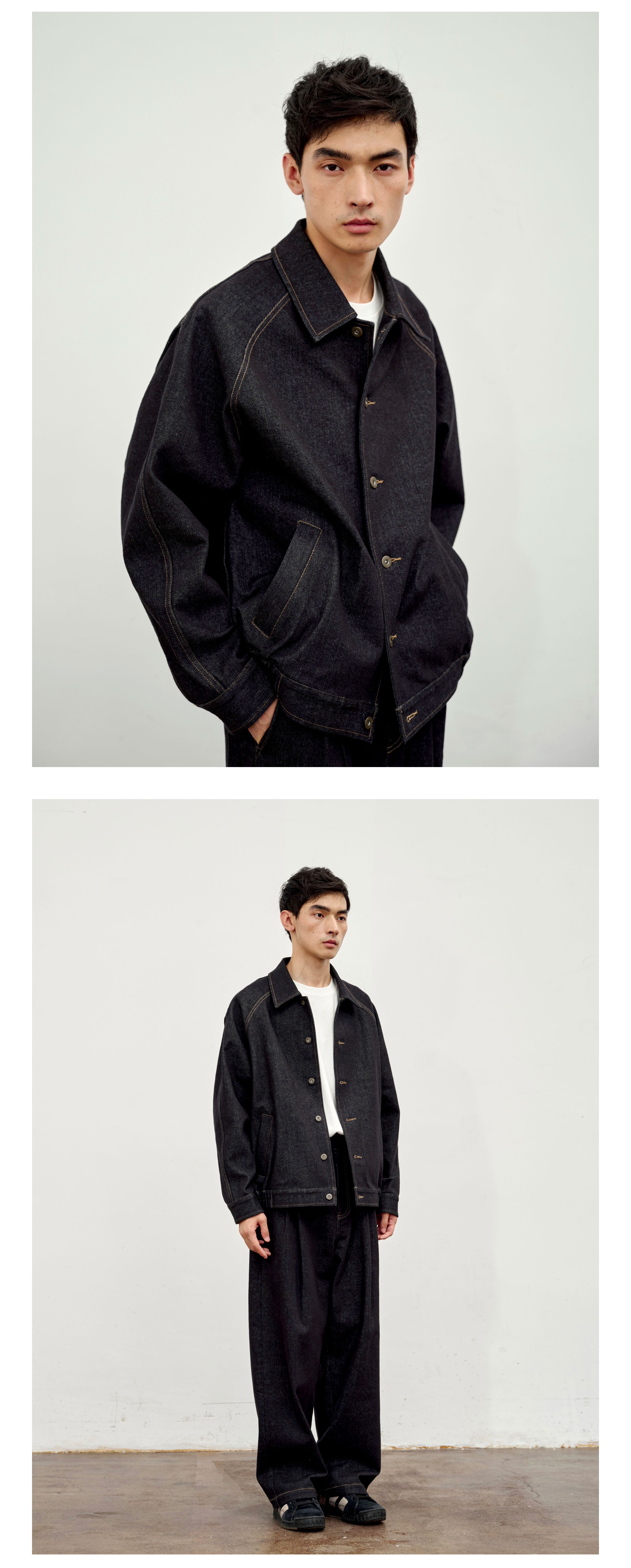 Waterever | Black Yarn-Dyed, Non-Fading, Stretchy Denim Jacket, Reactive Dyeing, Washed Short Jacket