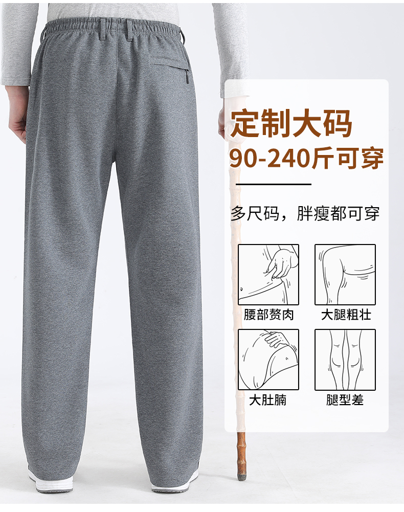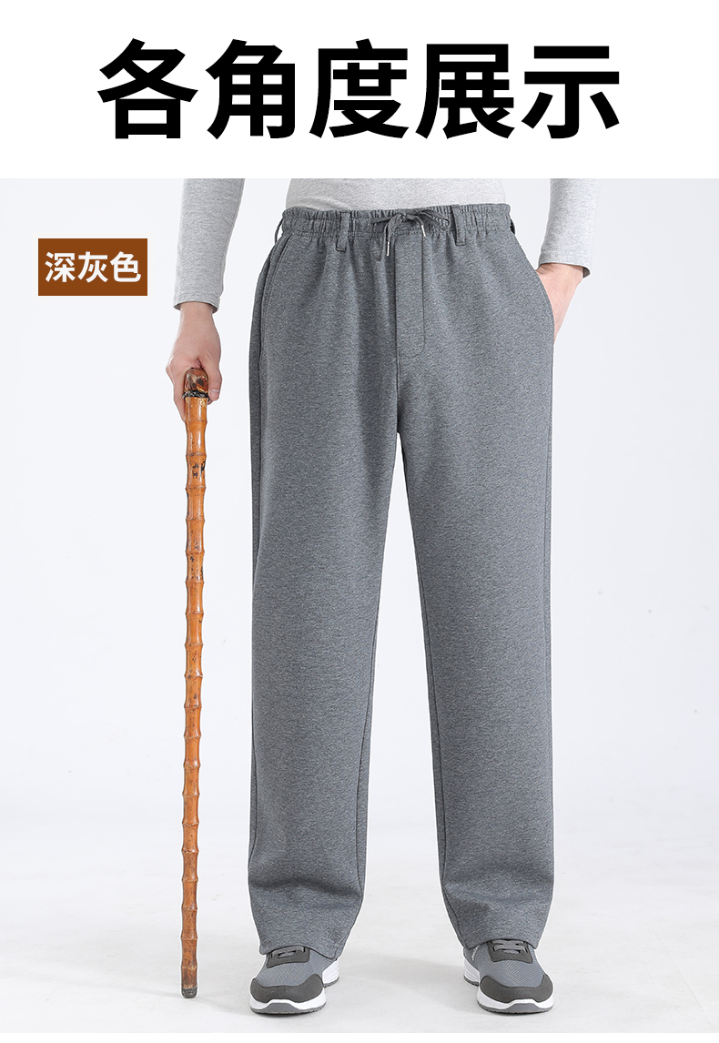 High-Waisted, Deep-Crotch Grandpa Pants, Spring and Autumn Style, Elastic Waist Men's Pants, Fleece-Lined and Thickened, Elderly Men's Sweatpants