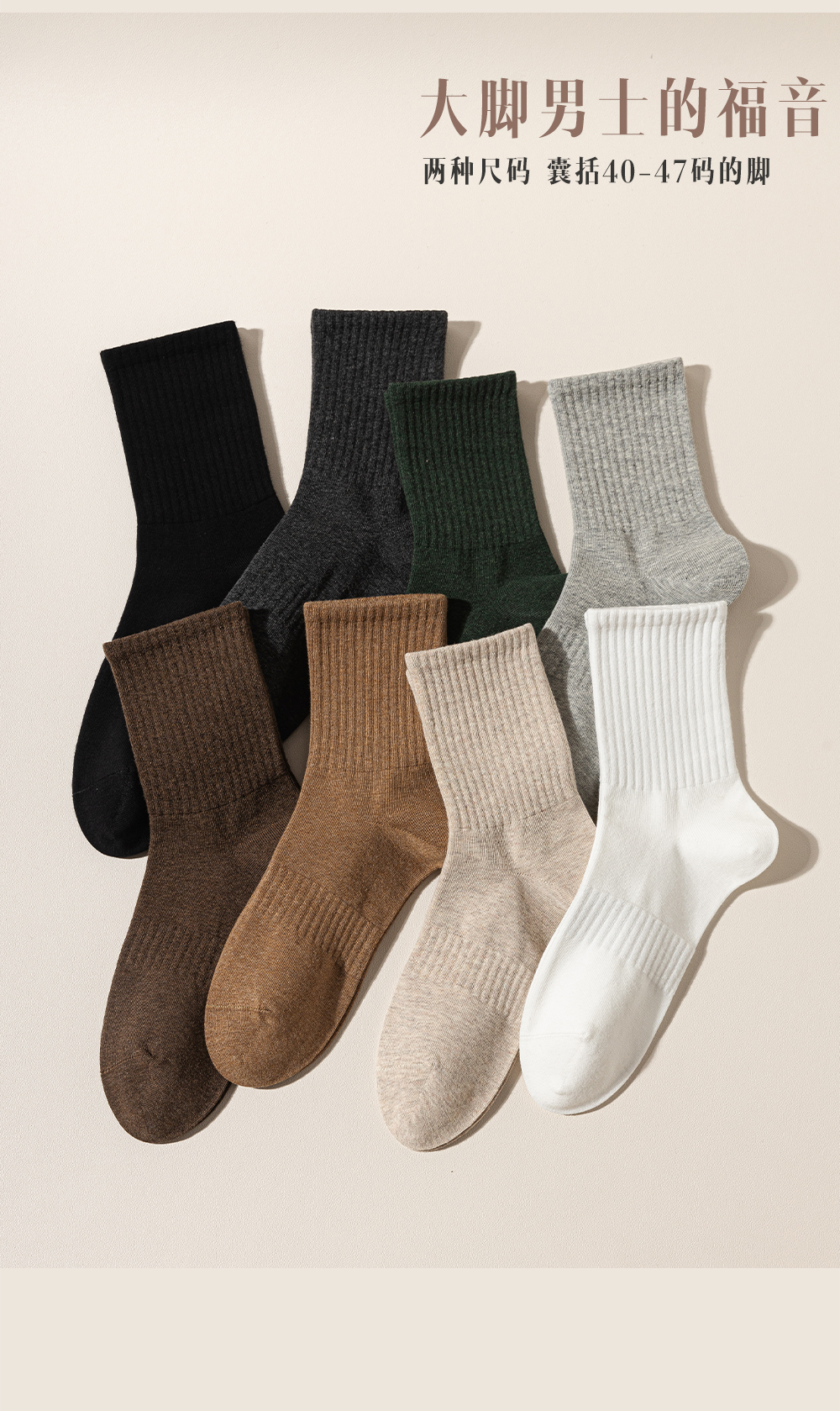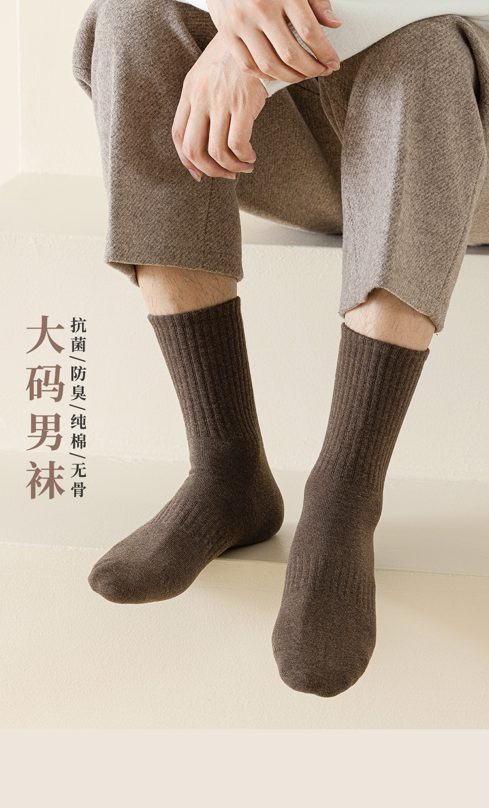 Large Size Socks for Men, Pure Cotton, Autumn and Winter Style, Extra Large, Antibacterial, Deodorant, Size 44-47, Large Size 45, 46, Sports Mid-Calf Socks