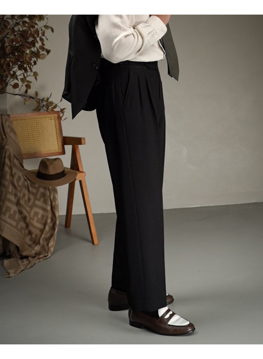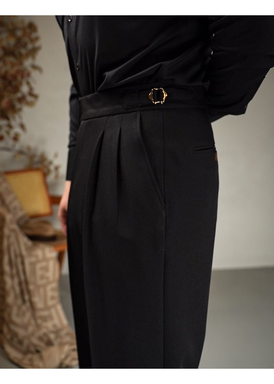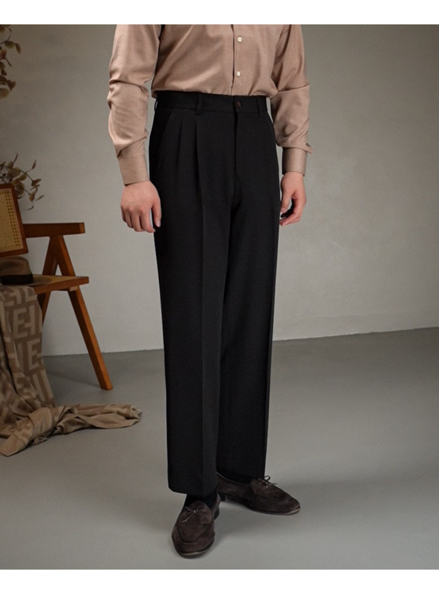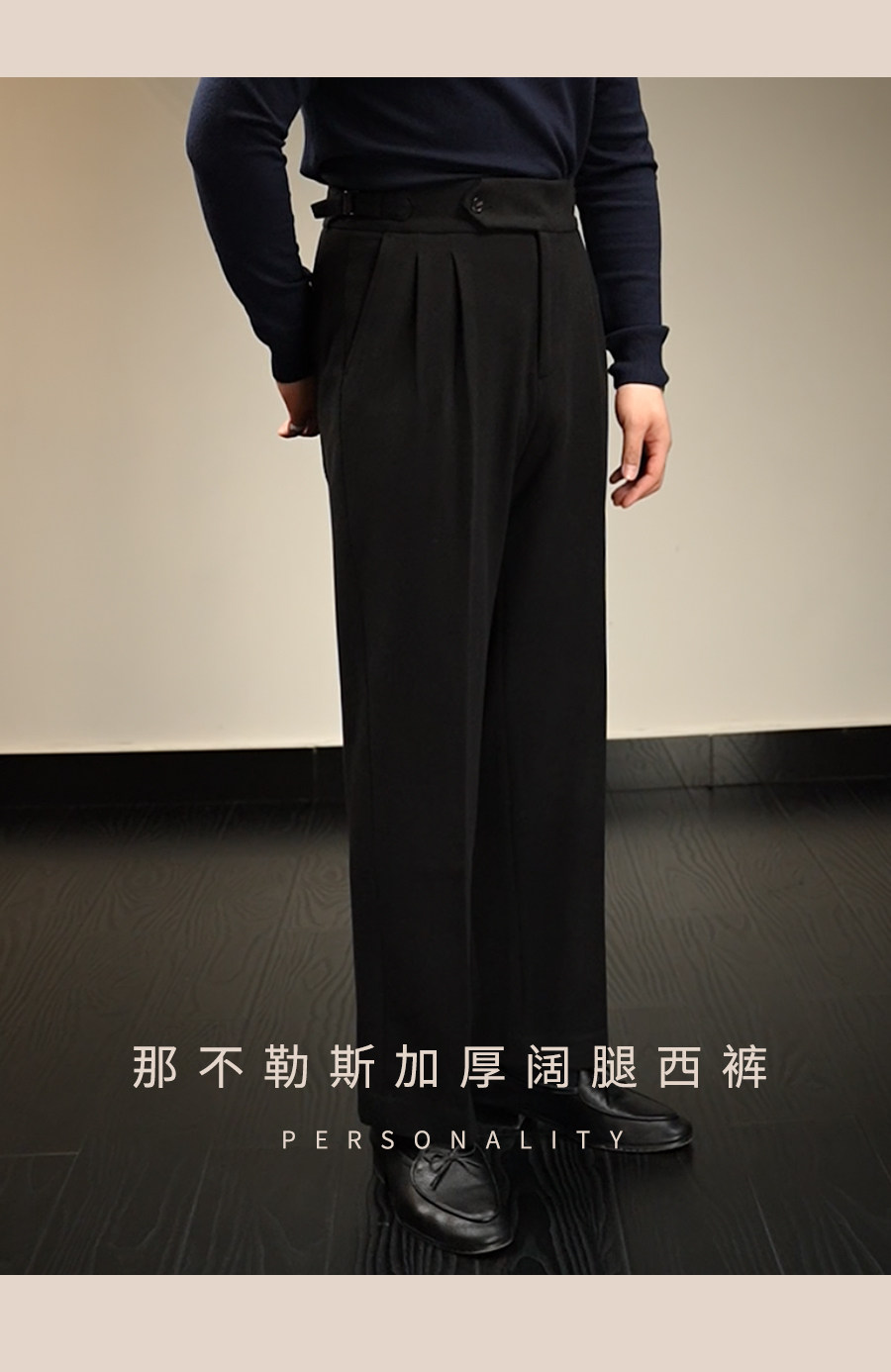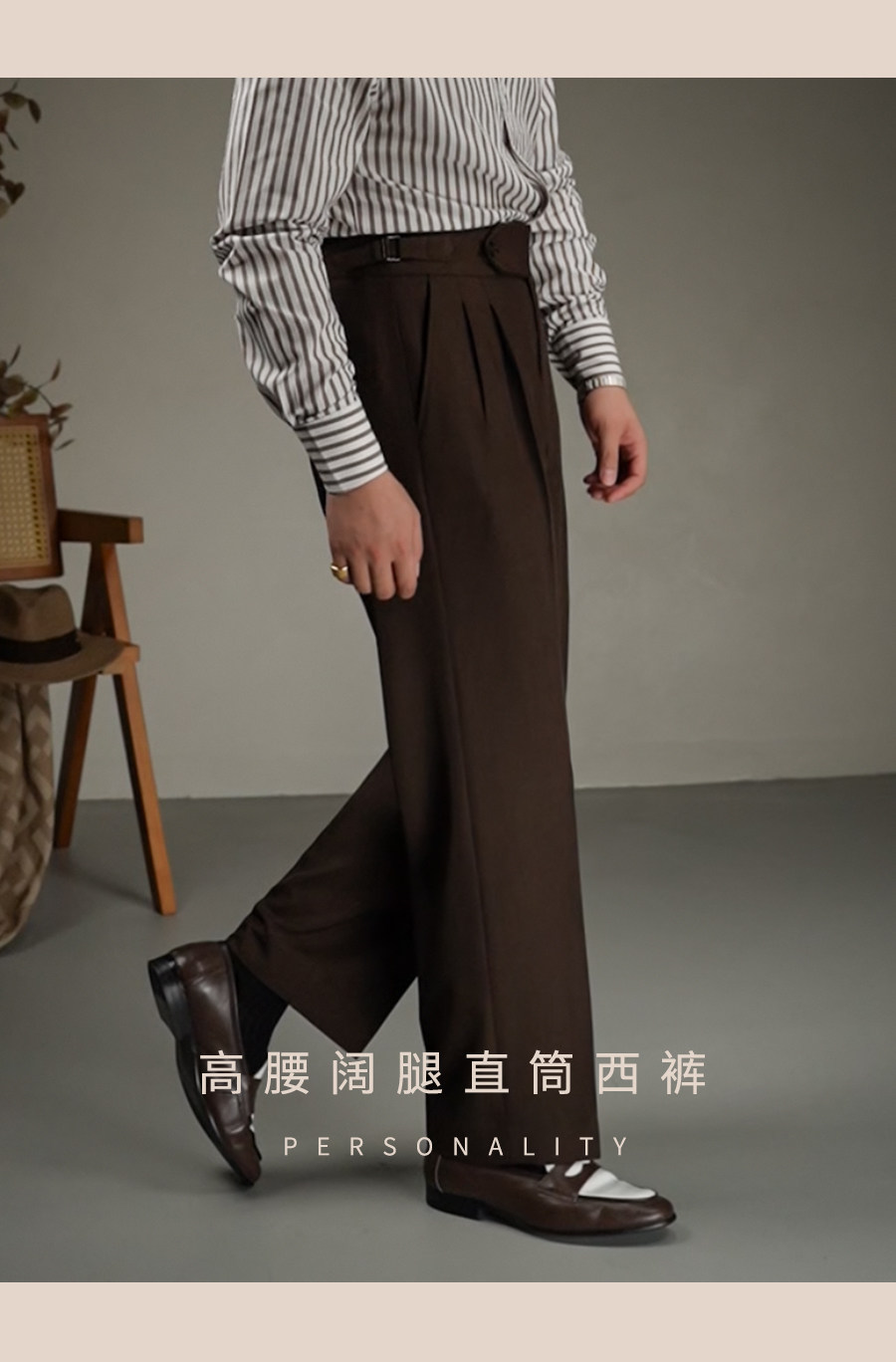 Paper Siwanka High-Waisted Naples Straight-Leg Dress Pants, Everyday Gentleman Style, Retro Wide-Leg Casual Pants for Men, Spring