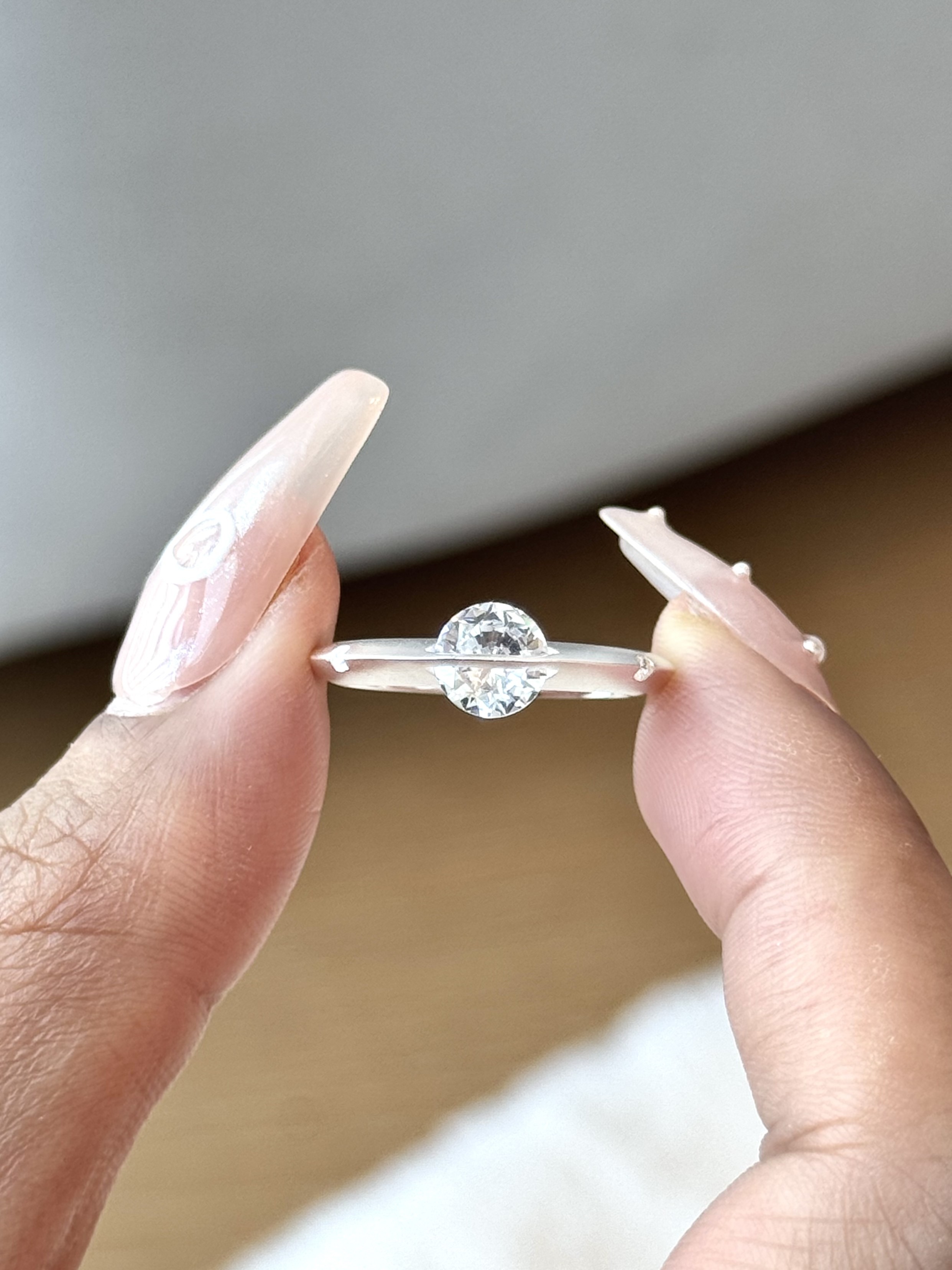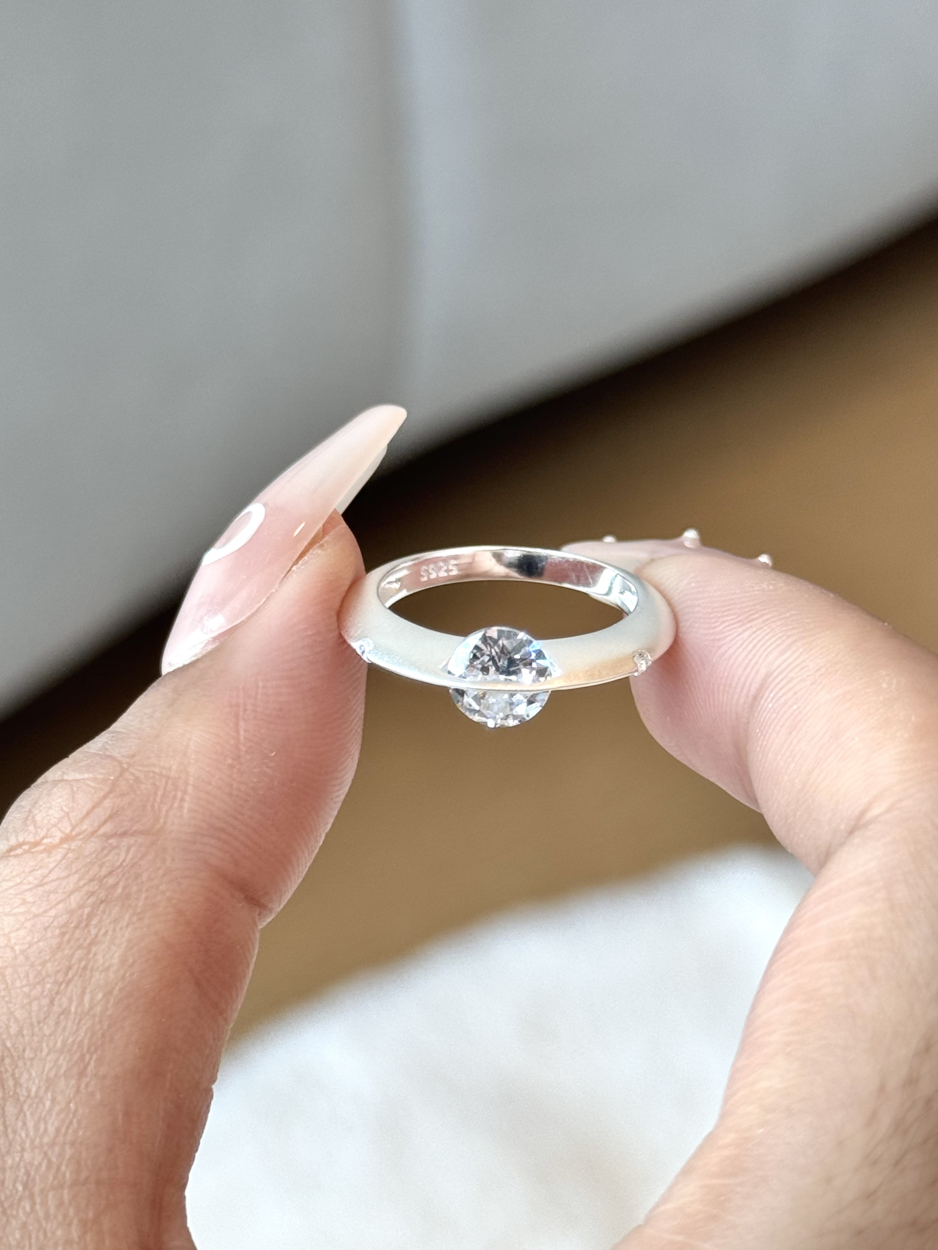 Planet Ring with Rotating Element, Matte Sterling Silver, Women's Planet Diamond Ring, High-Carbon Diamond, Minimalist Tail Ring, High-End Niche Design